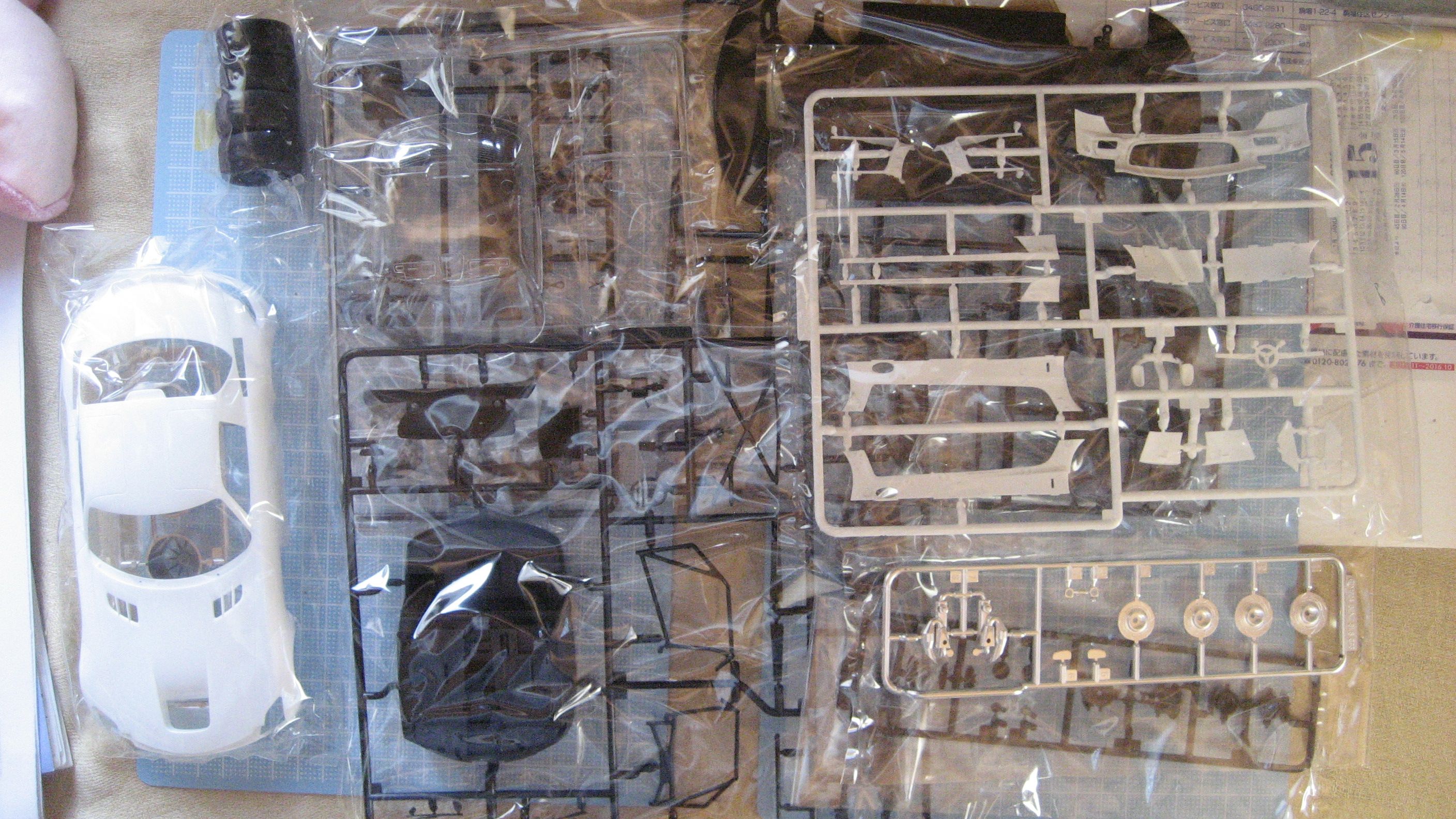 パーツ点数は多くありません。エンジンもどきはありませんし、足回りだけかろうじてある程度です。但し、ボディー周りは分割されているのでちょいと面倒かも? ボンネットのエアダクトは綺麗に造形されていますが、奥まできちんと塗装を要します。他にもイン・アウトのエアダクトがあります。