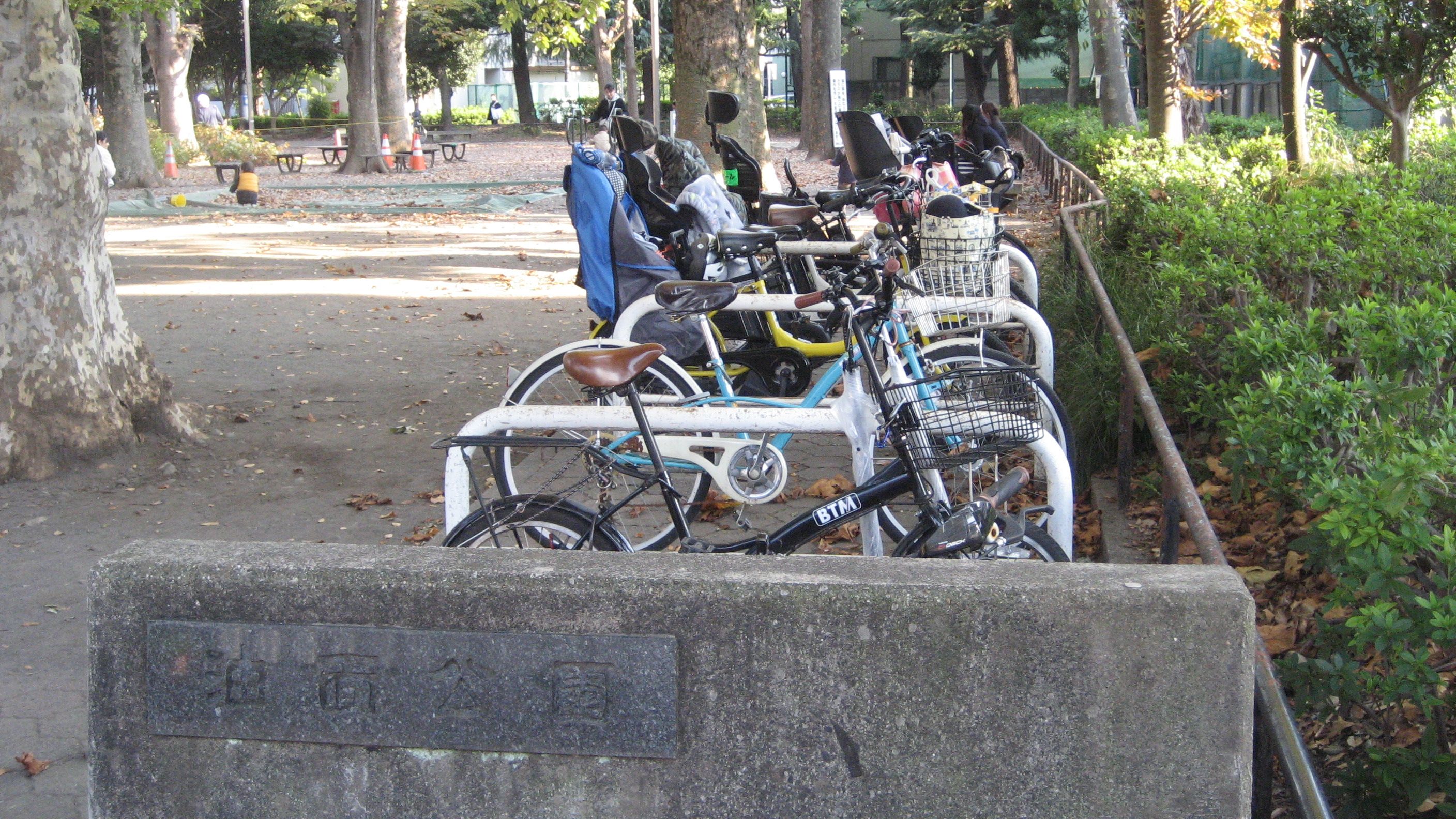 自転車はきちんと一列駐輪……柵があるから当たり前か~
