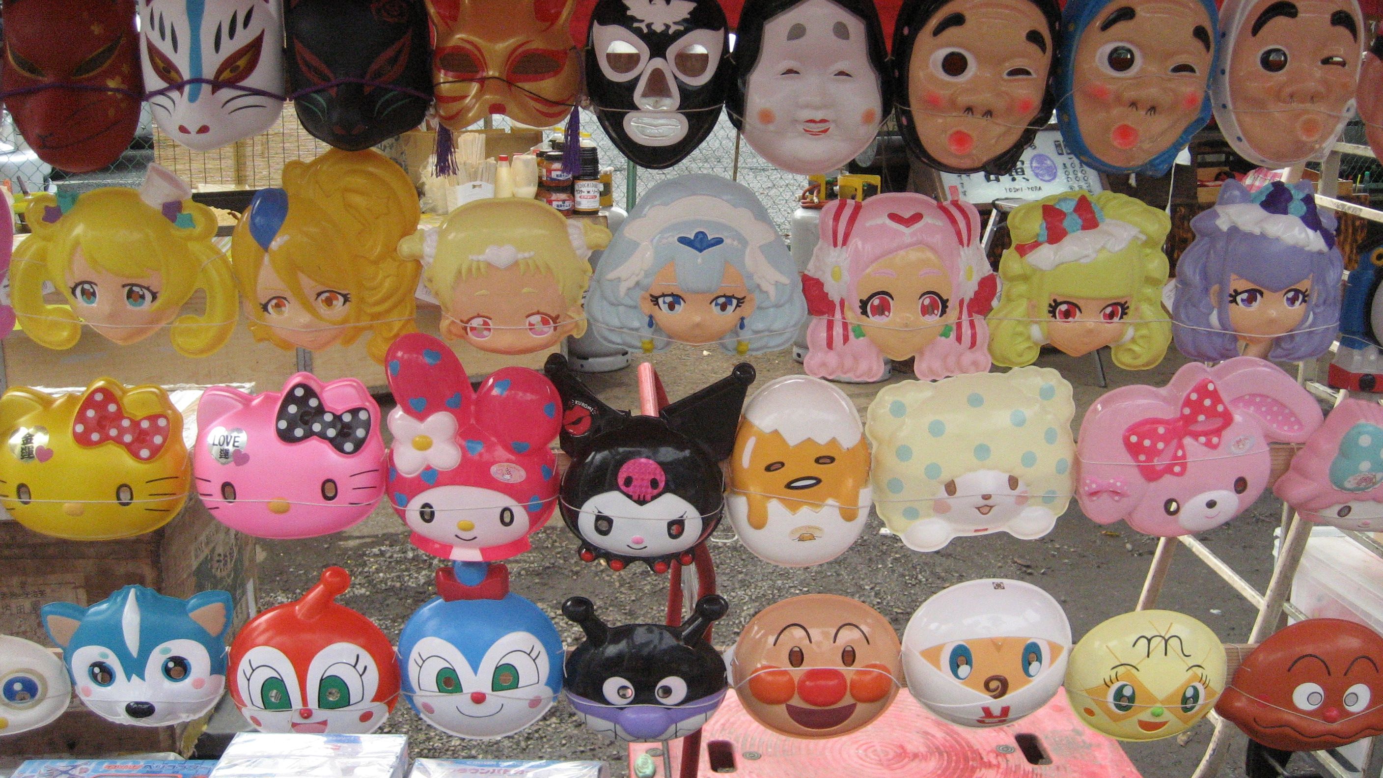 今でもお面は売れるのでしょうかしら? かぶっている子どもはあまり見ないのですが……バイキンマンやアンパンマンは売れても、おかめ・ひょっとこを子どもは買わないでしょう。