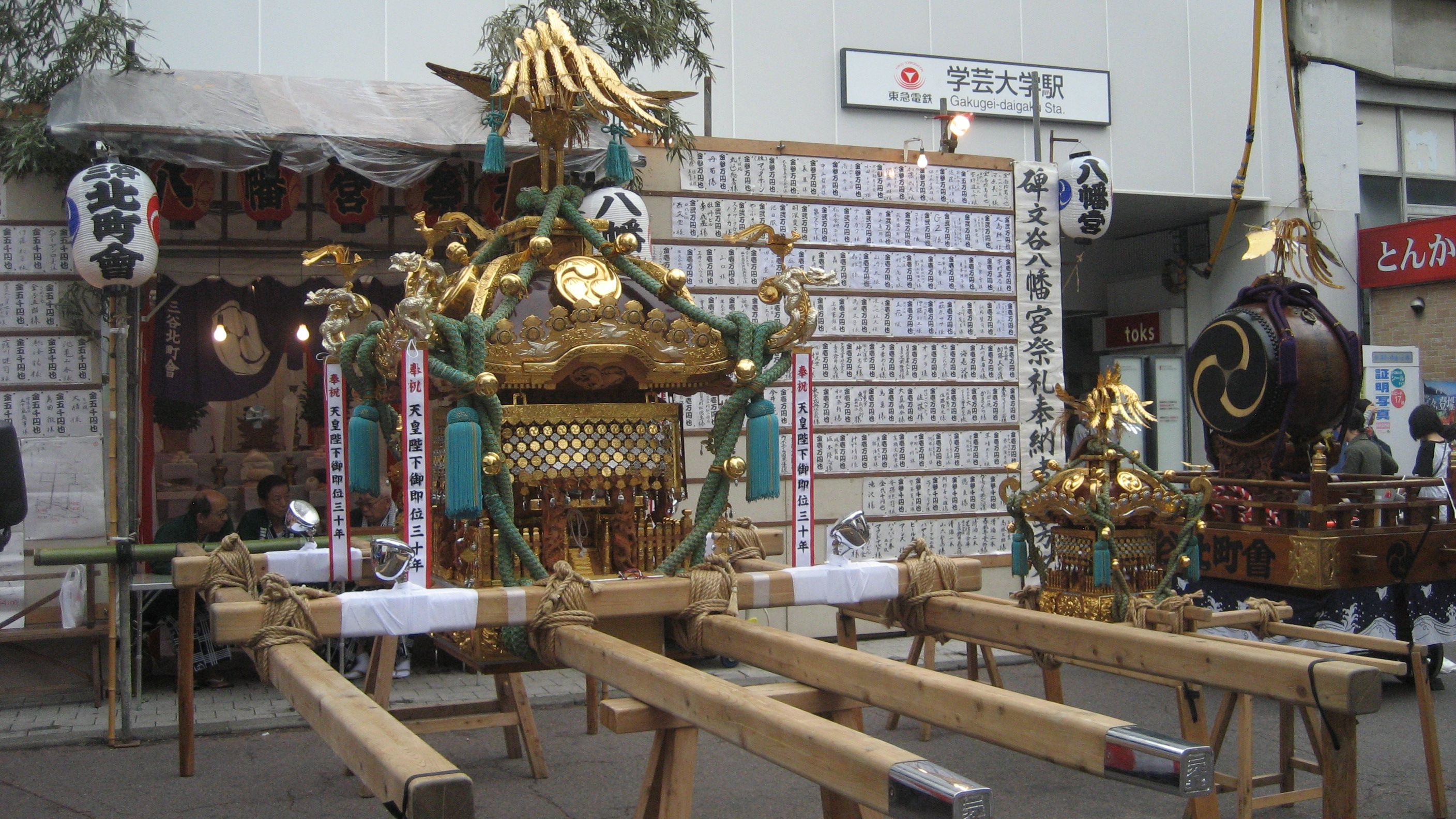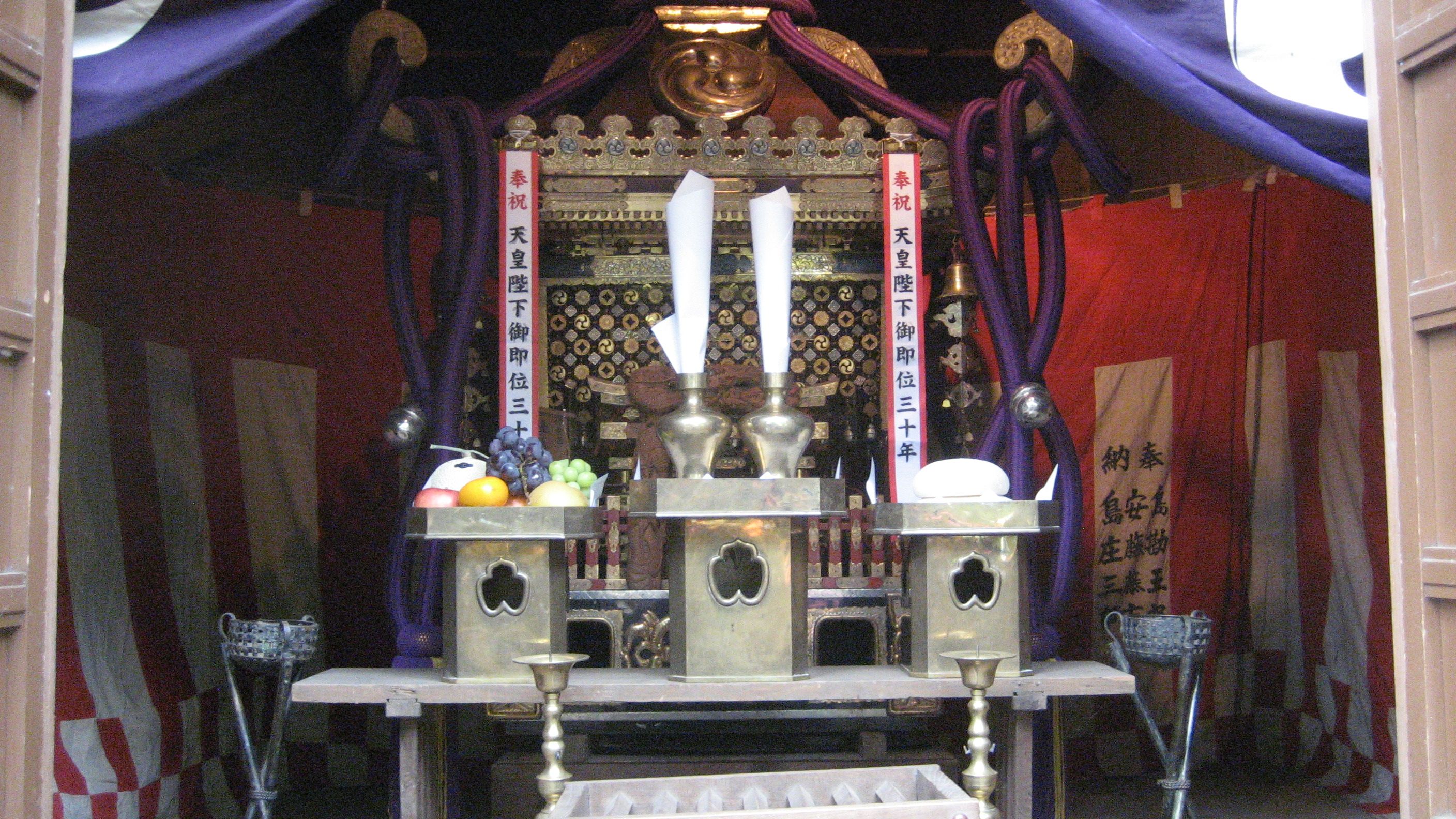 天皇陛下御即位三十年の帯はどこの神輿にもありました。