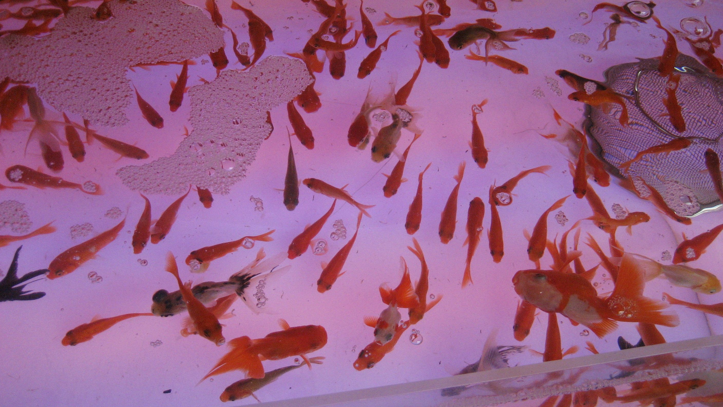 なつかしい金魚すくい……子供の頃の私は、お小遣いをもらって大雨でも遊びに行ったものです。今は、いくらすくっても一匹しかもらえないみたいです。昔は獲り放題だったのにな~ と言っても私はへたでしたが…