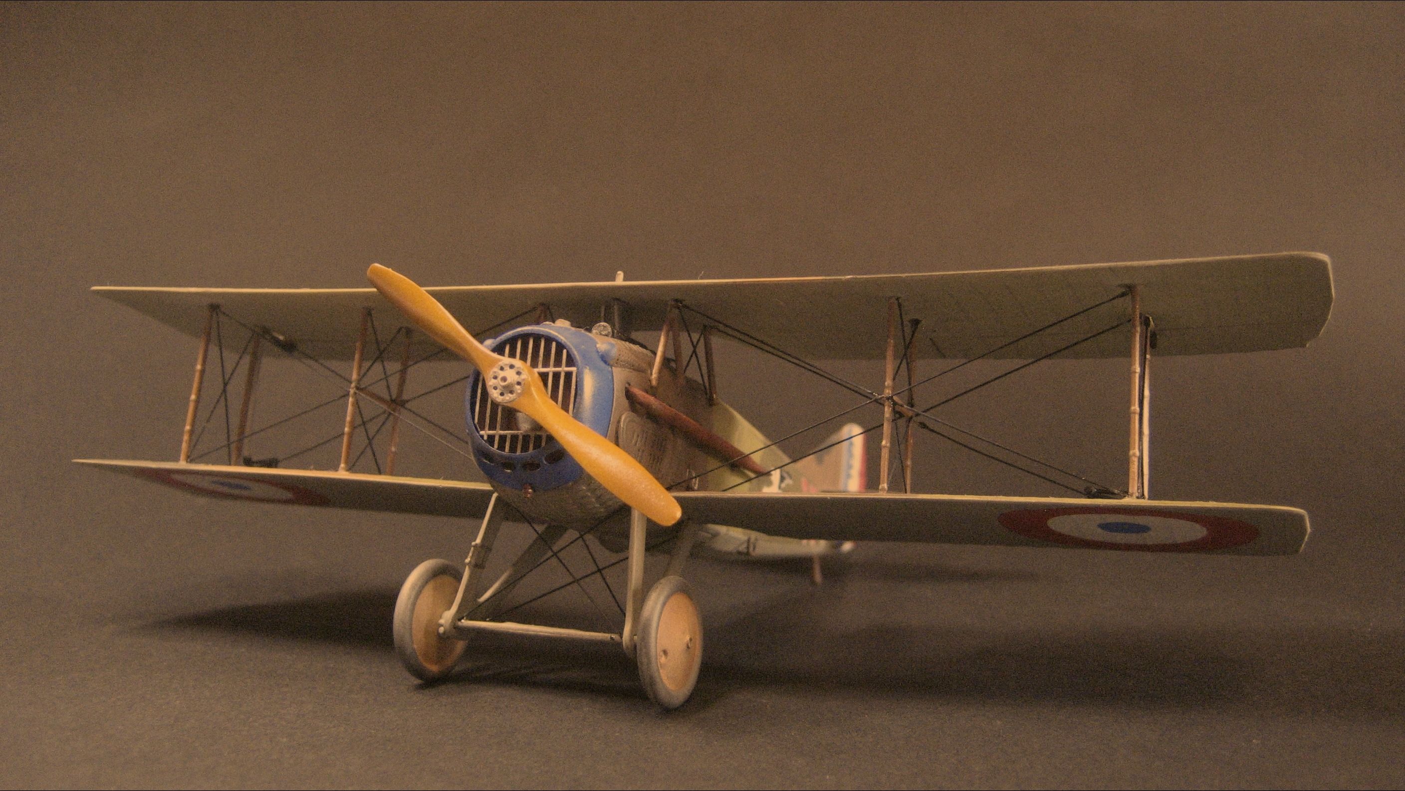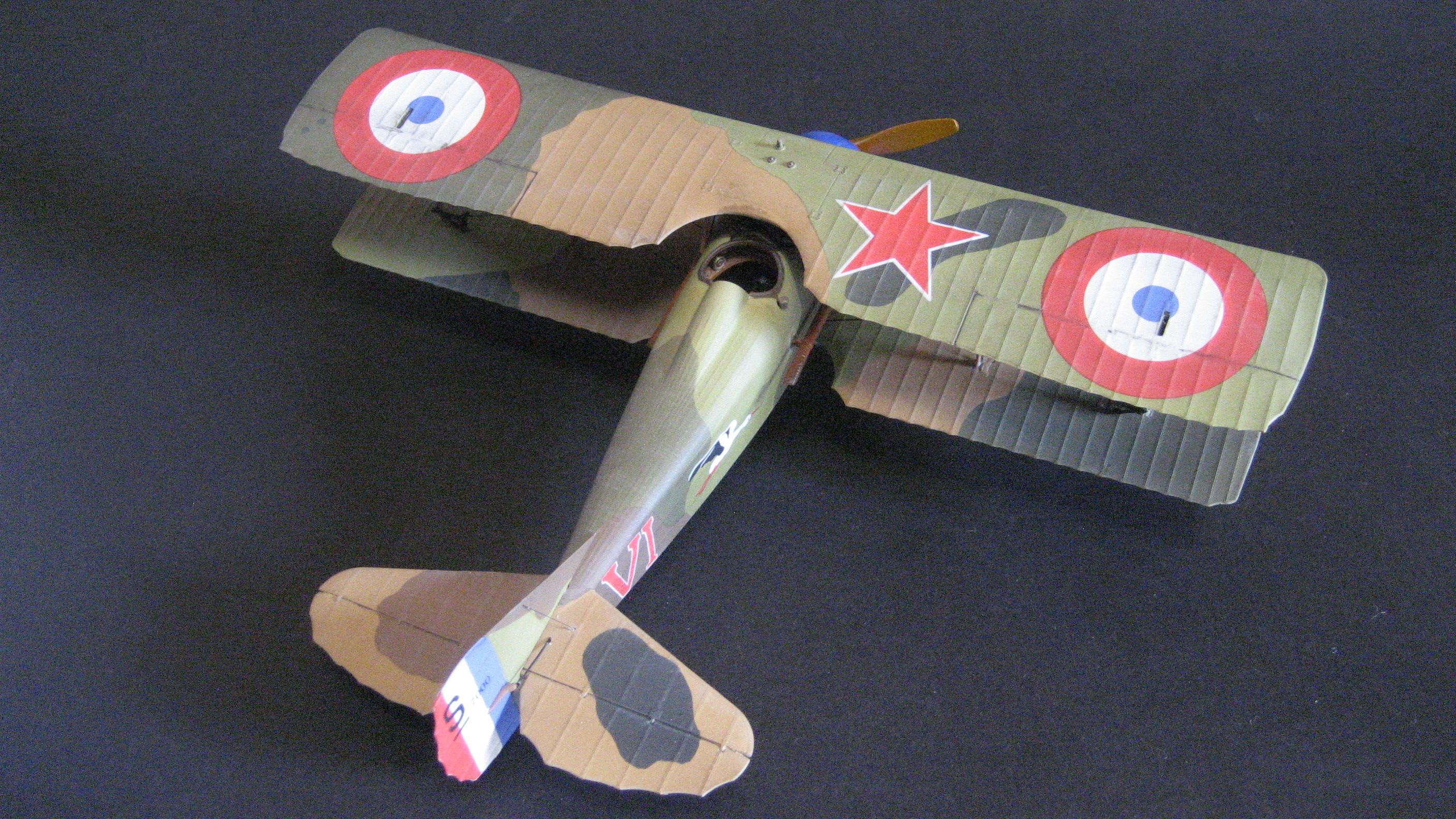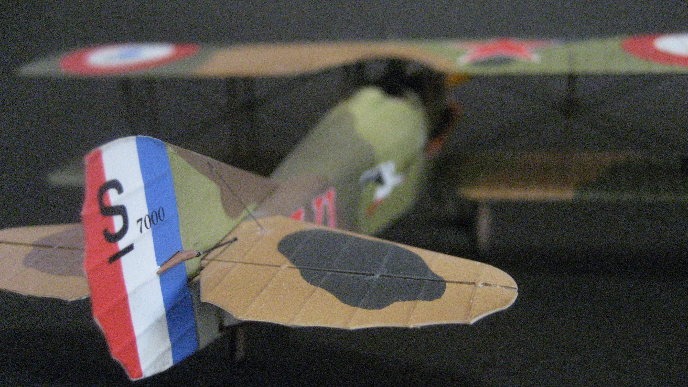 張り線も大苦戦でしたので、主翼に斜めに入れるべき2本張りの部分は省略してしまいました。教えては頂いたのですが、説明書には書かれていないし「どこだっけな~」と不案内だった上、0.2mmは太すぎて2本張りは格好が悪いだろうとパスしました。やはり田植えをマスターしなければ複葉機制作への冒涜だと、改めて痛感しています。
