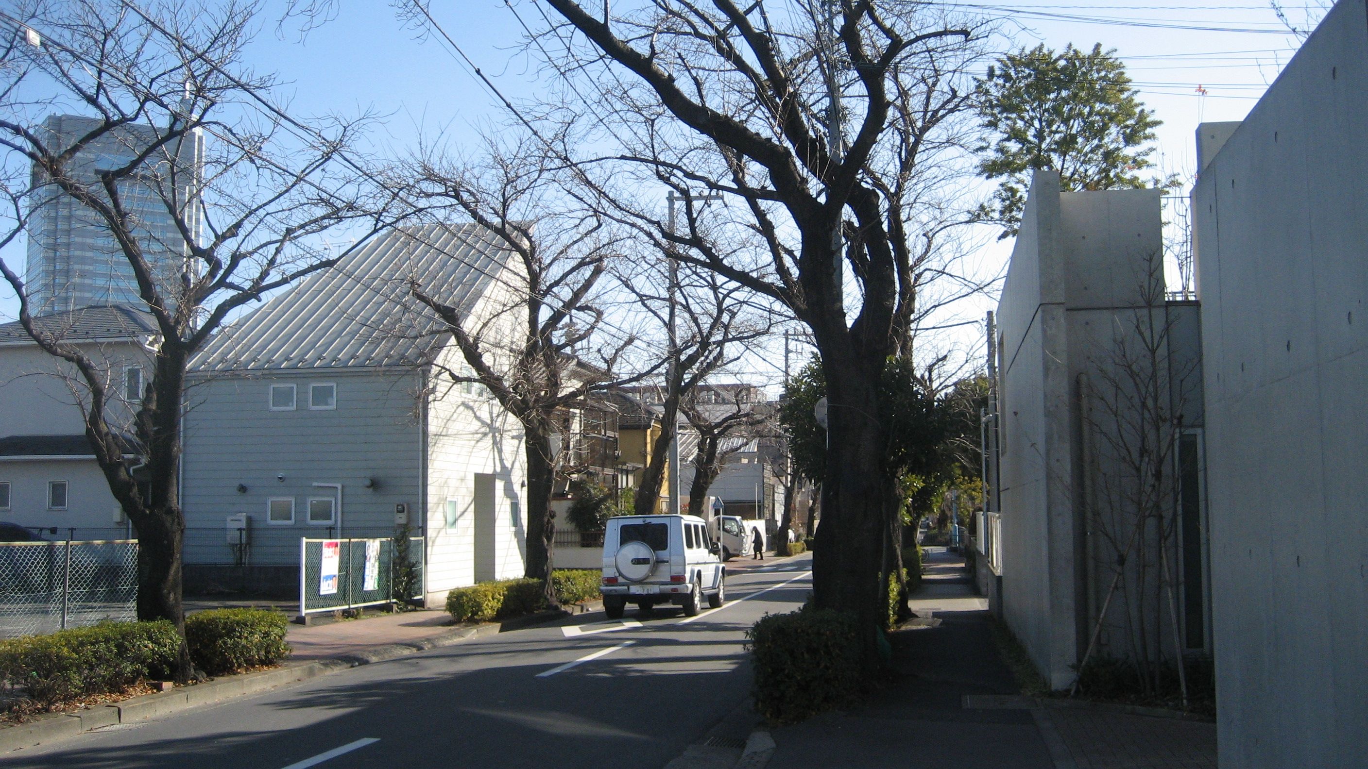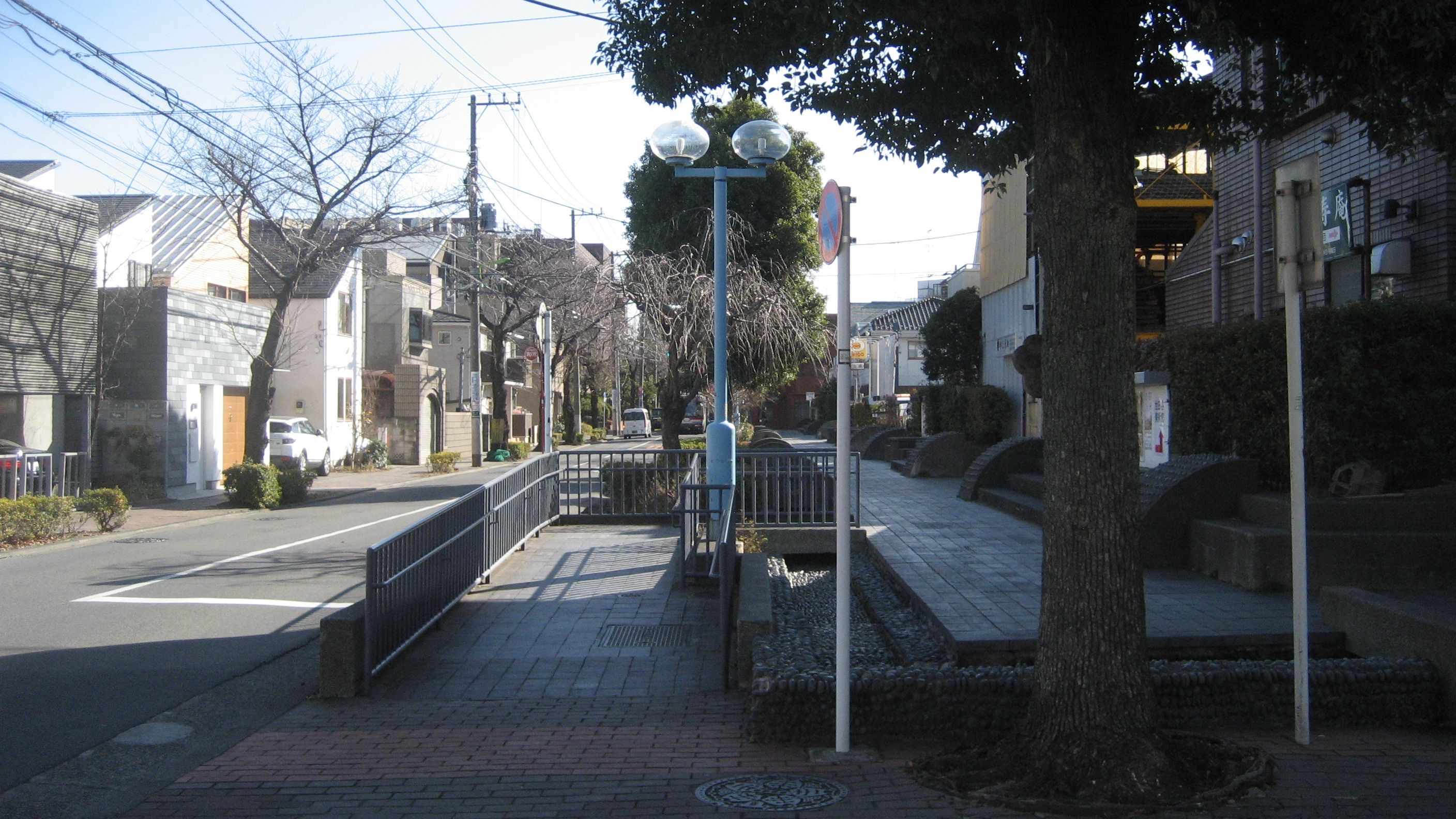 砧公園を出て、用賀駅方面に向かおうと、しばし東に進むとこんな景色の通りがあったので右折……桜の時期はきれいでしょう。