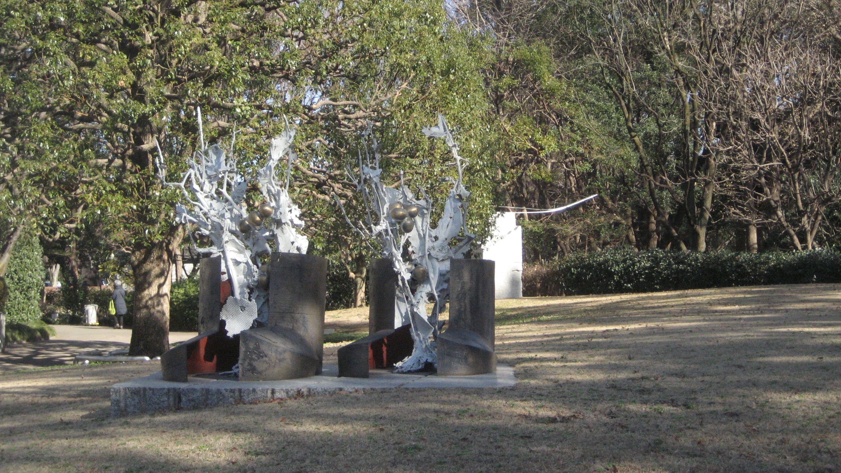 美術館前の芝生に置かれたオブジェ……