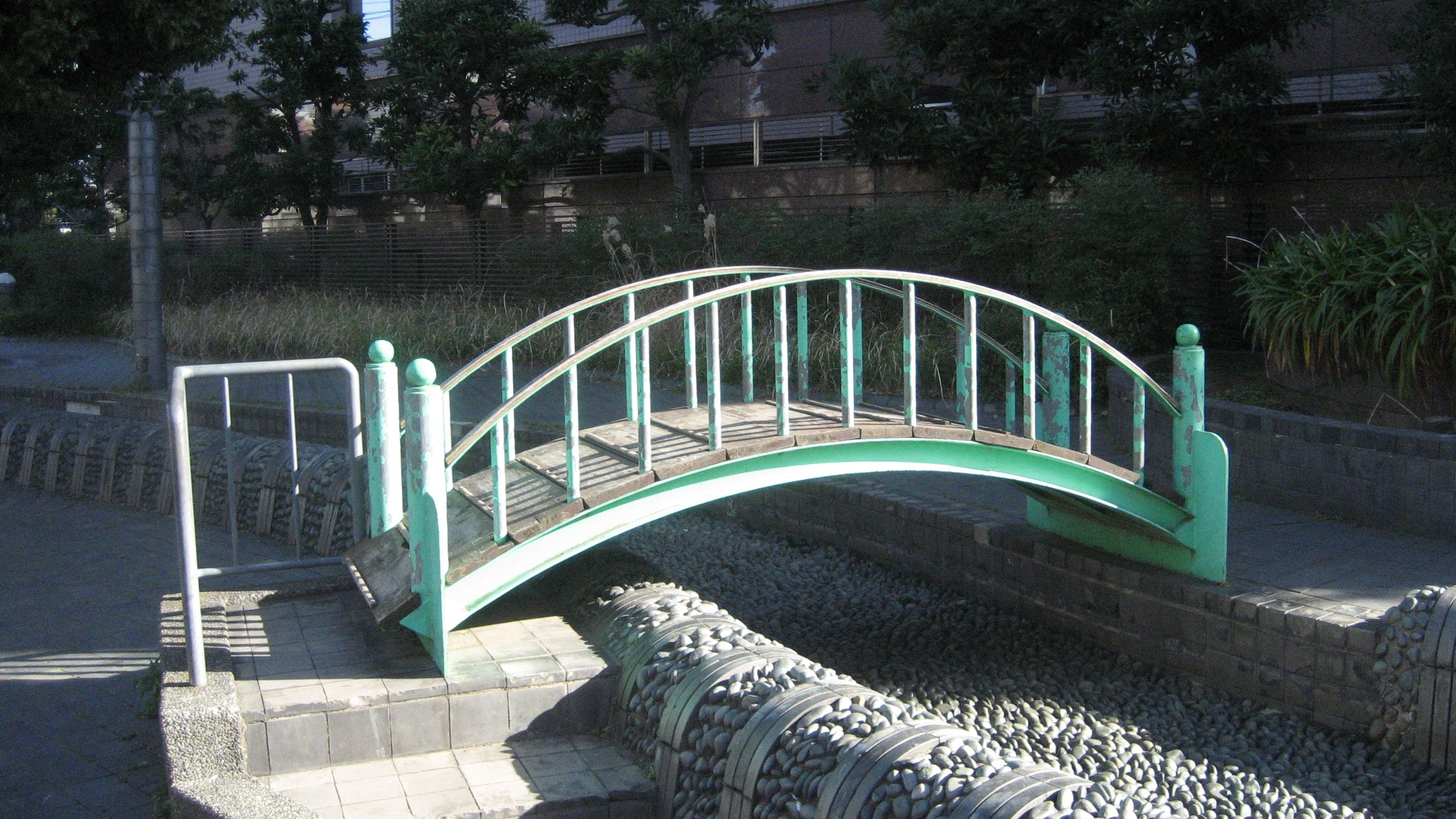 水なし人工川に橋……遊ぶ子供の姿はありませんでした。寒いものね~ この橋をくぐって遊ぶと絶対に頭をぶつけます……痛!!!