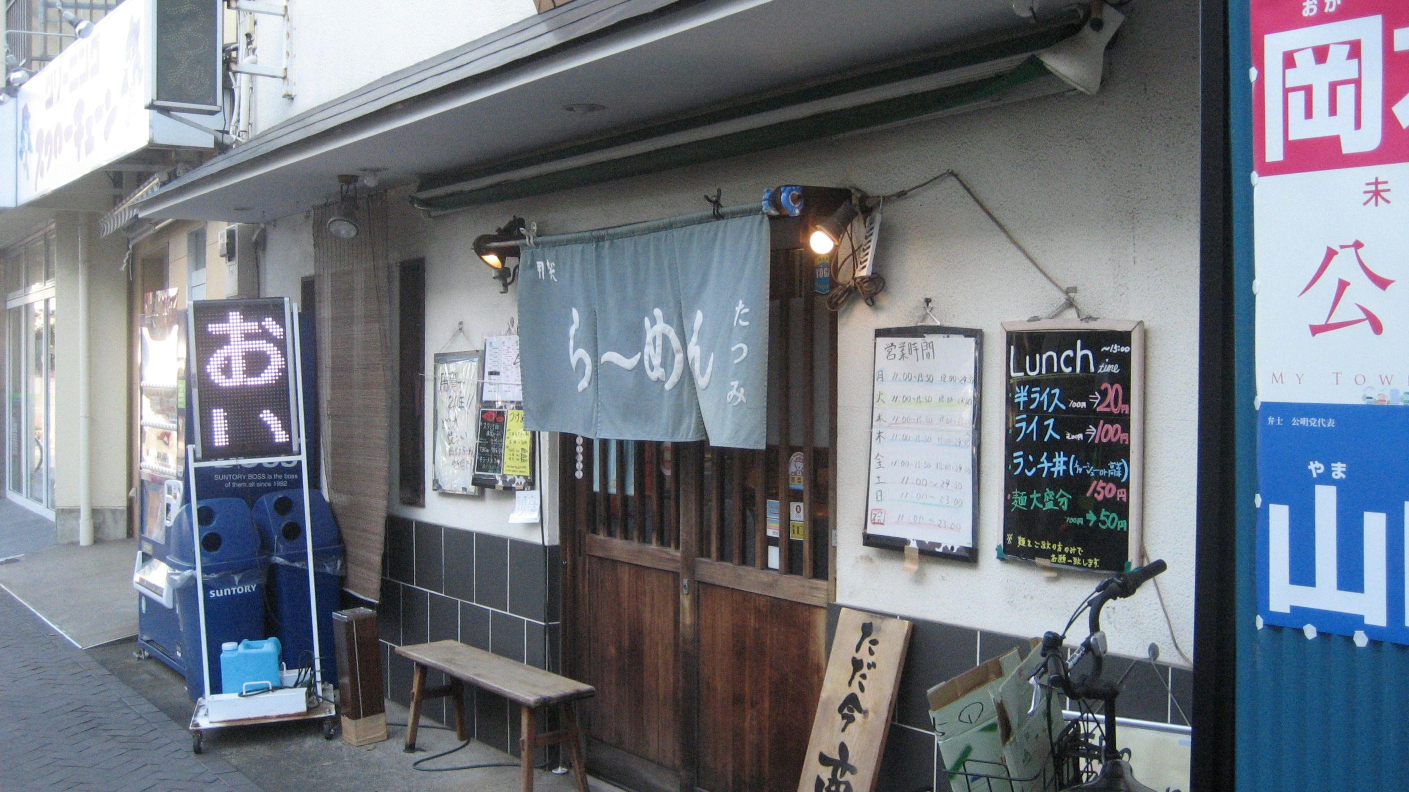 ​  らーめん たつみ ……​用賀駅そばです。本当にお腹が空いていたので暖簾の隙間から覗いたのですが、カウンター満席でした。ワンタン麺たべたかったな~
