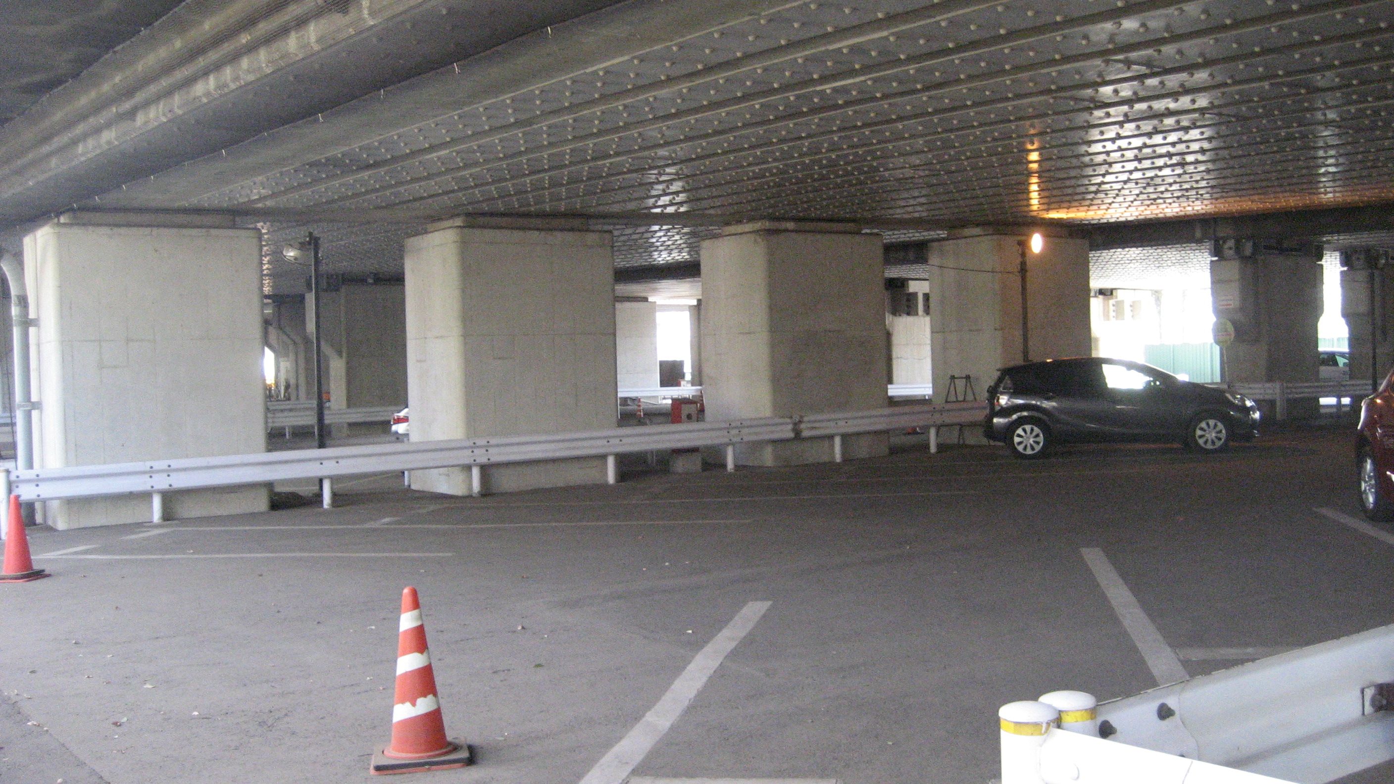 高速下は駐車場でした。たくさん停められますが、駐車車両はわずかでした。後で分かったのですが、美術館脇にも広い駐車場がありましたから、皆さんそちらを使うのでしょう。一通の道路を来ないと入れないこちらは明らかに不便です。