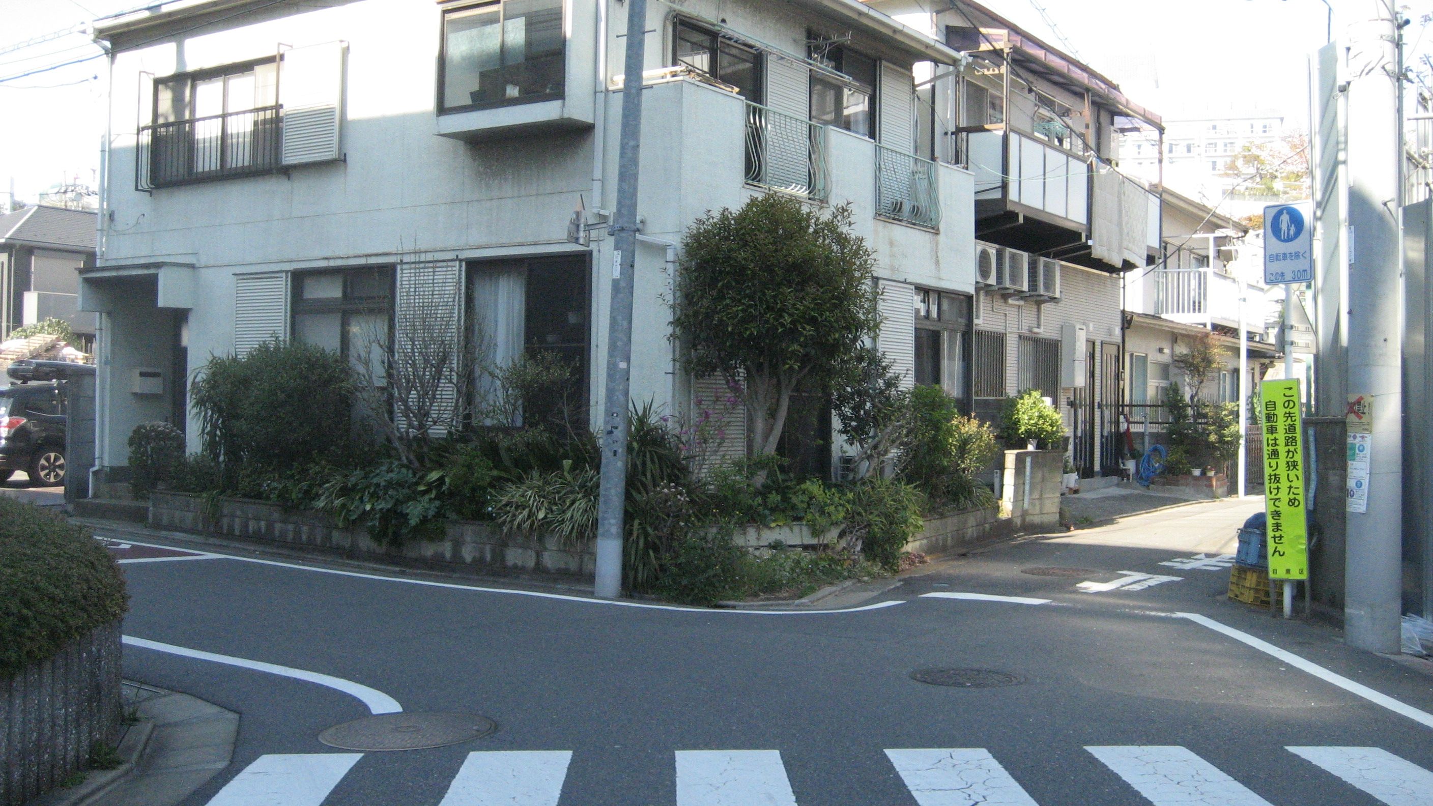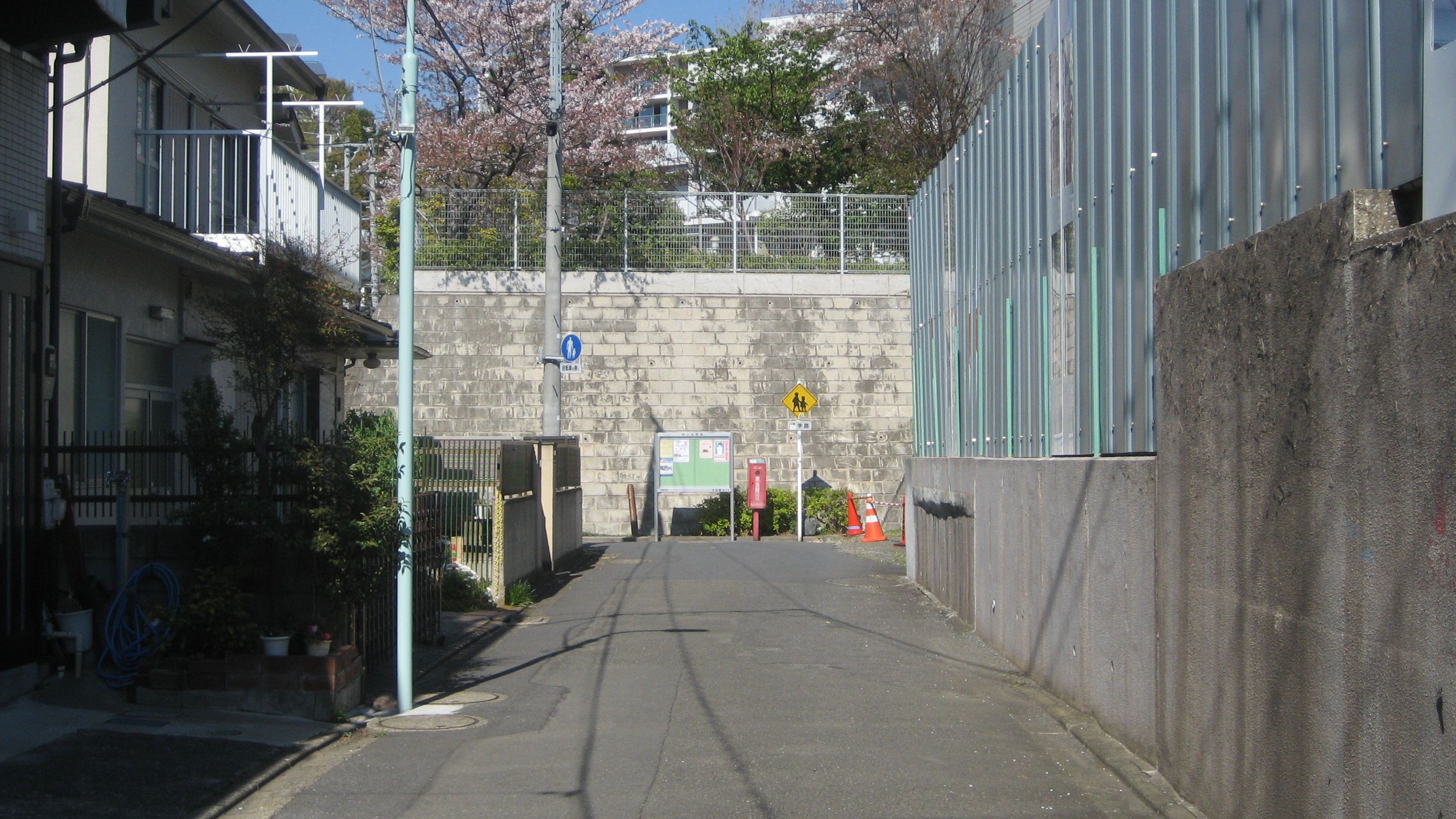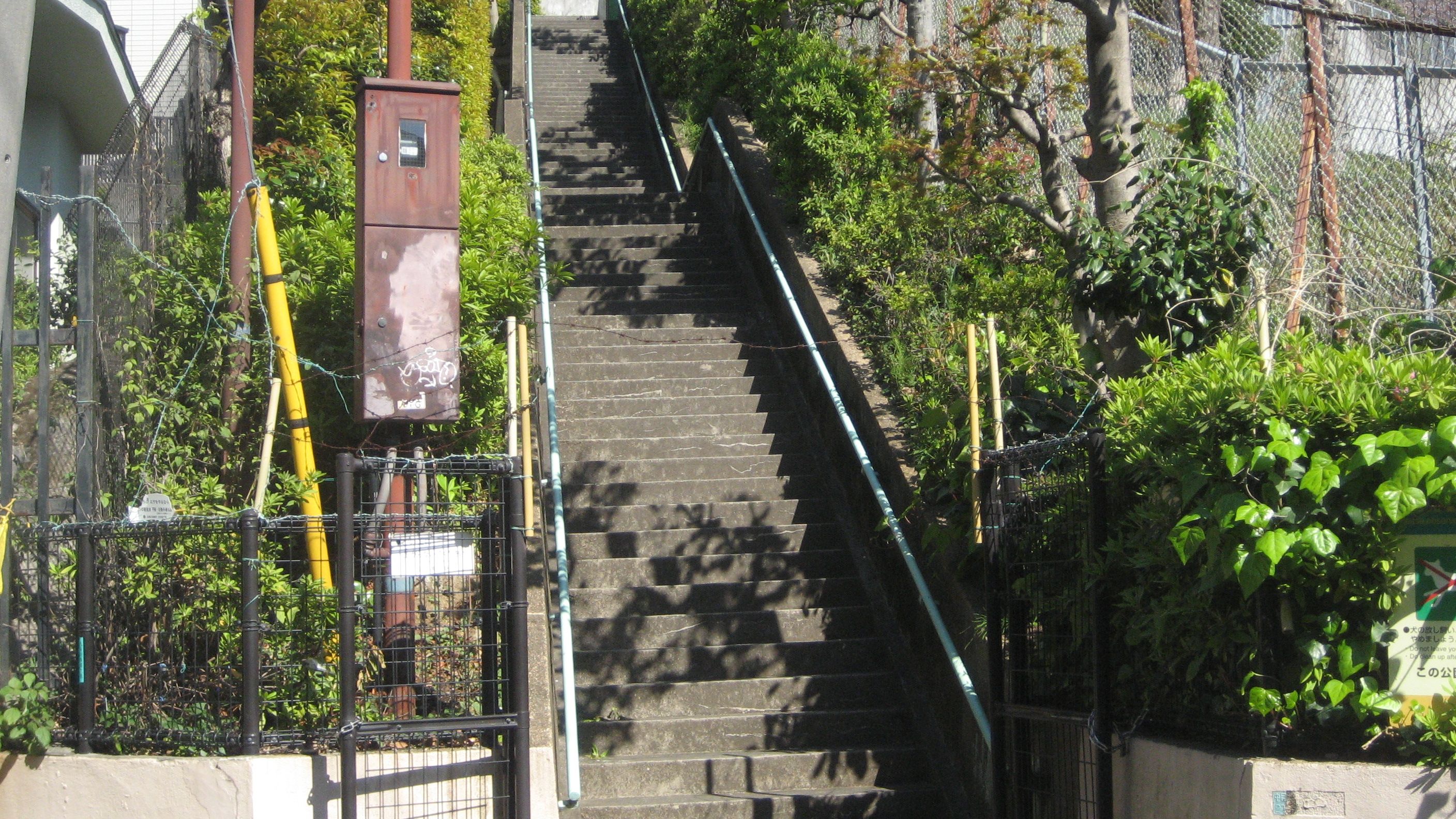 ​ 左のマンション ……この道は、いわゆる切通しなんでしょう。やっぱり階段はつらいよね~​