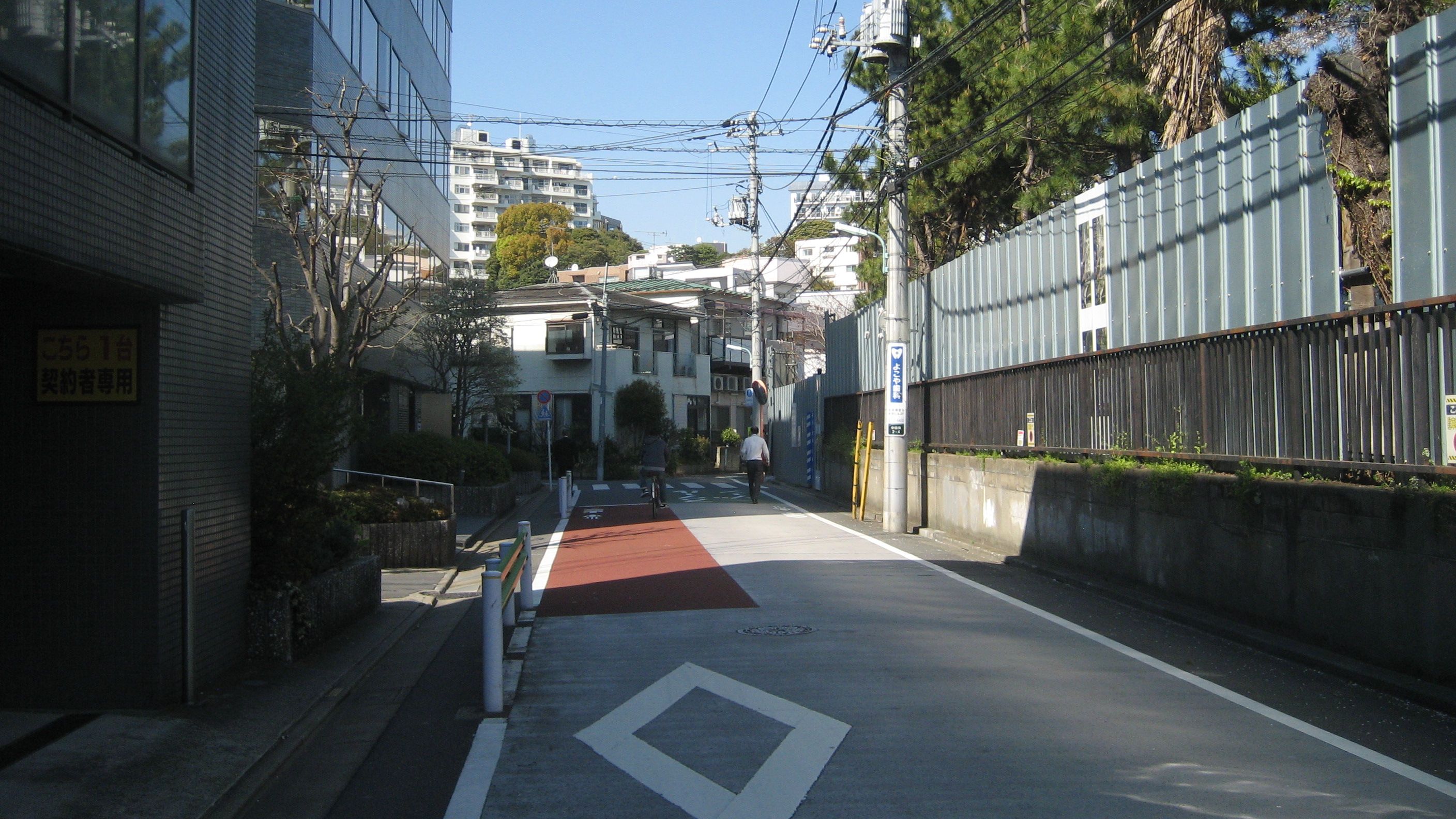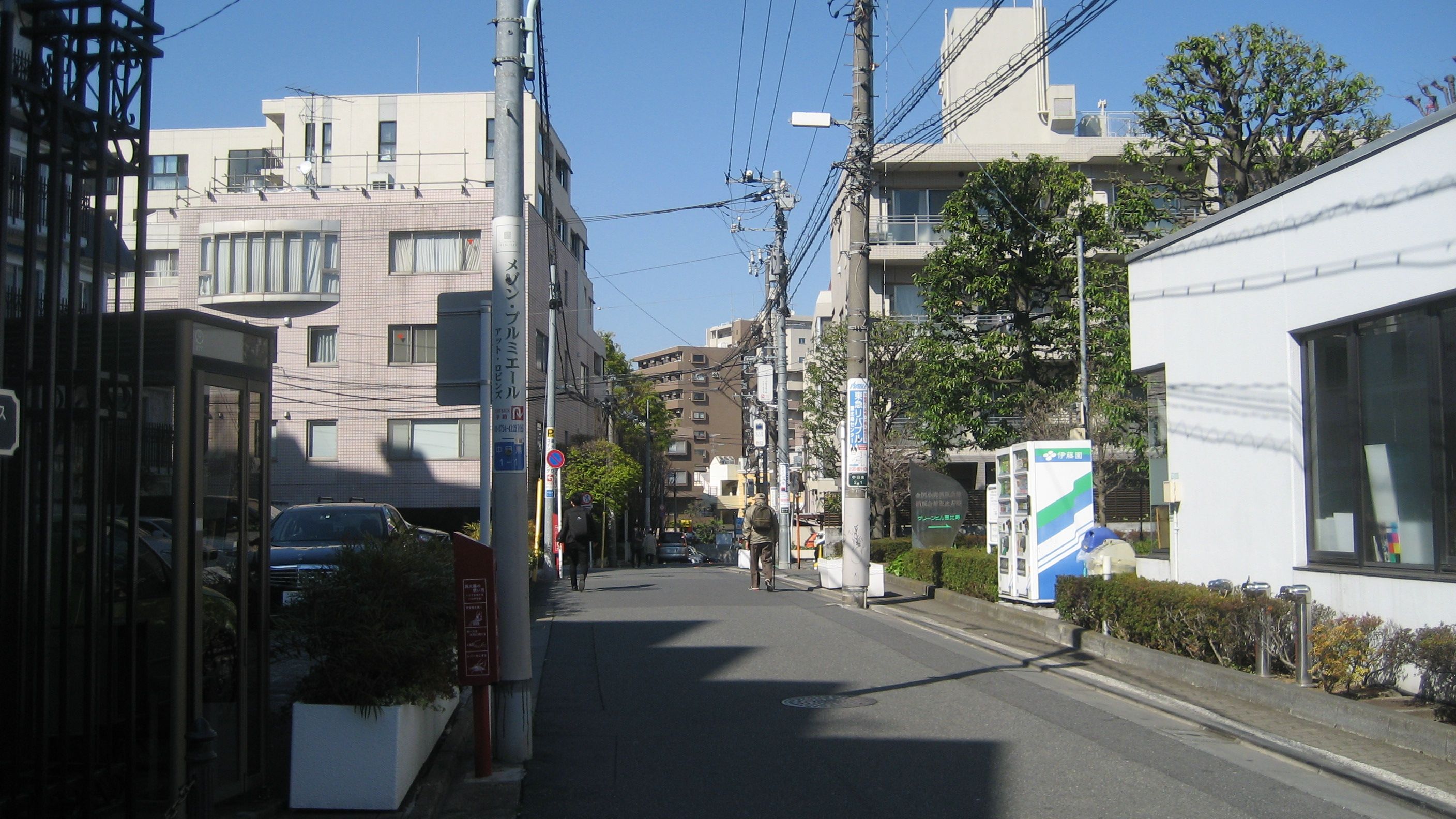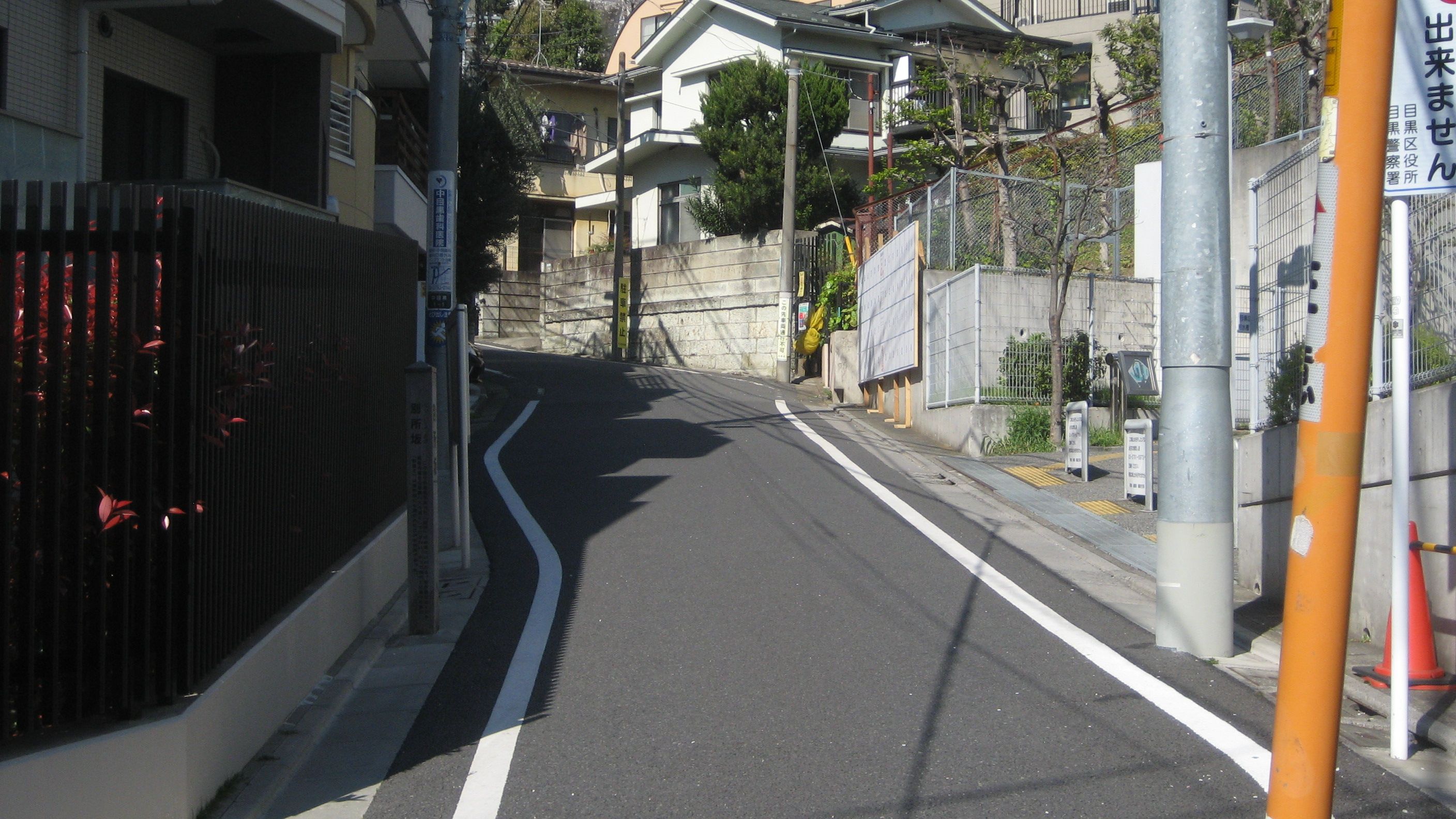 レストランはさておいてこんな道を……まだ目黒区……中目黒 1 丁目と 2 丁目の間の道です。