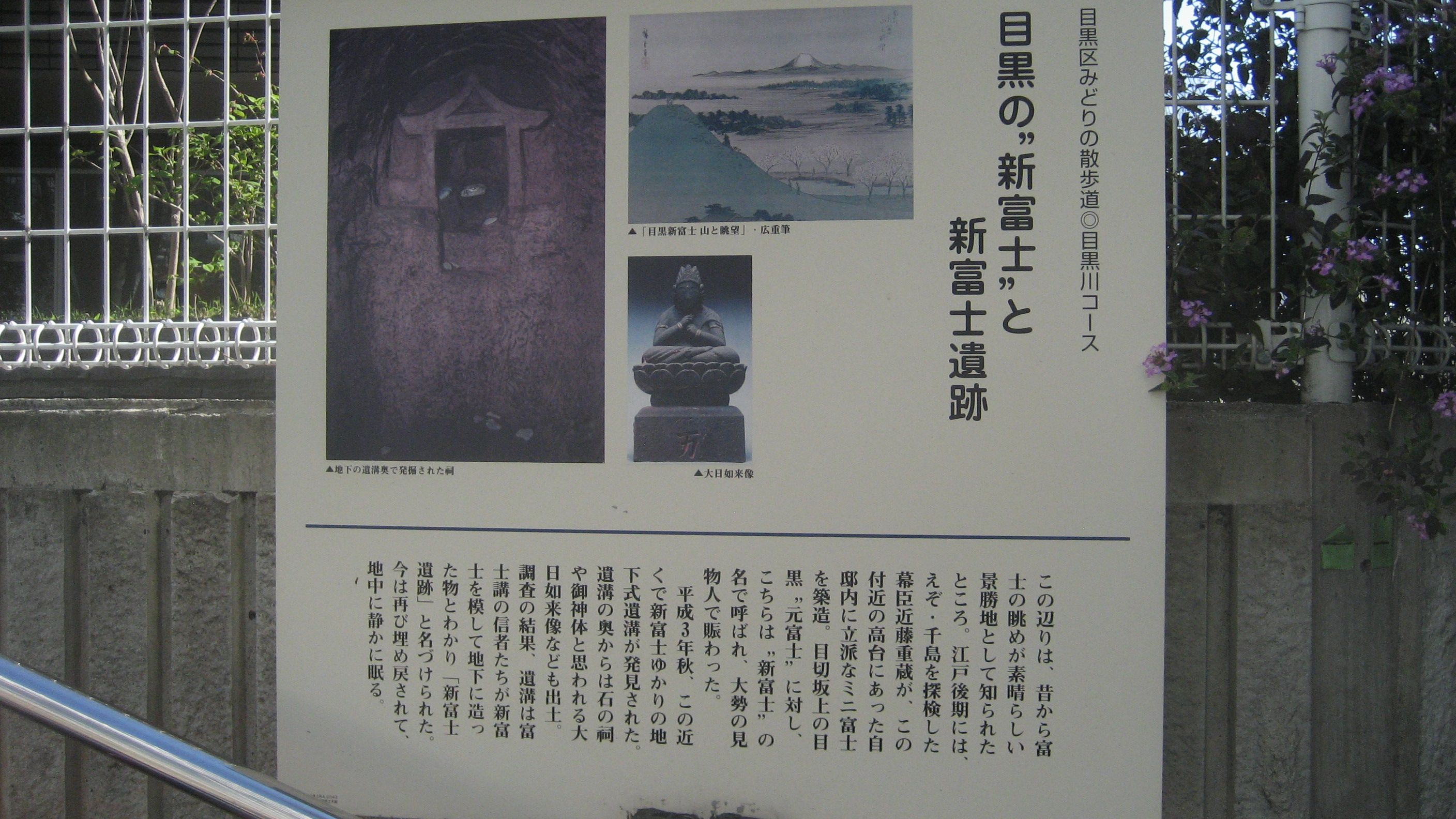 『坂上は富士のながめの良い所で、えぞ・千島の探検で知られた近藤重蔵が文政 2 (1819 ) 、新富士・近藤富士などと呼ばれた築山を造り、目黒元富士とともに江戸名所のひとつとして、行楽客に親しまれたと言われている。この築山は昭和 34 年まで、その形を残していたが取り壊された。 ( 目黒区 HP) 』とのことです。​
