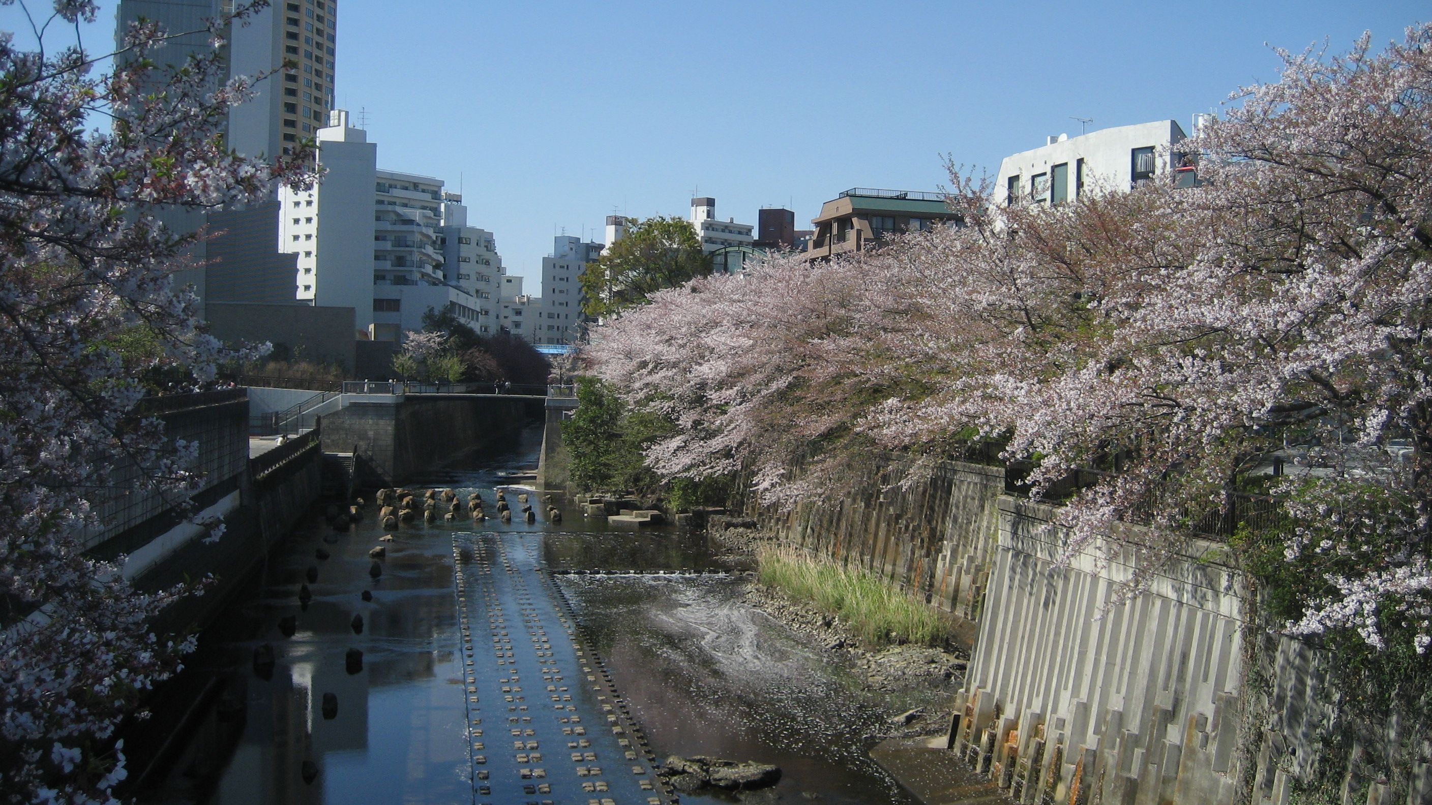 ​  目黒川上流方向 ……​かすかに薄紅色…​