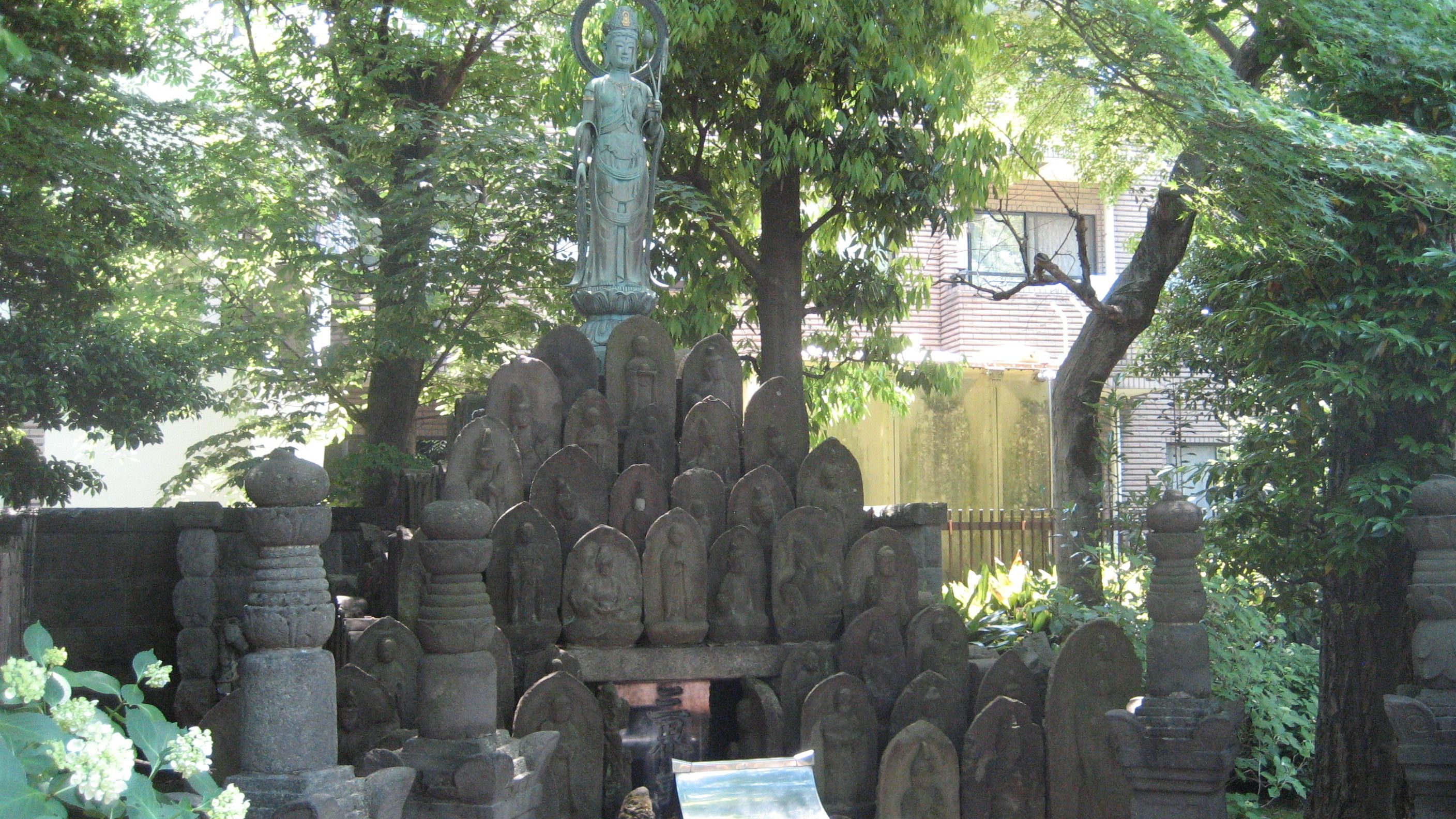 山門をくぐってすぐ左の石仏群……以前お邪魔した上大崎「 法性山清岸寺 ​」の三界萬霊塔を思い出します。