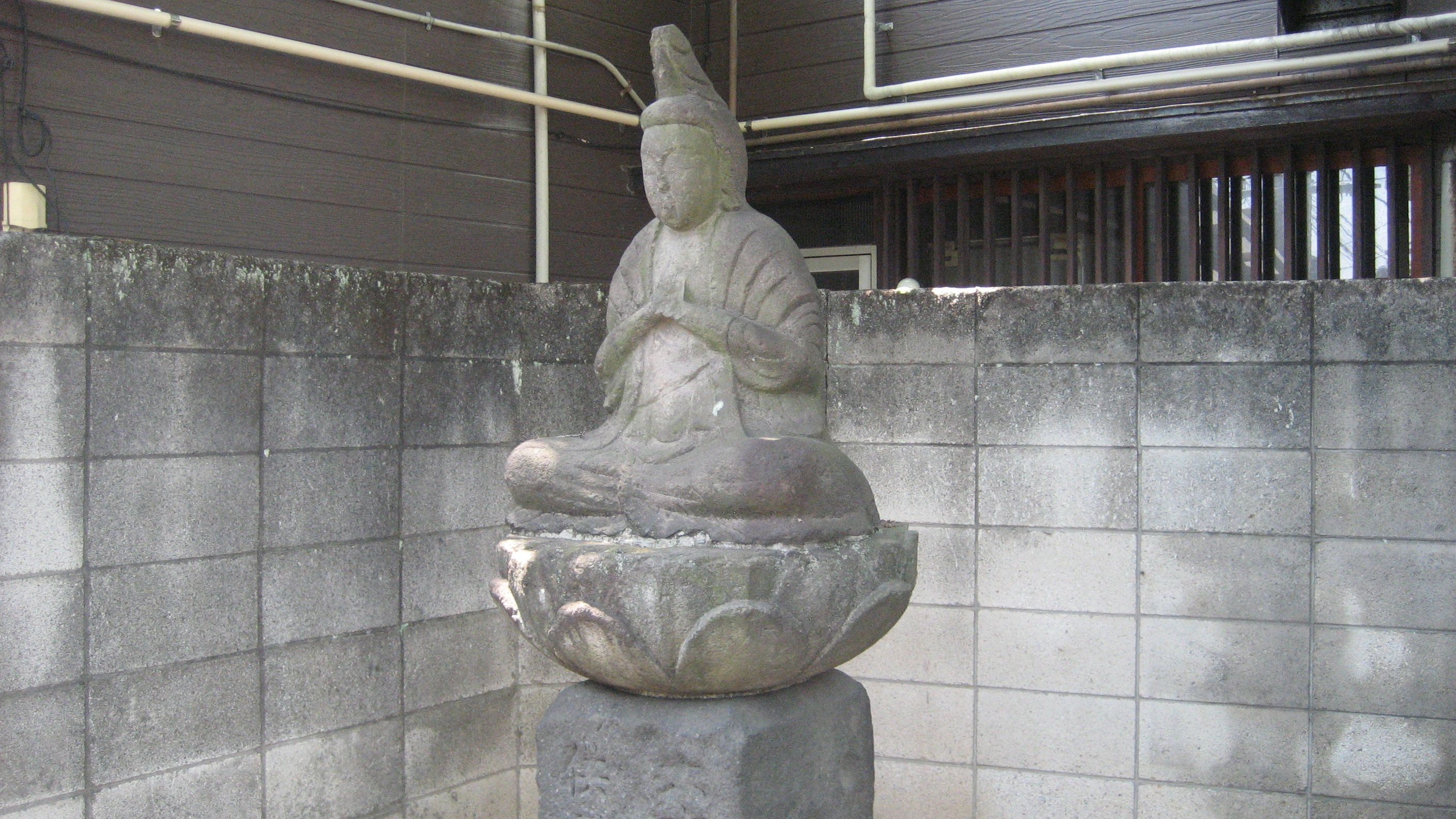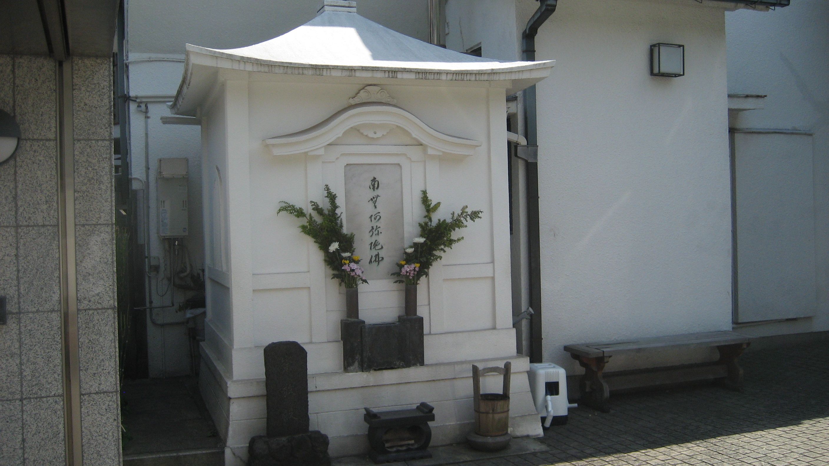 ​ 本 堂 ……​現在の本堂は昭和50年に建て替えられたもので、以前の本堂は明治13年に行人坂の明王院念仏堂を移築したとものとのこと。本尊は阿弥陀如来で、木彫彩色の青面金剛立像も安置されていると……覗いたのですが、よく見えませんでした。