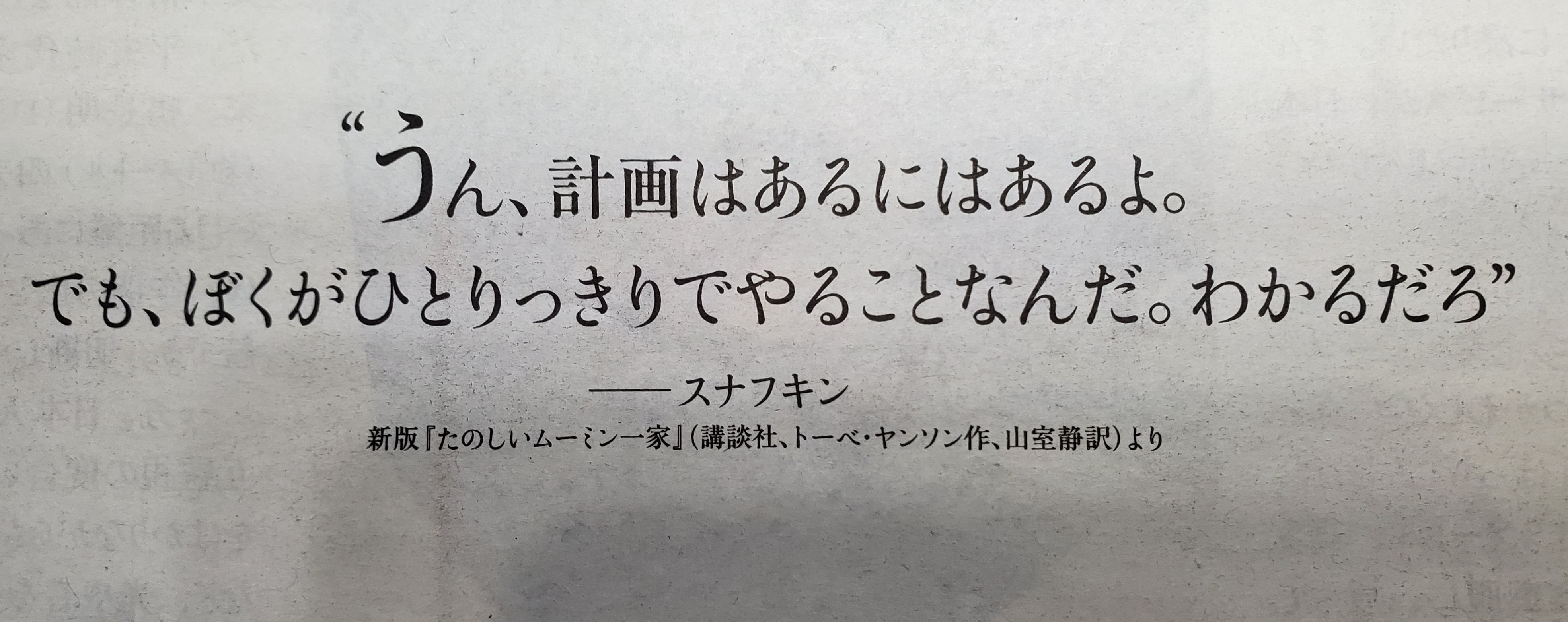 自由を愛するスナフキンの計画って何だろう……他人を巻き込まず「ひとりっきりでやる」ってとこが恰好良い。