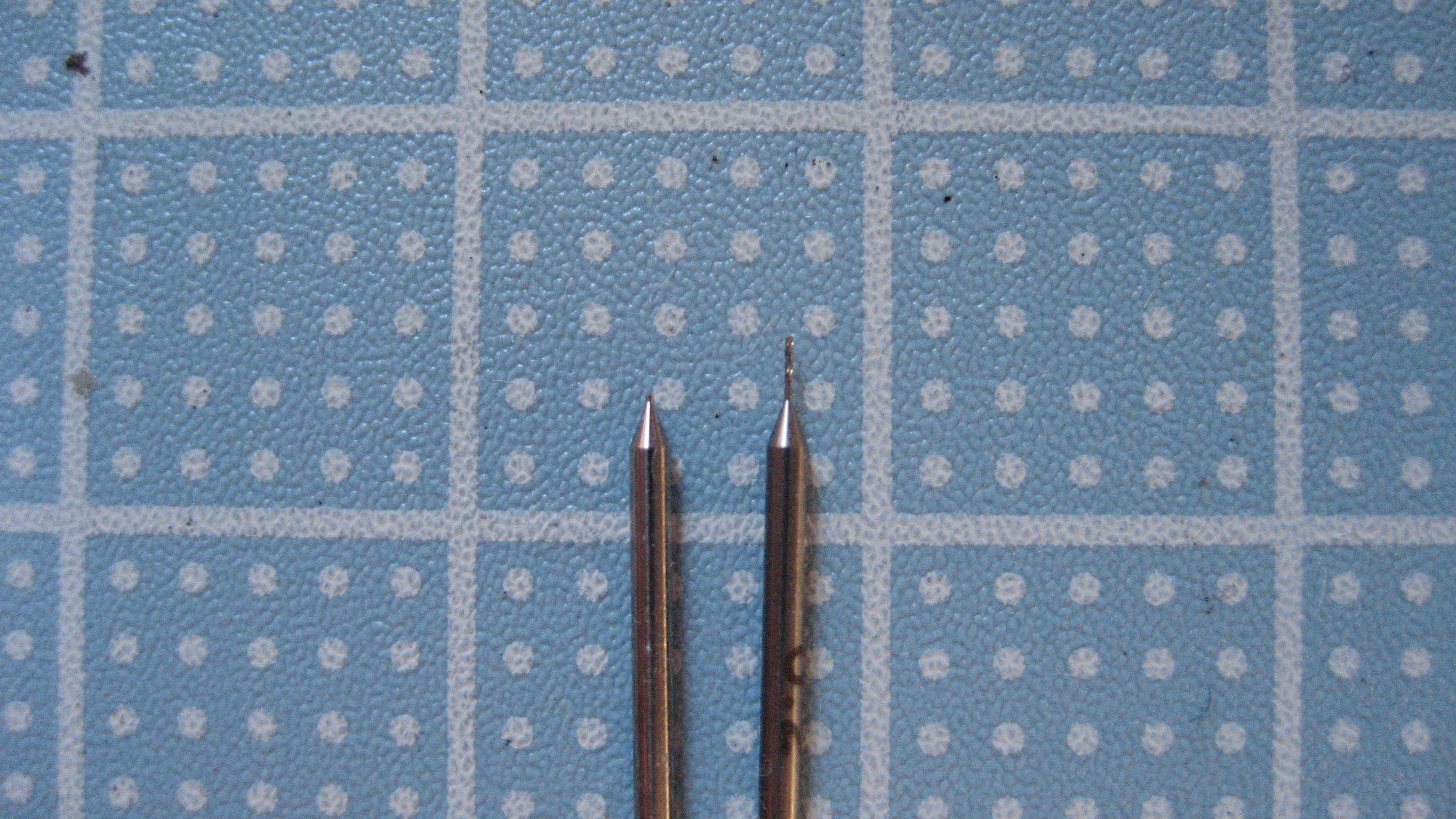 mmなので、それ以上深い穴を開けるには全体が直径 0.2mmの物を使う。こちらも以前折ってしまったので在庫がない。買ってこないとならないようだ。0.3 mmは健在だけど、どうしても0.2で行きたい私……熱が冷めないうちに調達しよう。