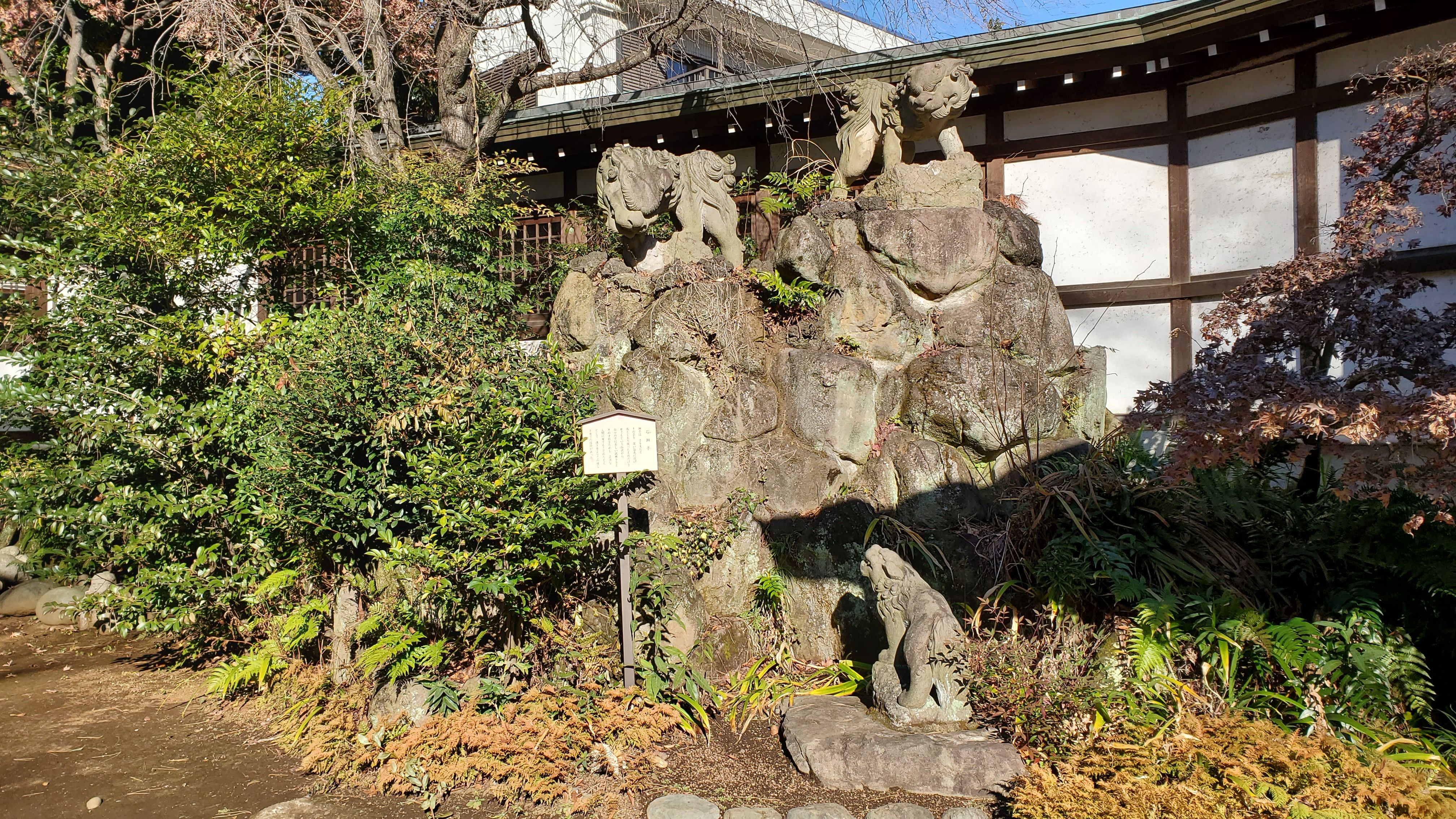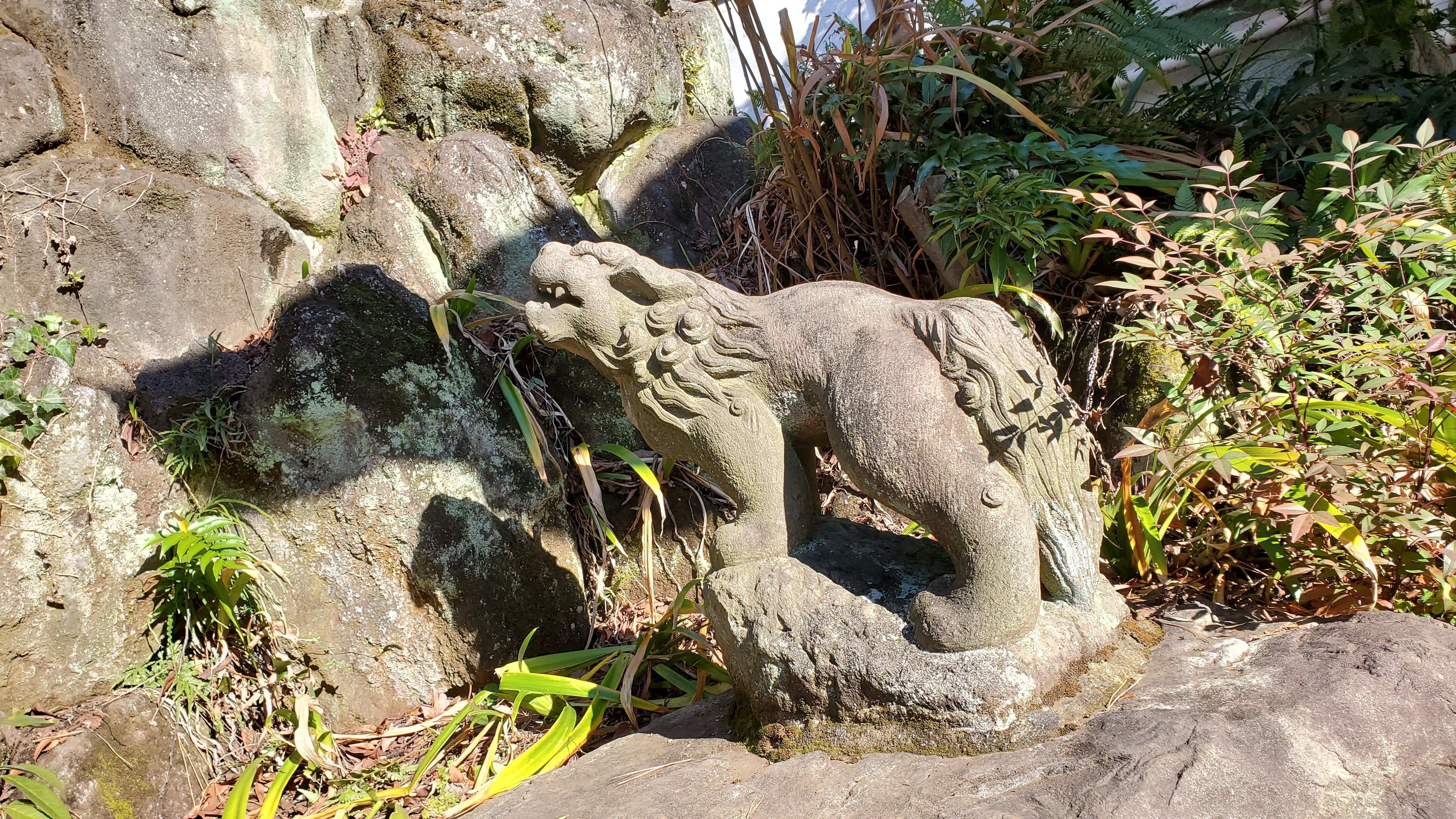 石獅子(いわしし)……『獅子は子を生むと、その子を深い谷底に投げ落とし、生き残ったものだけを育てるという俗説から、自分の子に苦しい試練を与えその才能をためし、立派な人間に育てることのたとえとして、遠き昔よりこの様な子育ての信仰があった』と書かれていましたが、言葉を具現化したのでしょう。