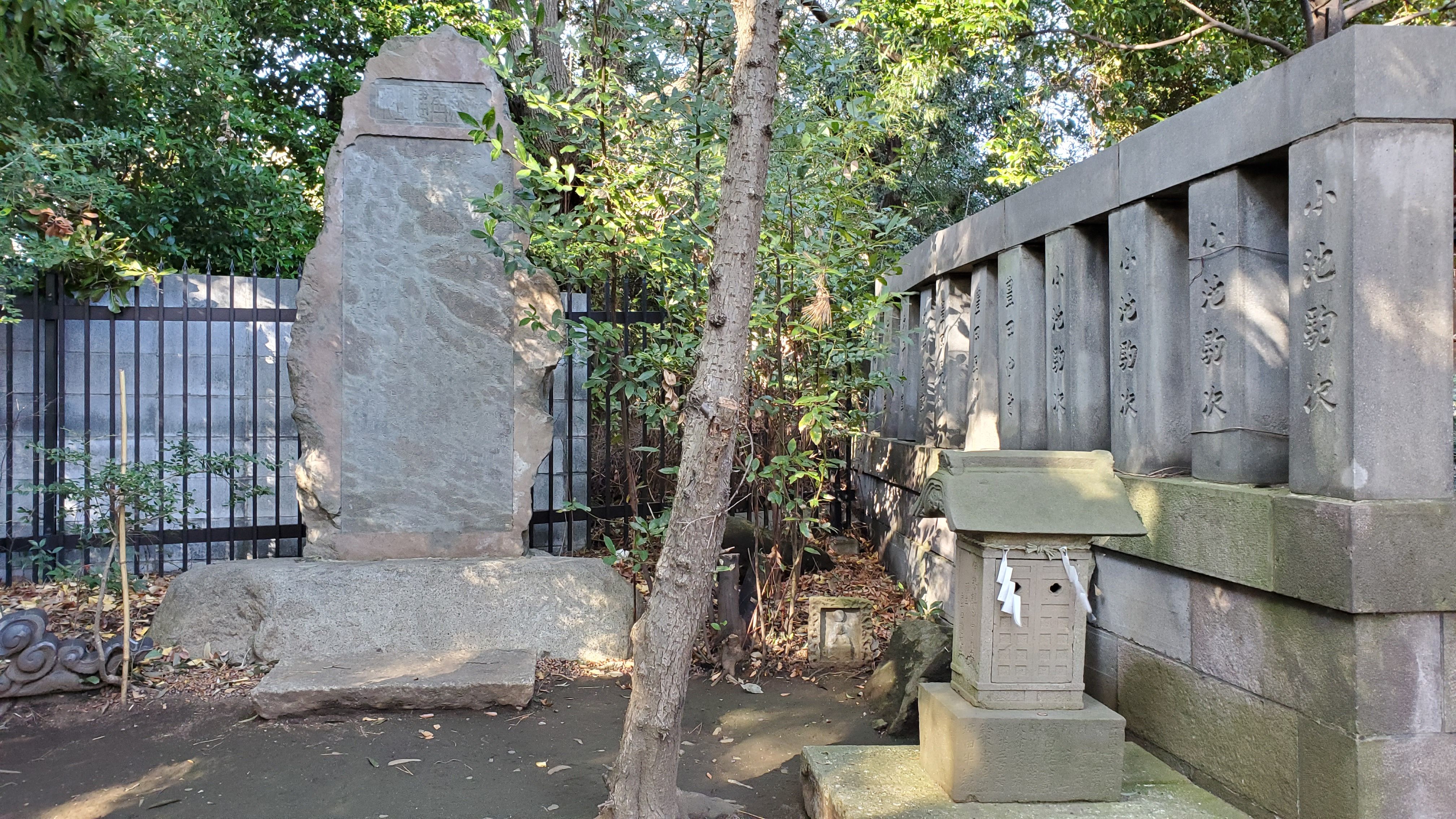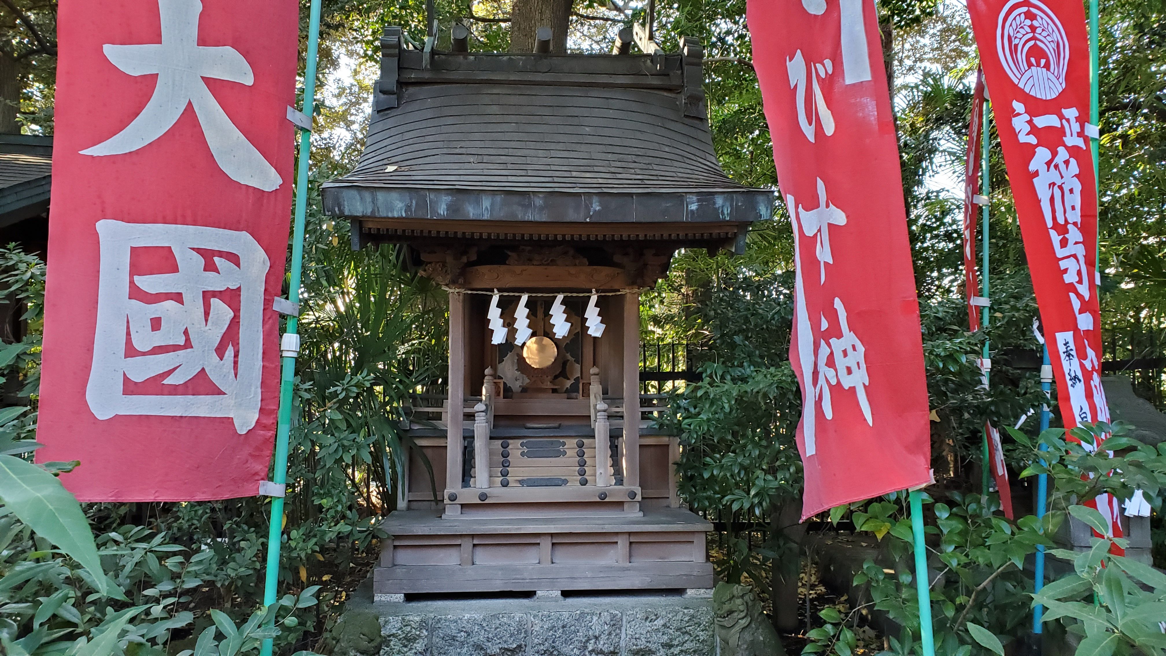 社殿左側には、いくつもの境内社や石碑が並んでいました。後ろは歩いて来た道路なのですが、木々に囲まれて静かな空間でした。