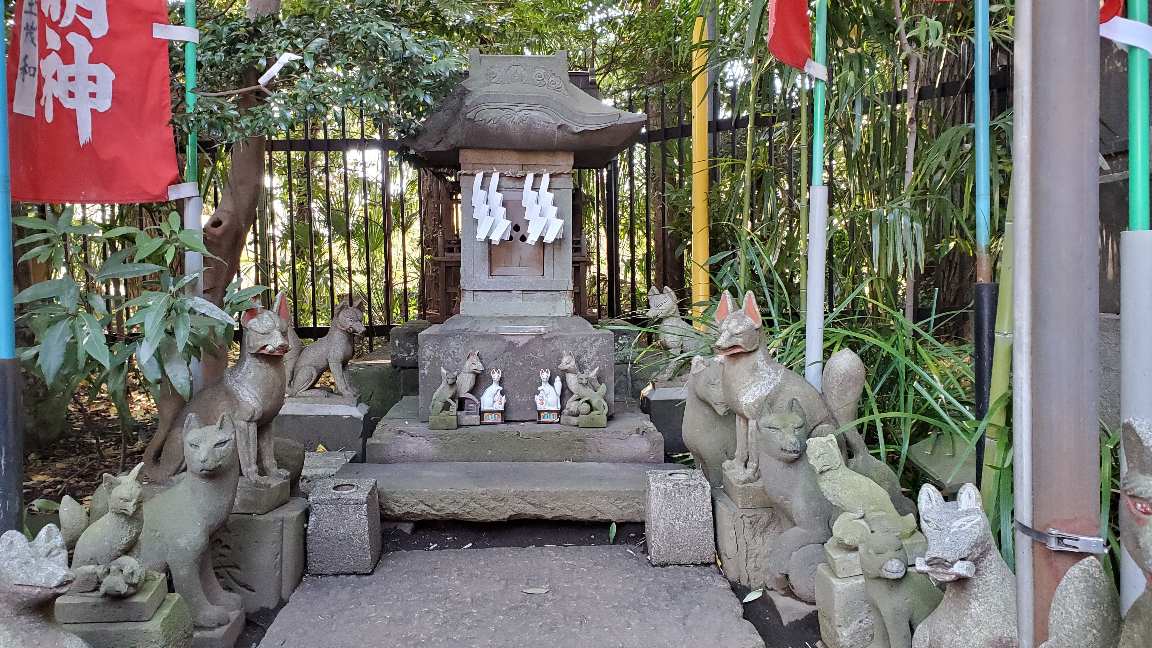 稲荷社……朱色の鳥居があったし、お狐さん大集合。