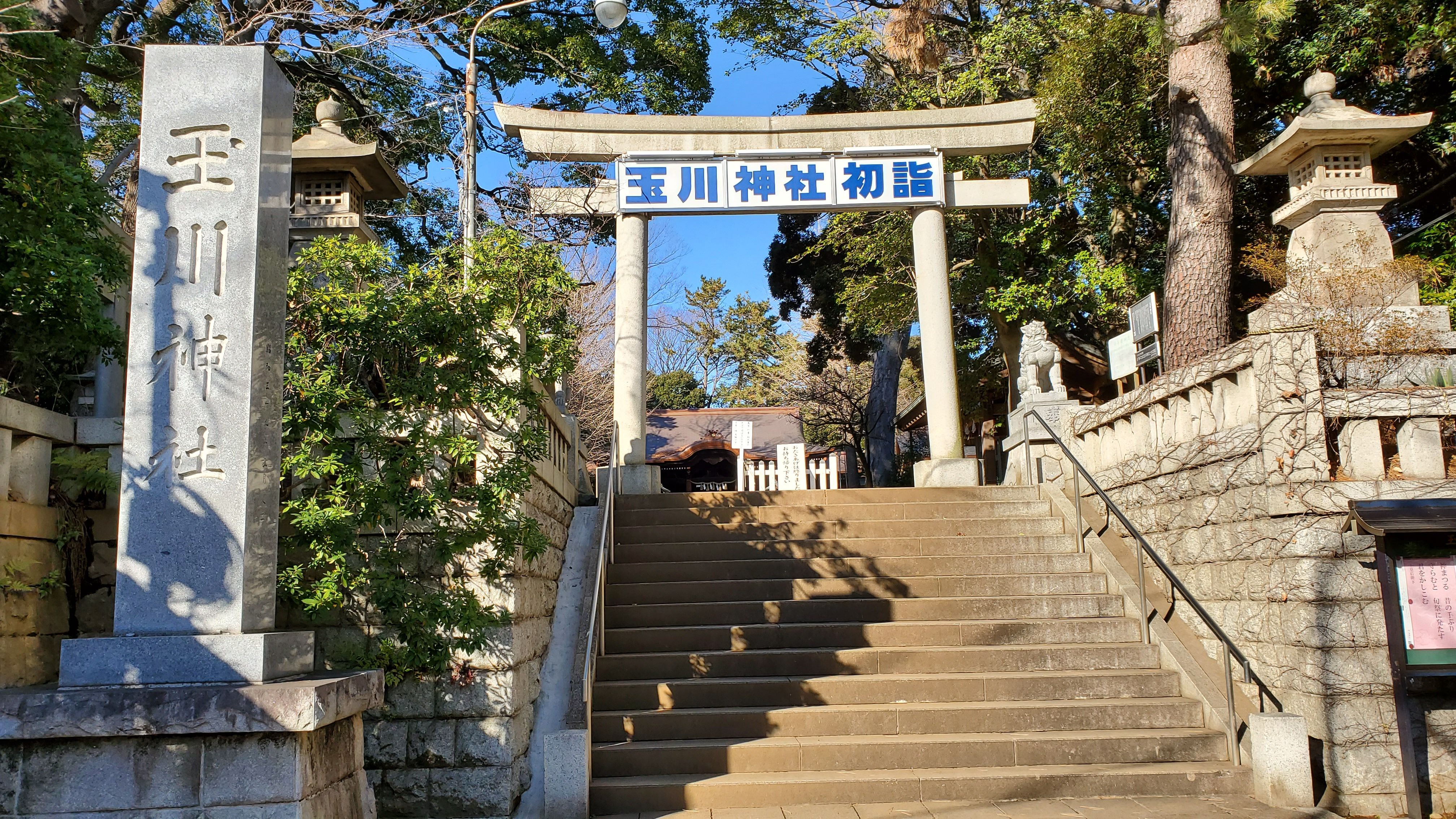 薬師如来瑠璃光院参道を出ると左に鳥居……玉川神社境内西側の参道です。