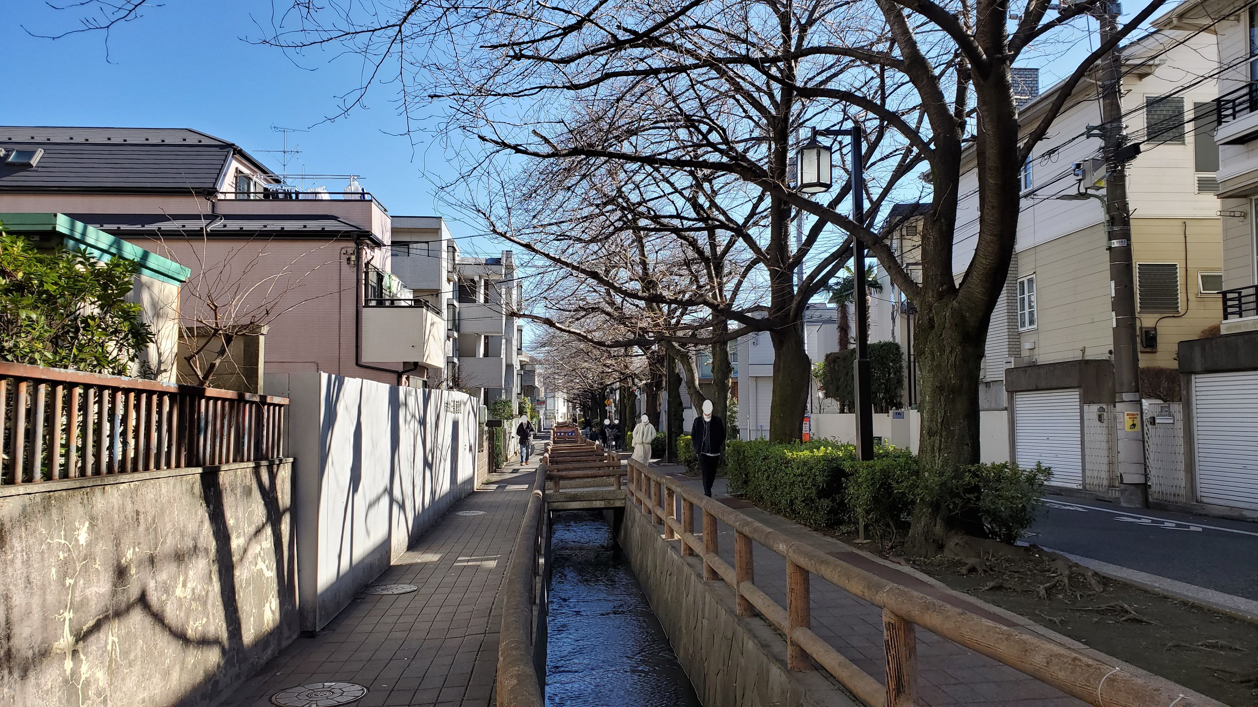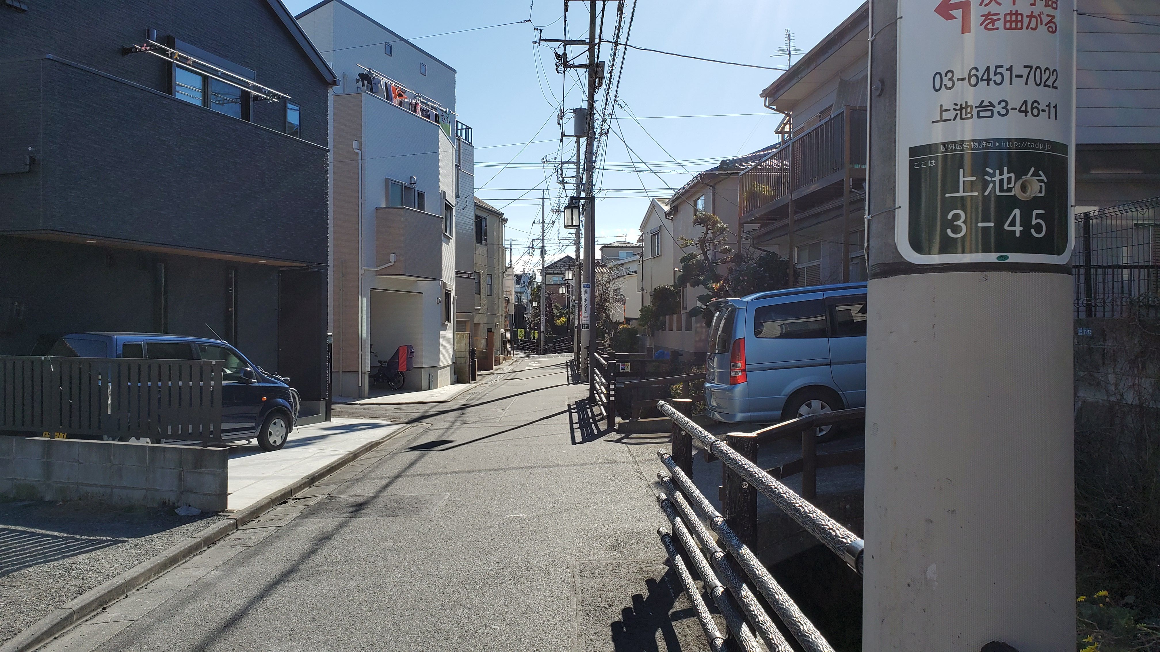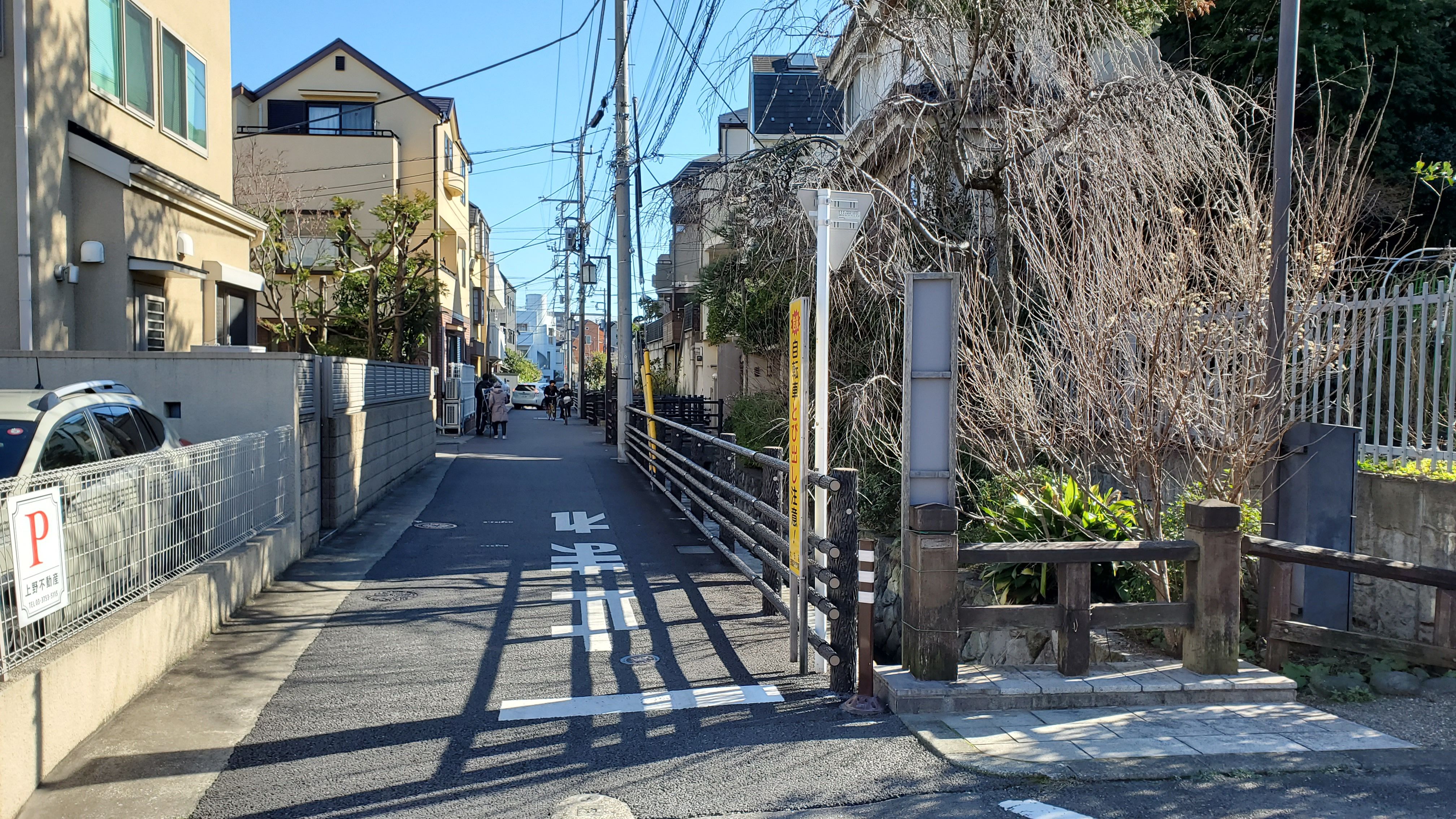 長慶寺脇の路地を抜けると新幹線の高架……高架をくぐった先が集落単位の共同洗い場があったとされる池上根方(現在の仲池上一・二丁目)ですが、実際には洗足流れというより、呑川にあったのではないかと思う私です。