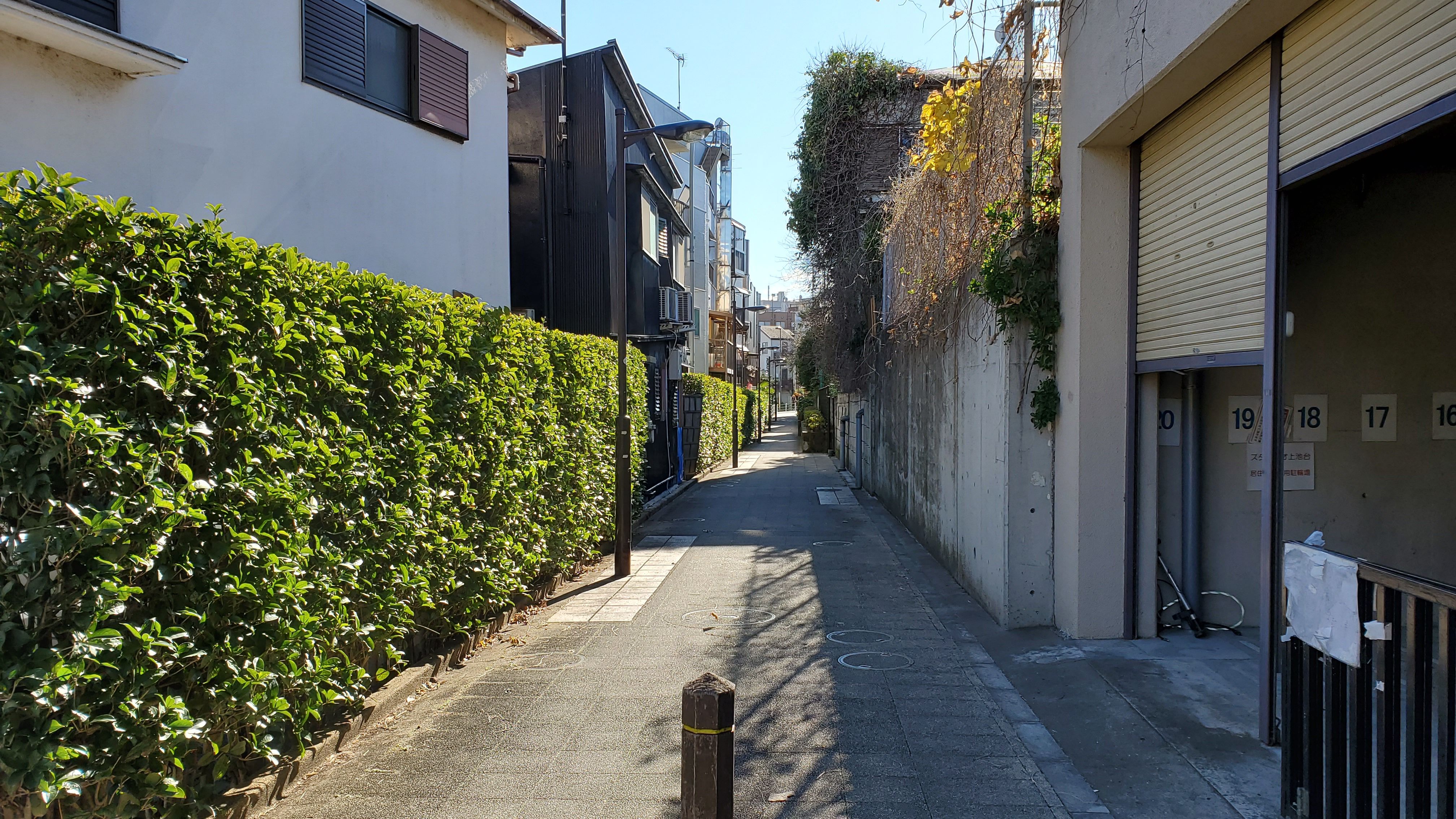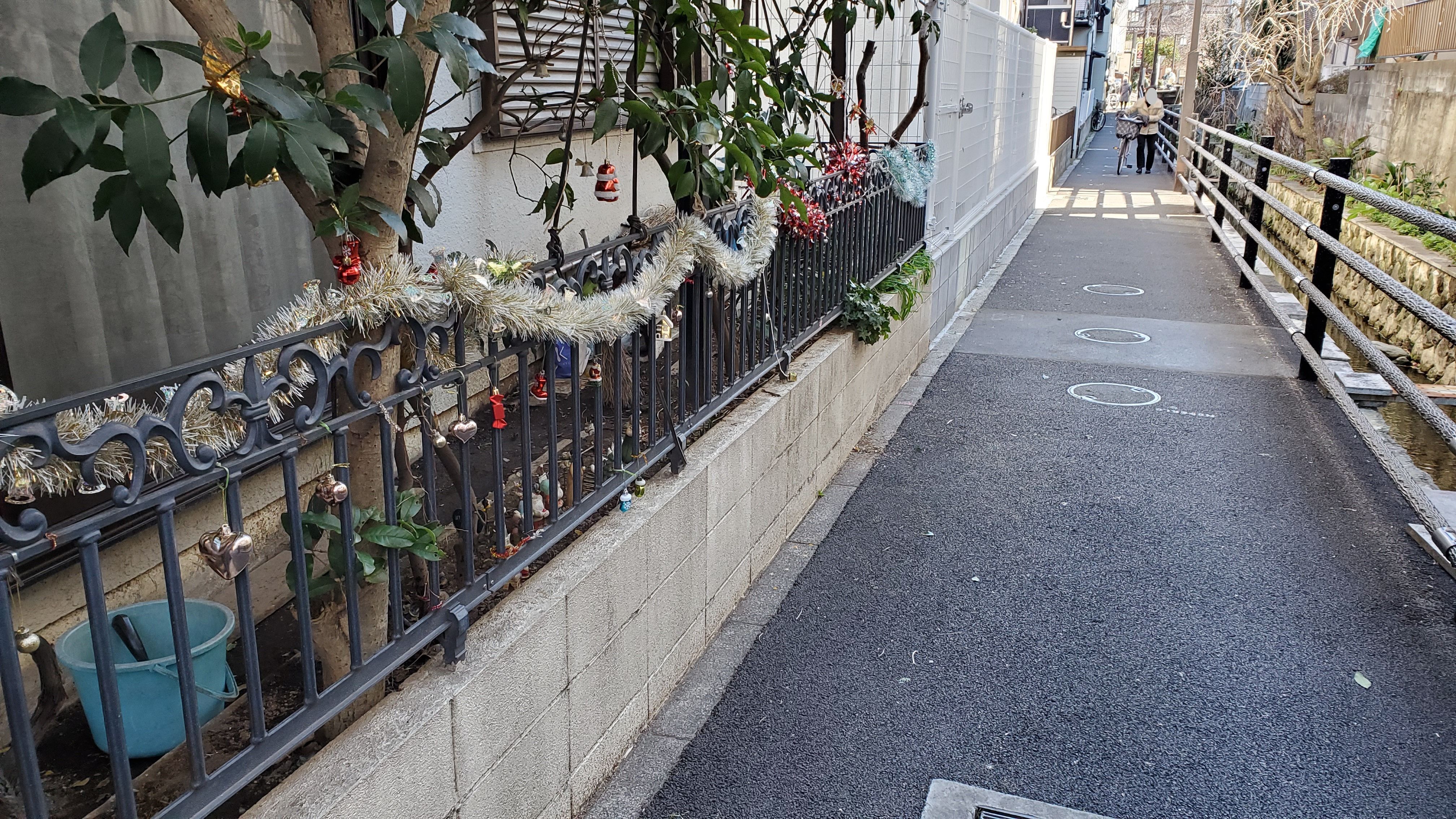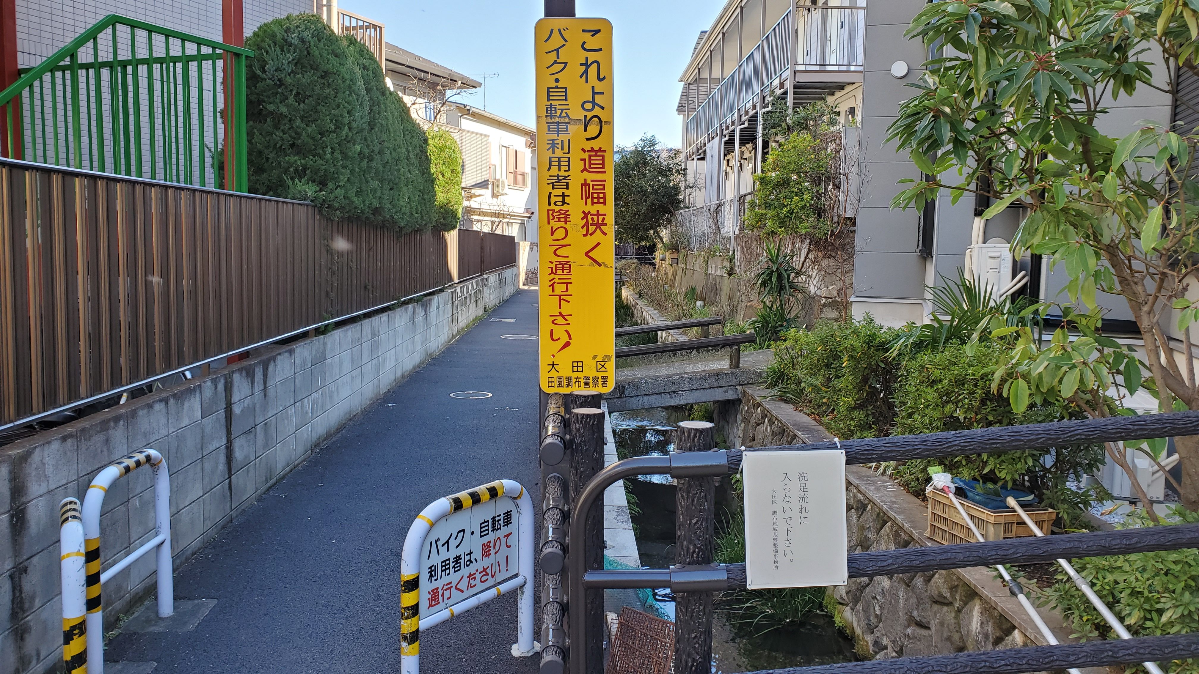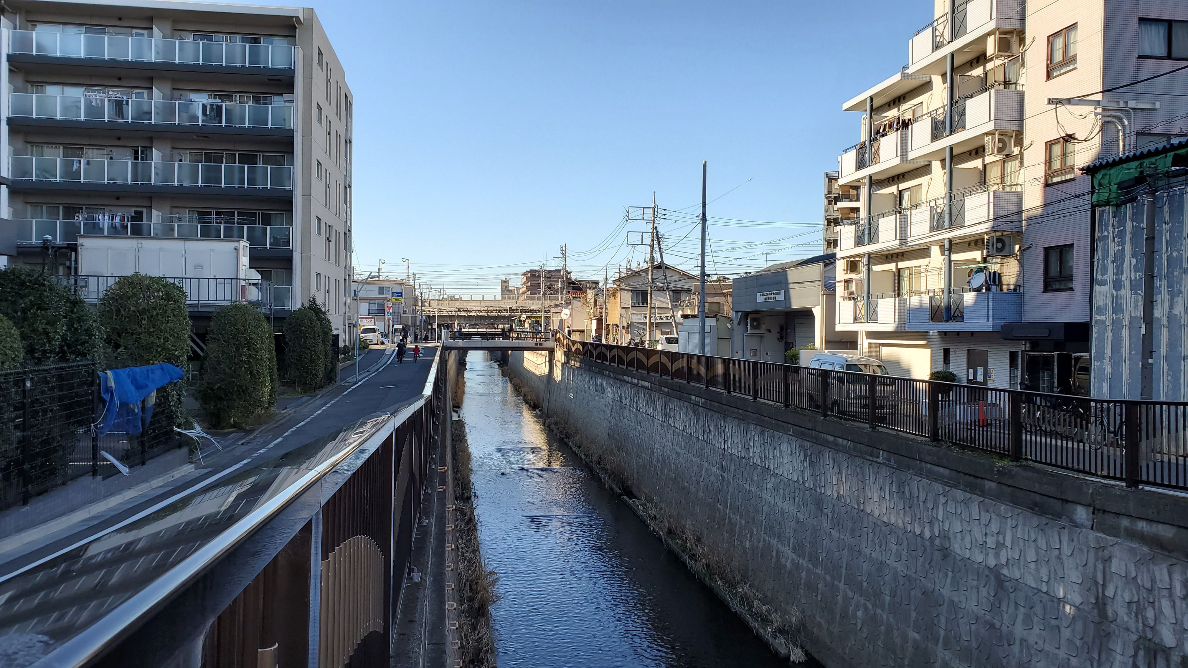 長慶寺脇の路地を抜けると新幹線の高架……高架をくぐった先が集落単位の共同洗い場があったとされる池上根方(現在の仲池上一・二丁目)ですが、実際には洗足流れというより、呑川にあったのではないかと思う私です。