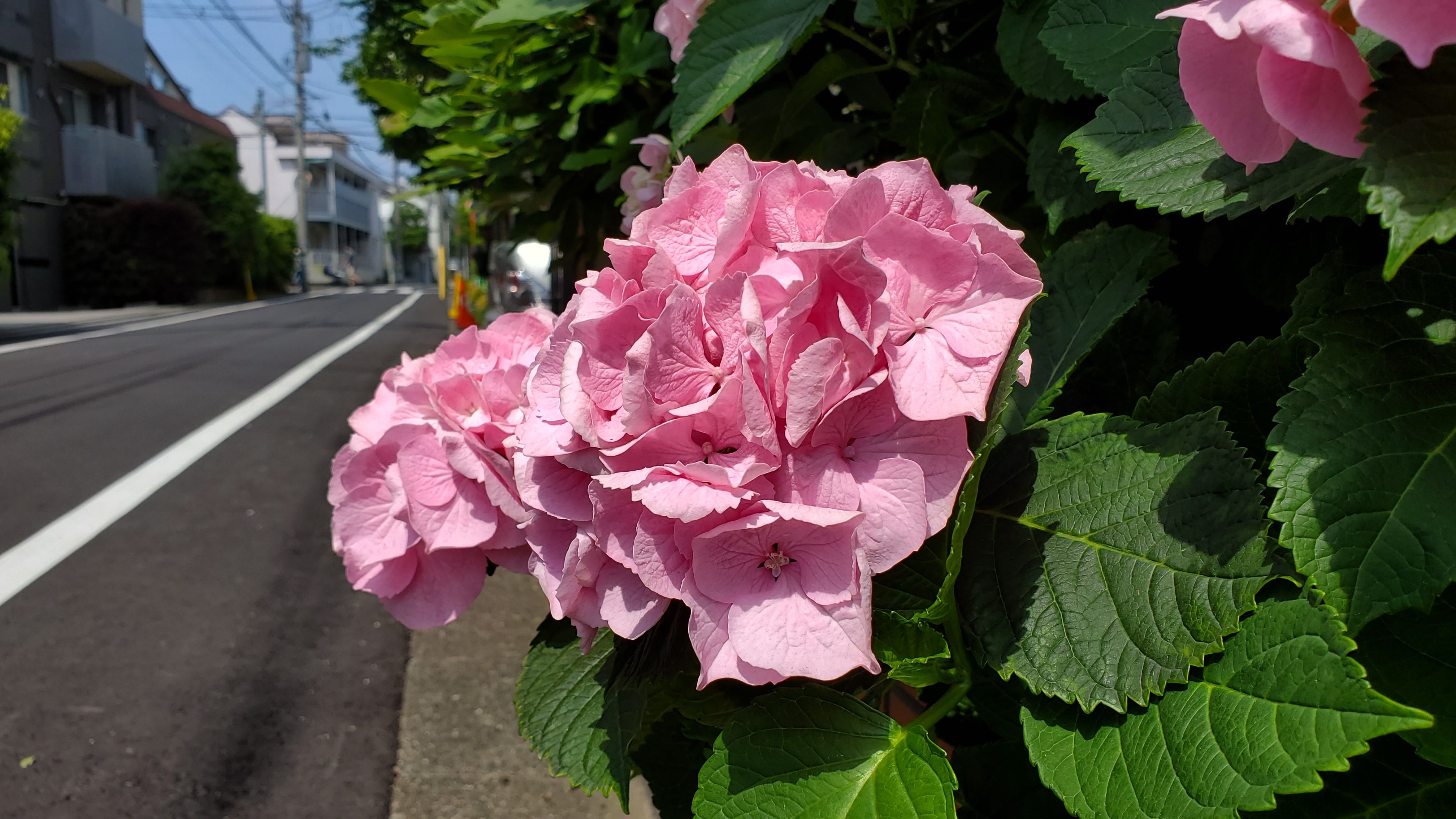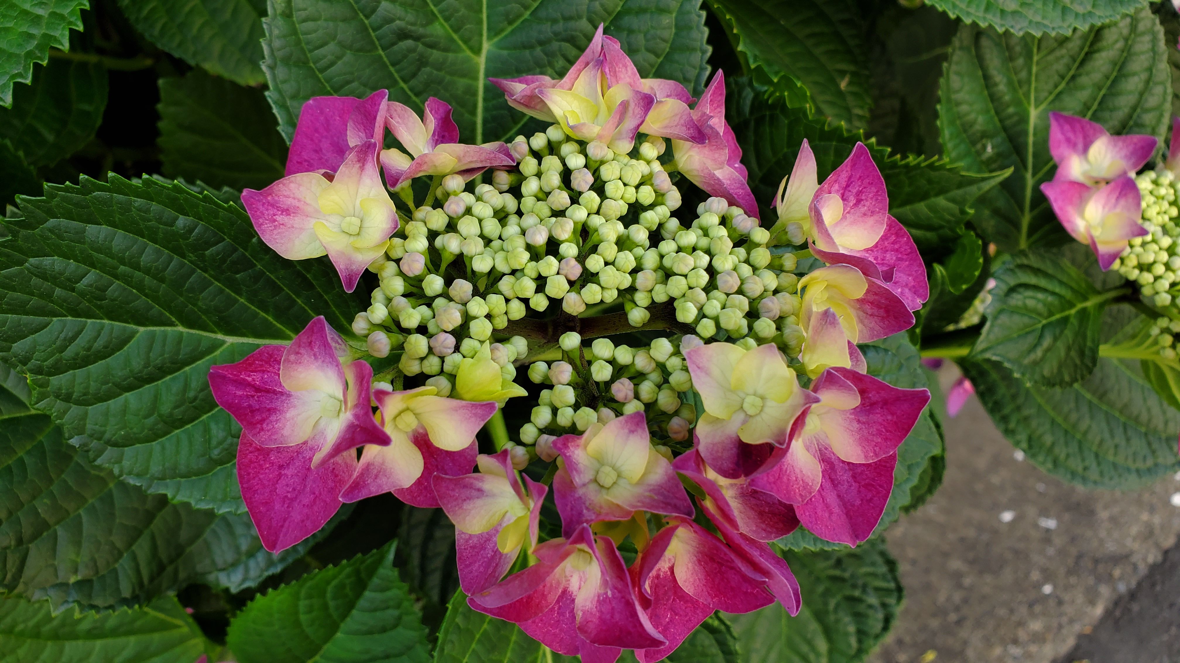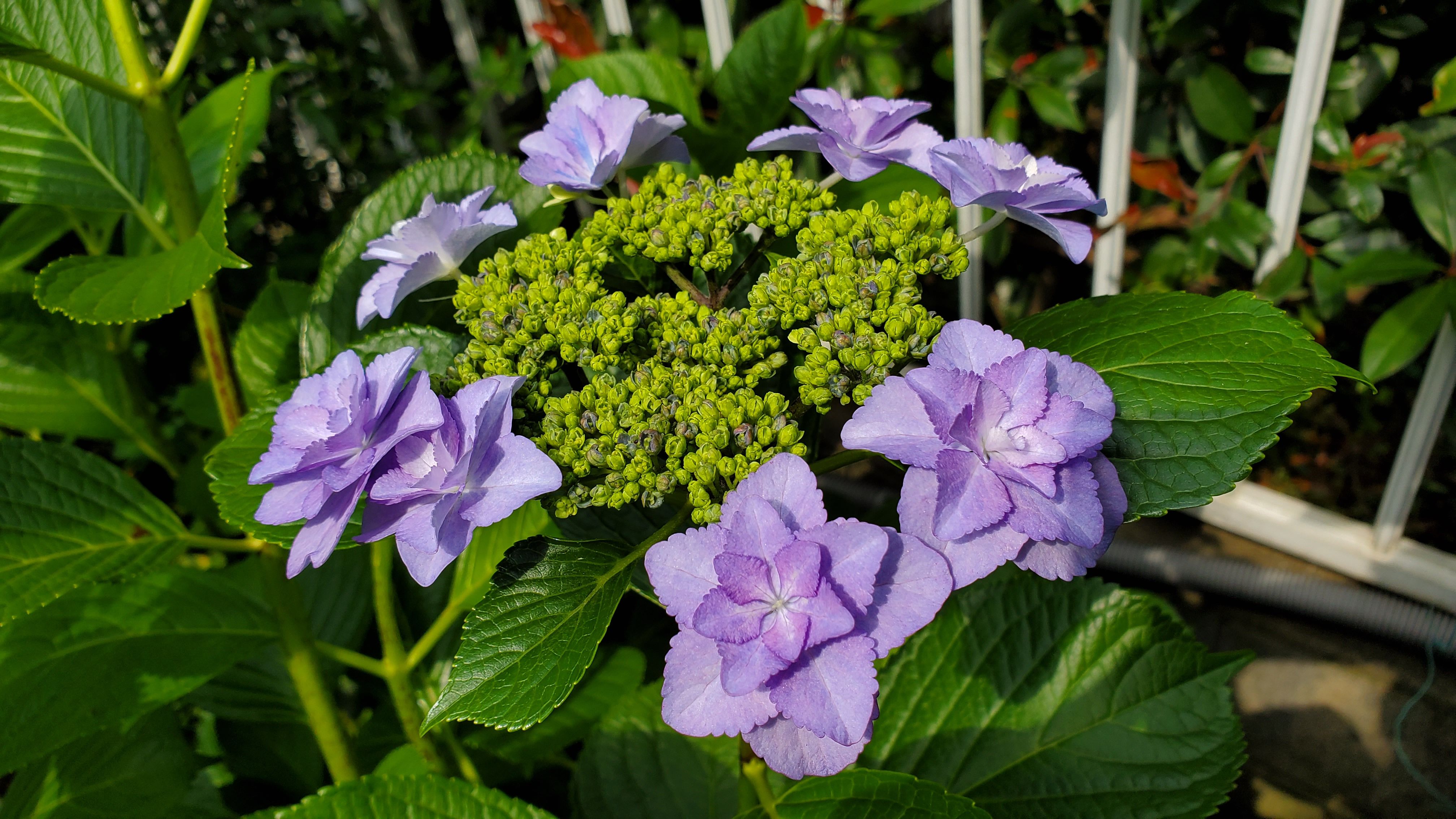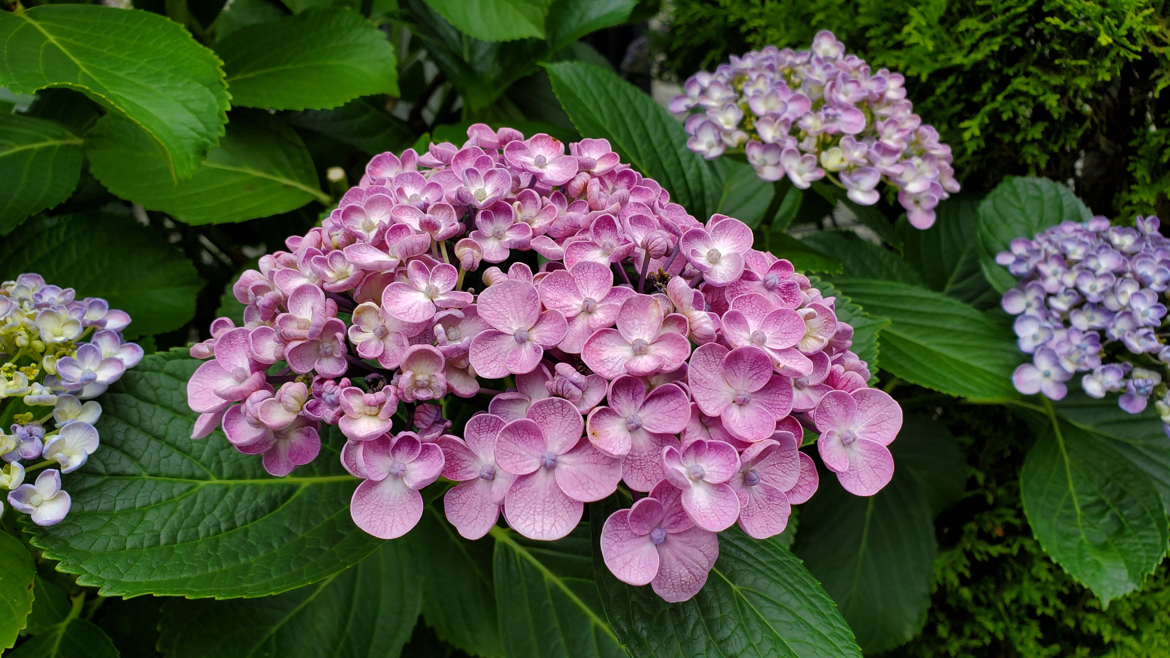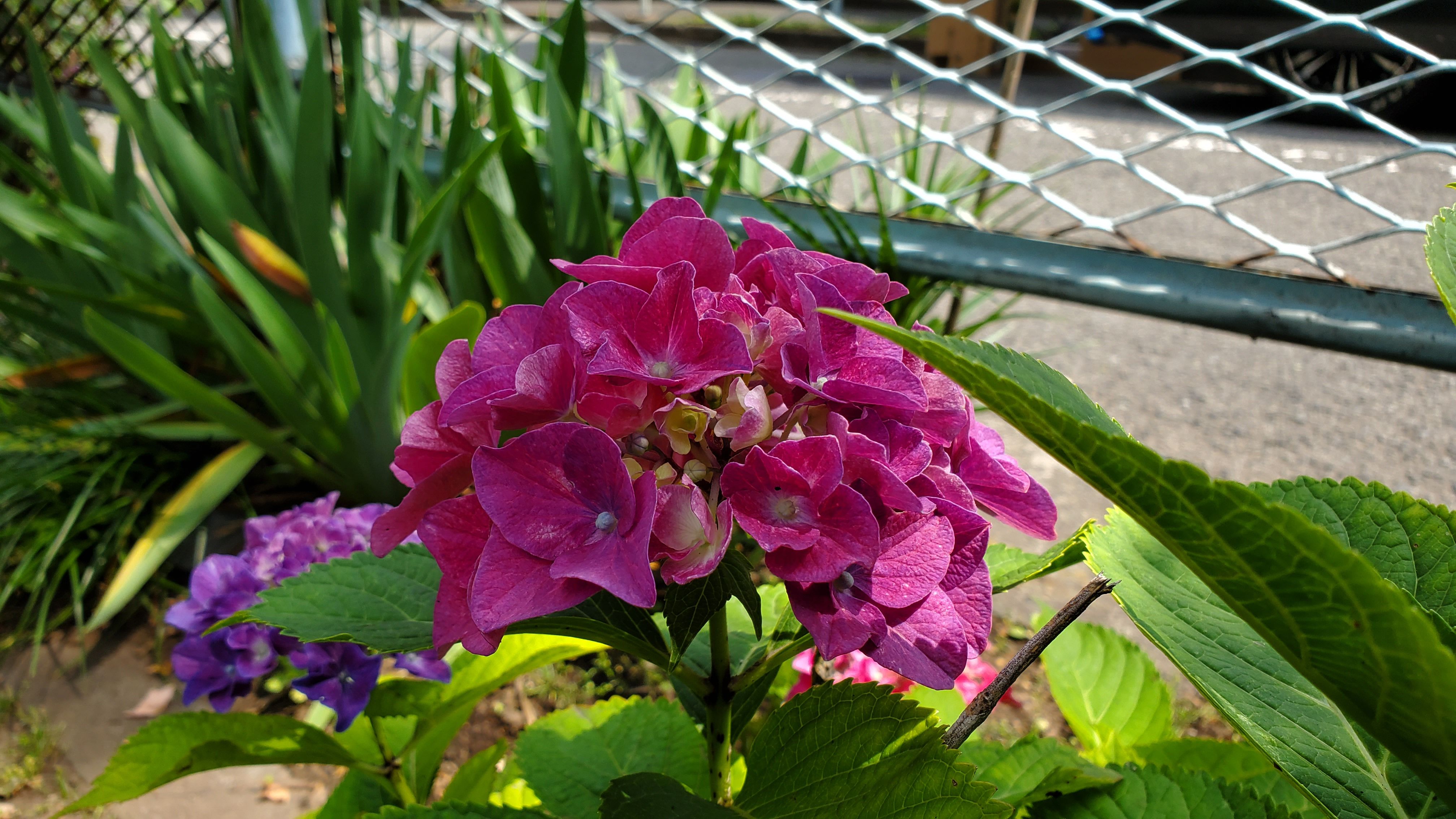 土のPH度合いによって花色を変えられる ​って去年勉強しましたが、元来それぞれの個体が持っている遺伝子によって発色が異なるのでしょう。ピンク系、ブルー系、紫系、どの花・萼片の色も微妙に違います。どの色も奇麗なので、ついつい立ち止まってしまう私でした。