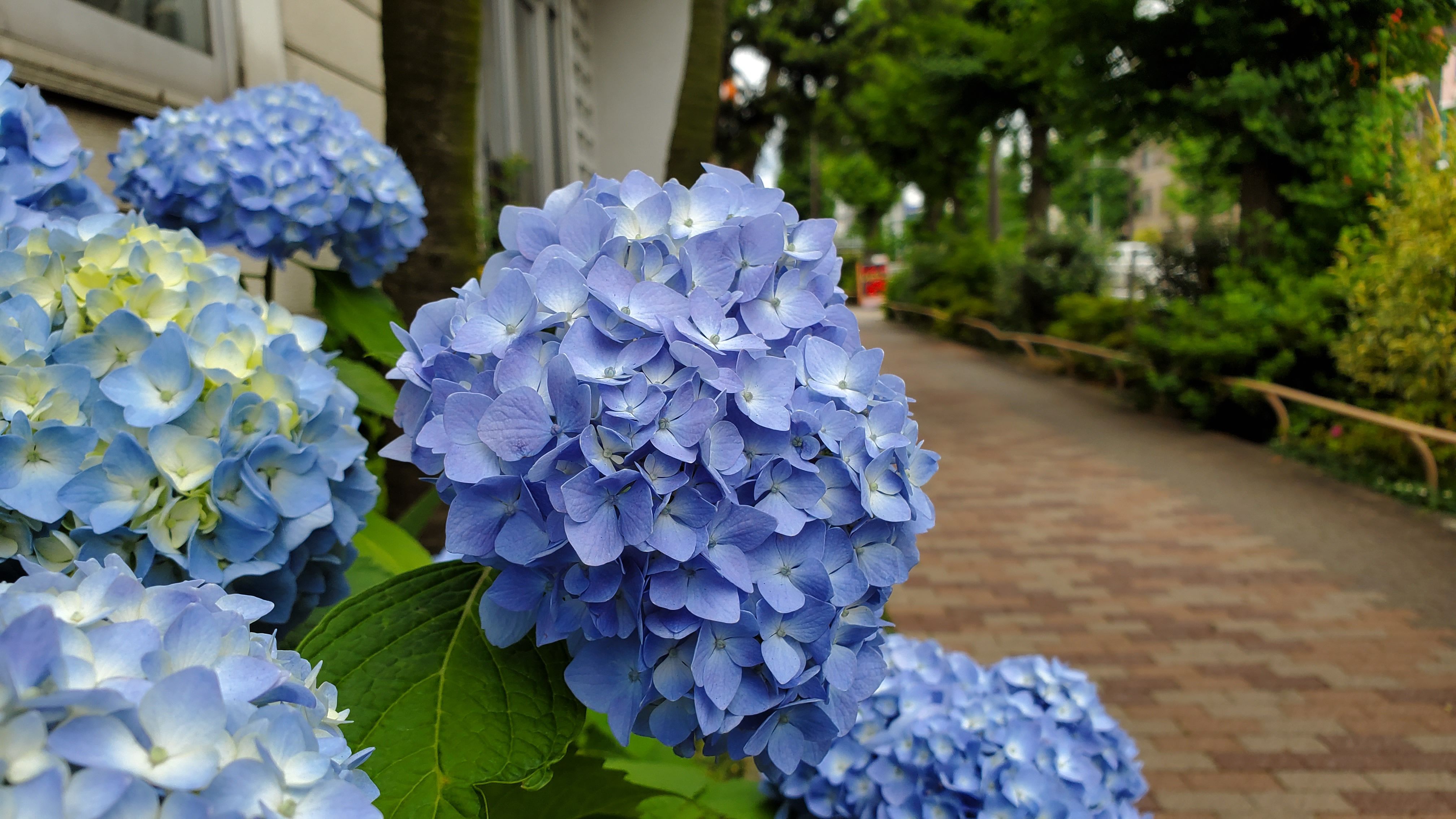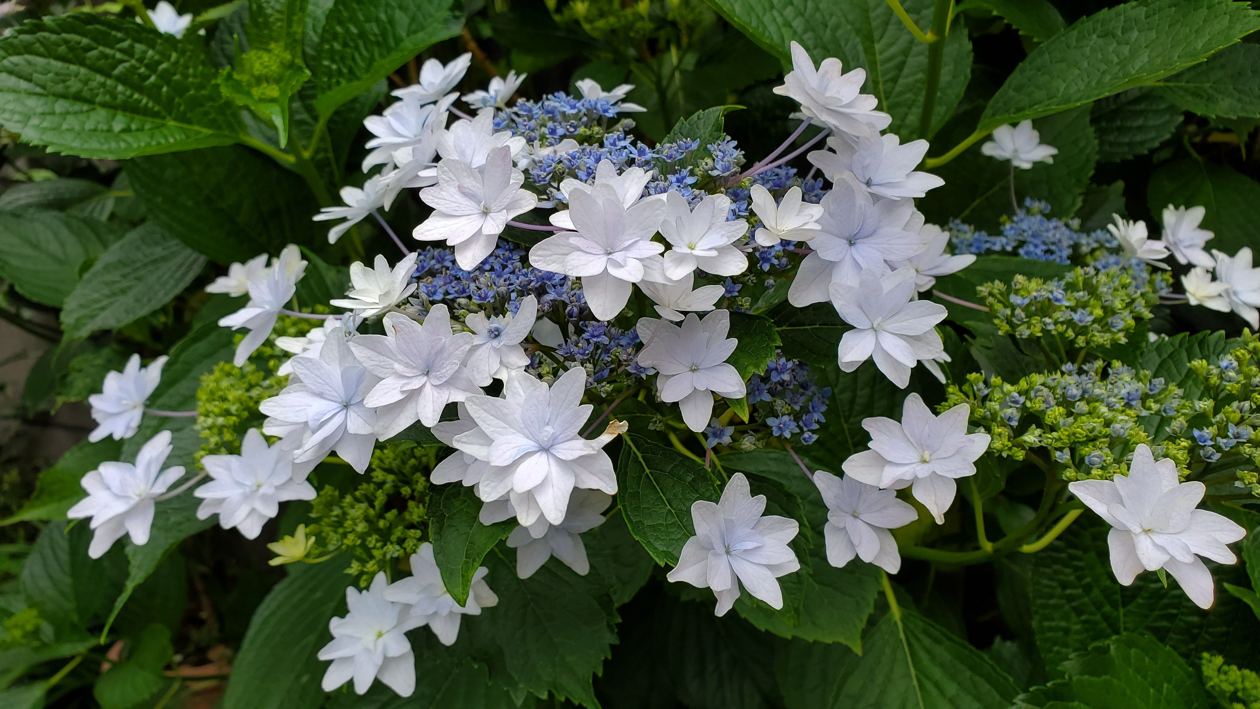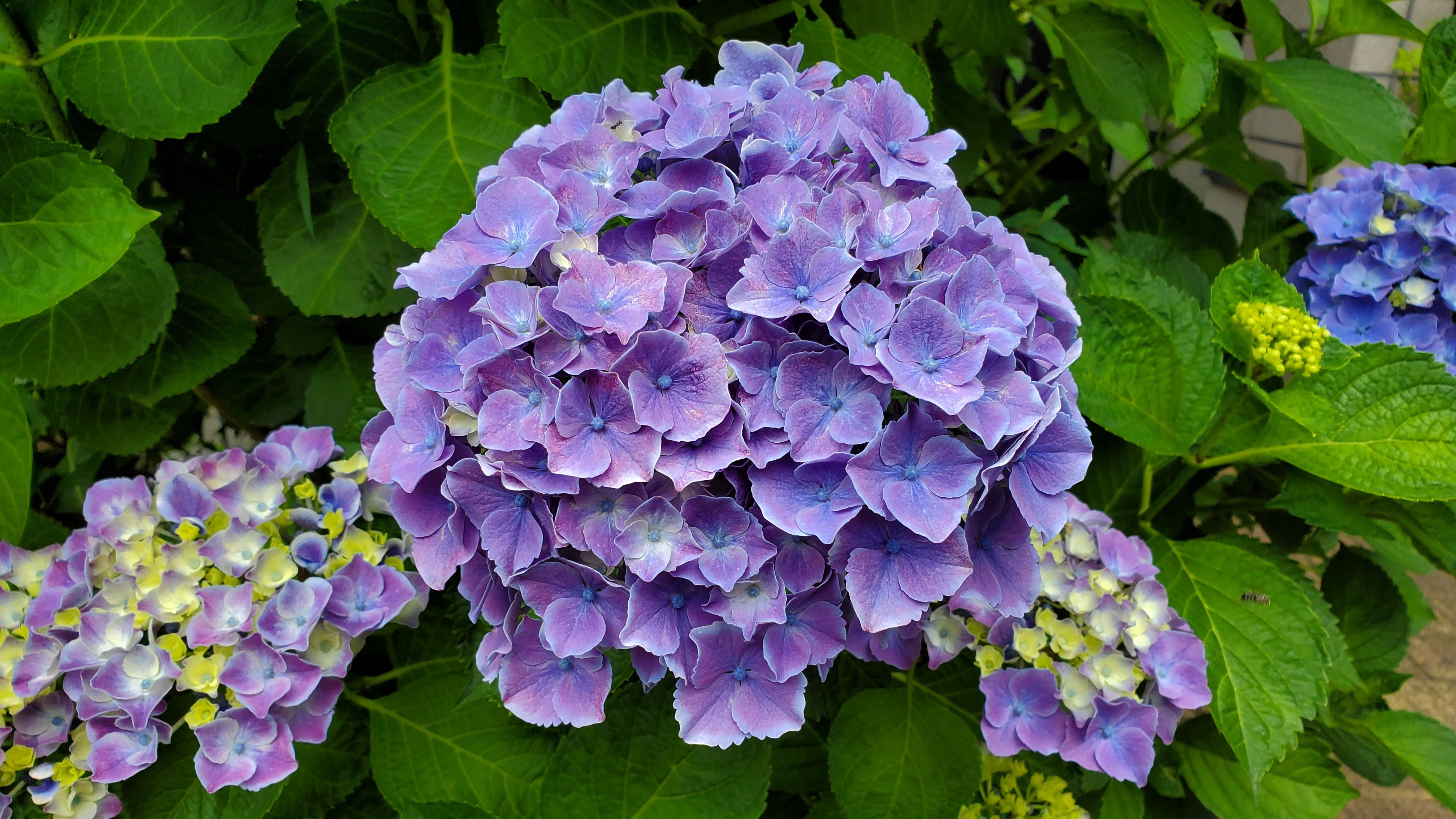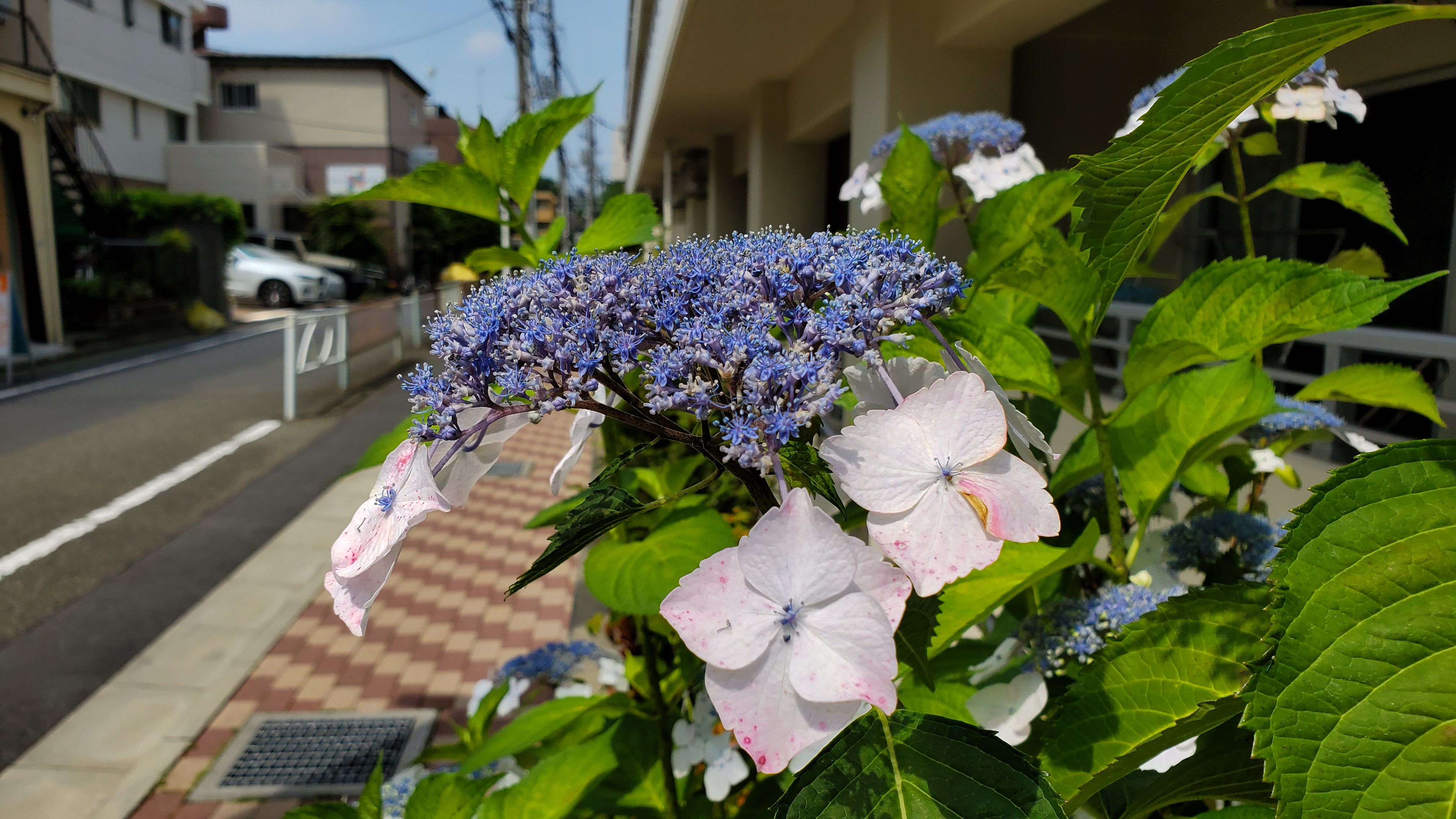 土のPH度合いによって花色を変えられる ​って去年勉強しましたが、元来それぞれの個体が持っている遺伝子によって発色が異なるのでしょう。ピンク系、ブルー系、紫系、どの花・萼片の色も微妙に違います。どの色も奇麗なので、ついつい立ち止まってしまう私でした。