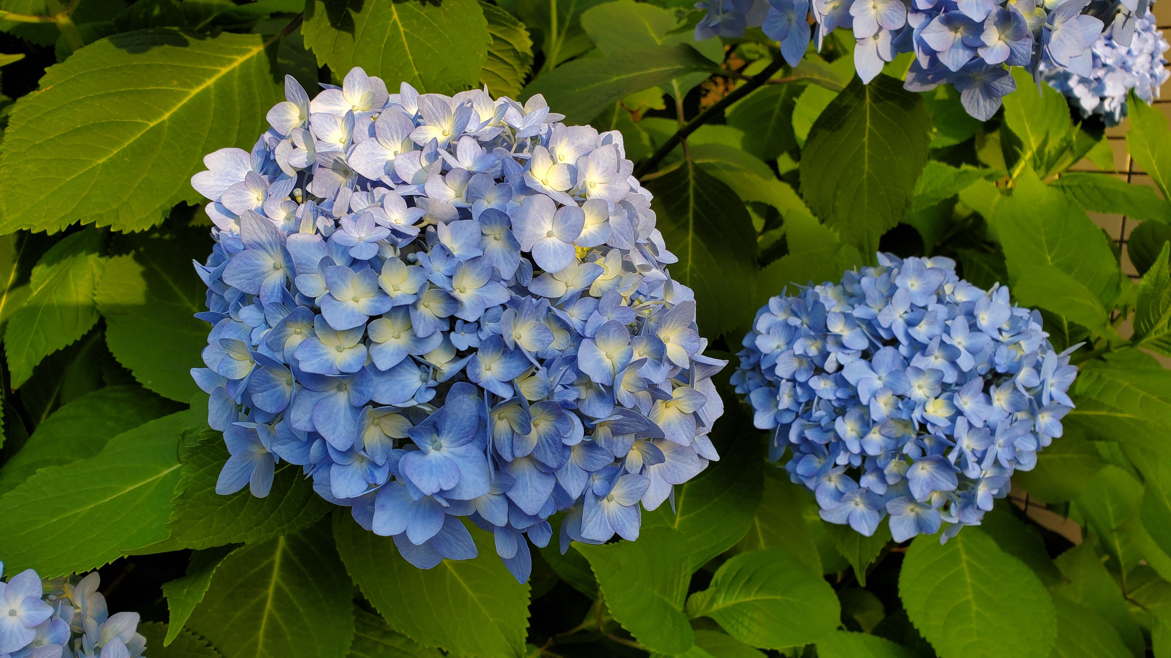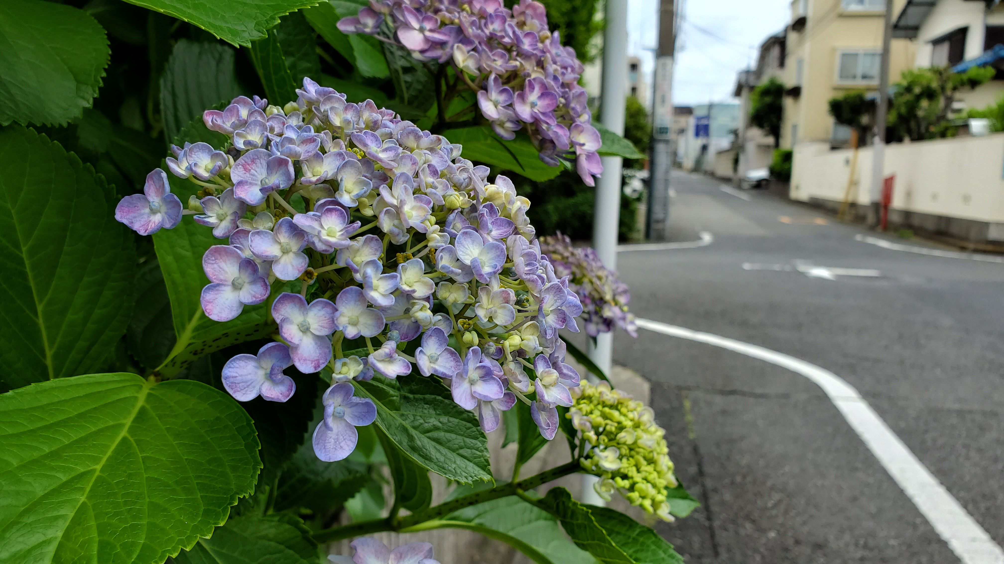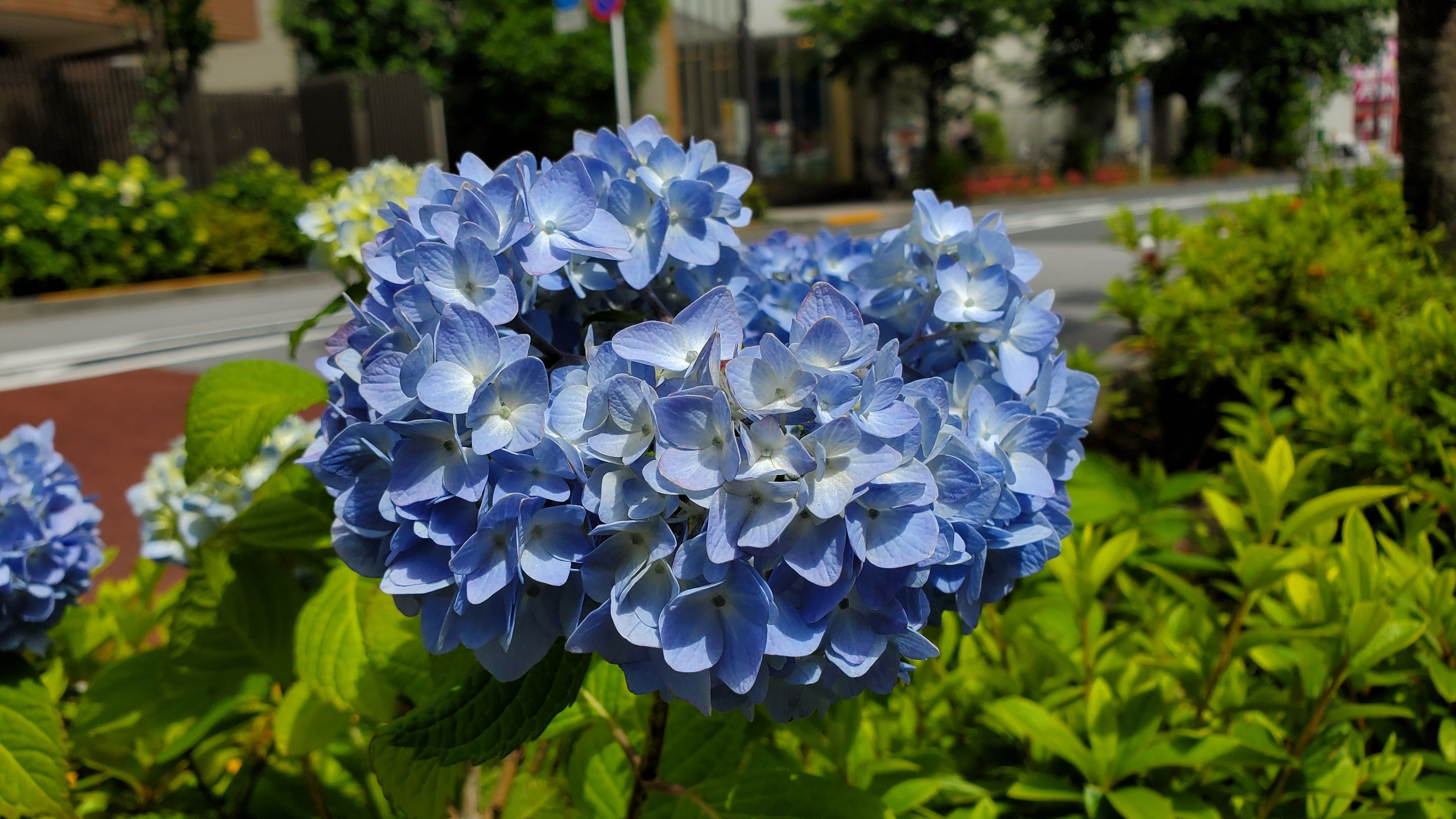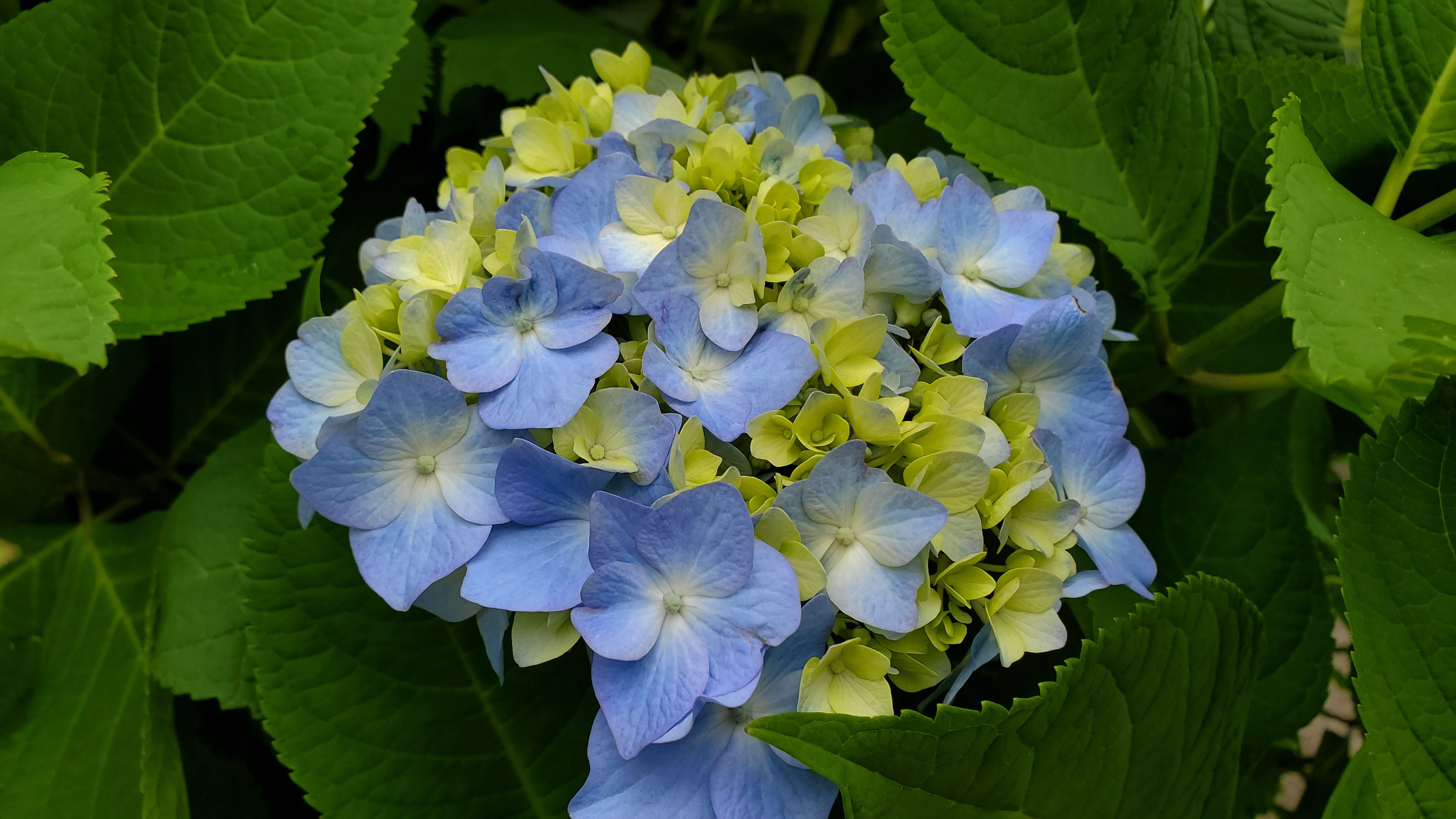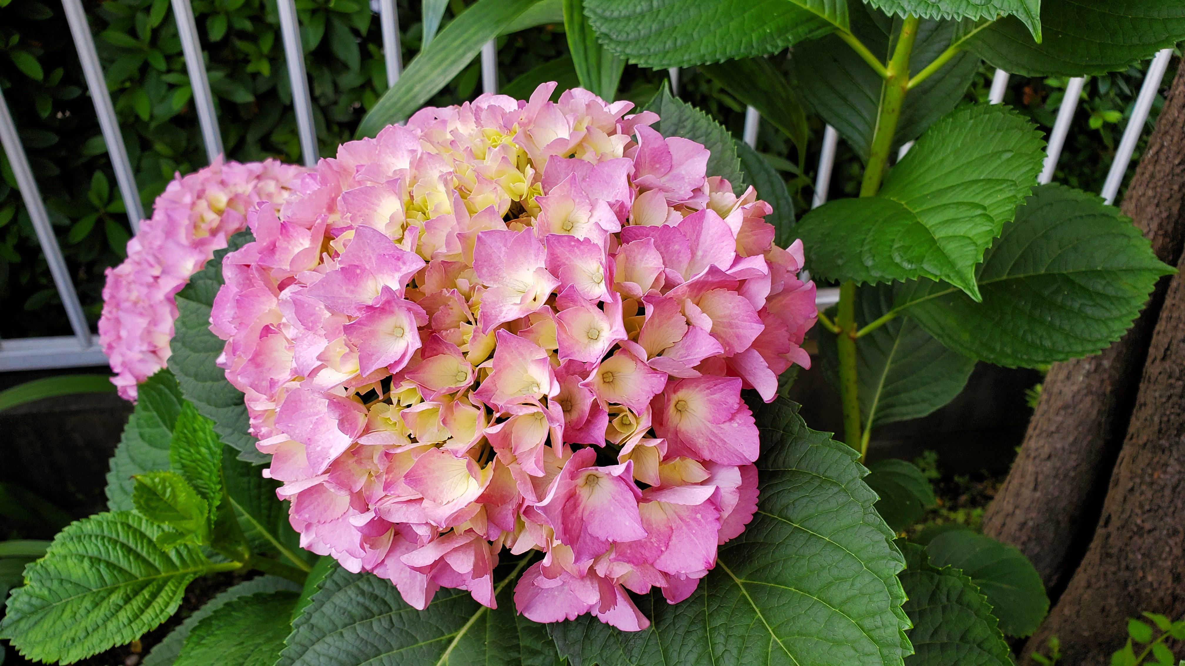 土のPH度合いによって花色を変えられる ​って去年勉強しましたが、元来それぞれの個体が持っている遺伝子によって発色が異なるのでしょう。ピンク系、ブルー系、紫系、どの花・萼片の色も微妙に違います。どの色も奇麗なので、ついつい立ち止まってしまう私でした。