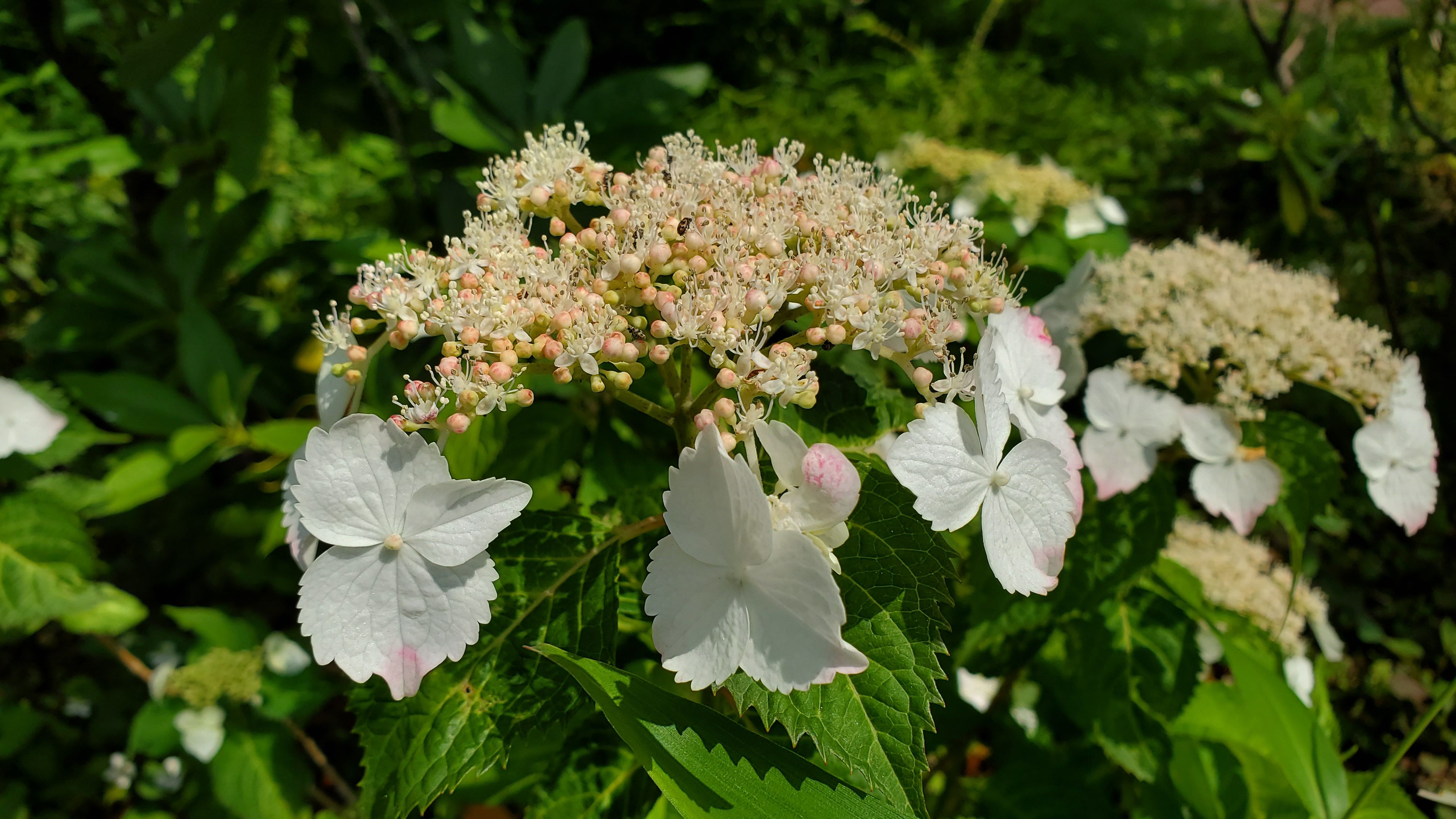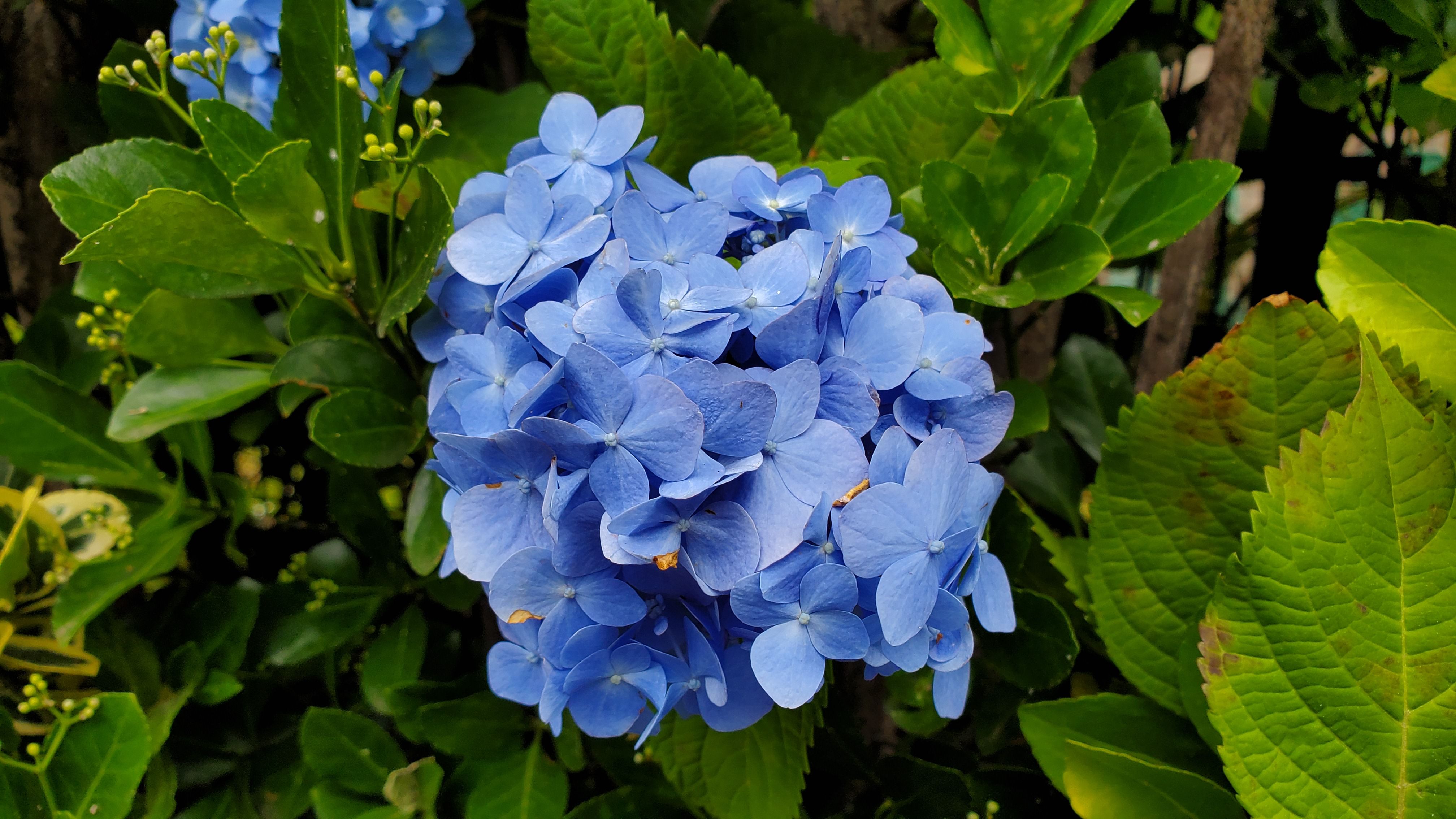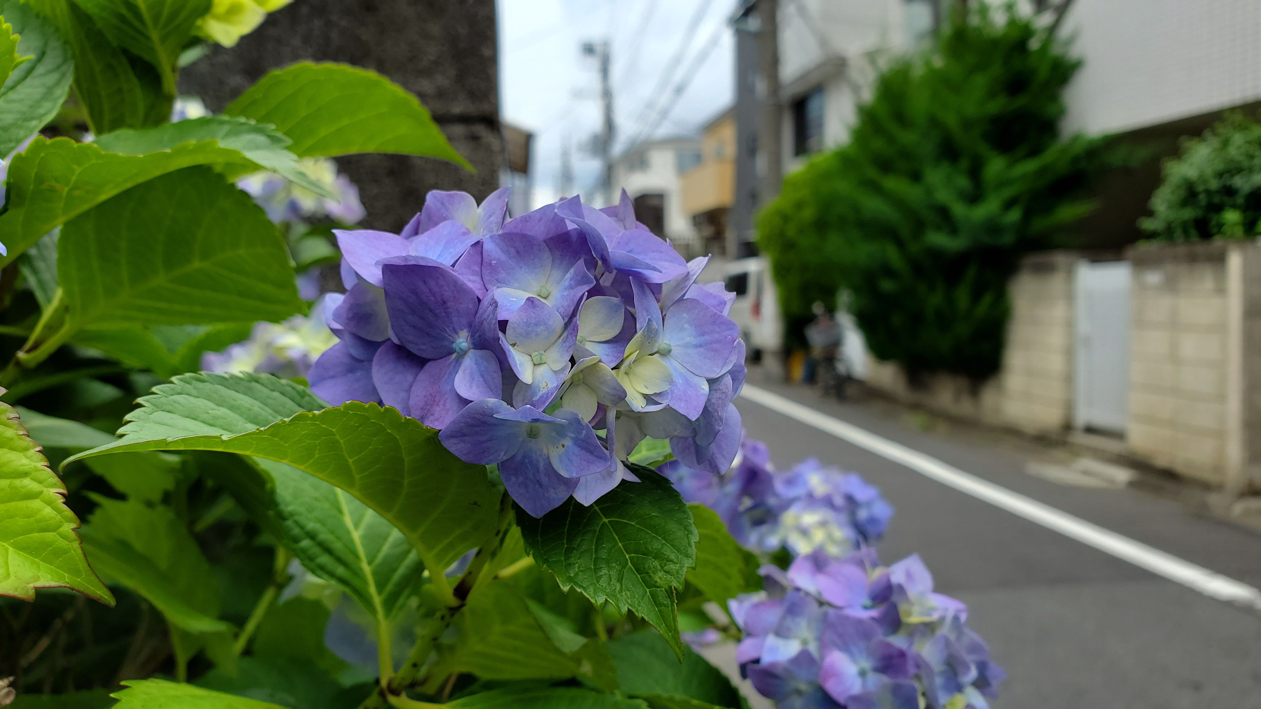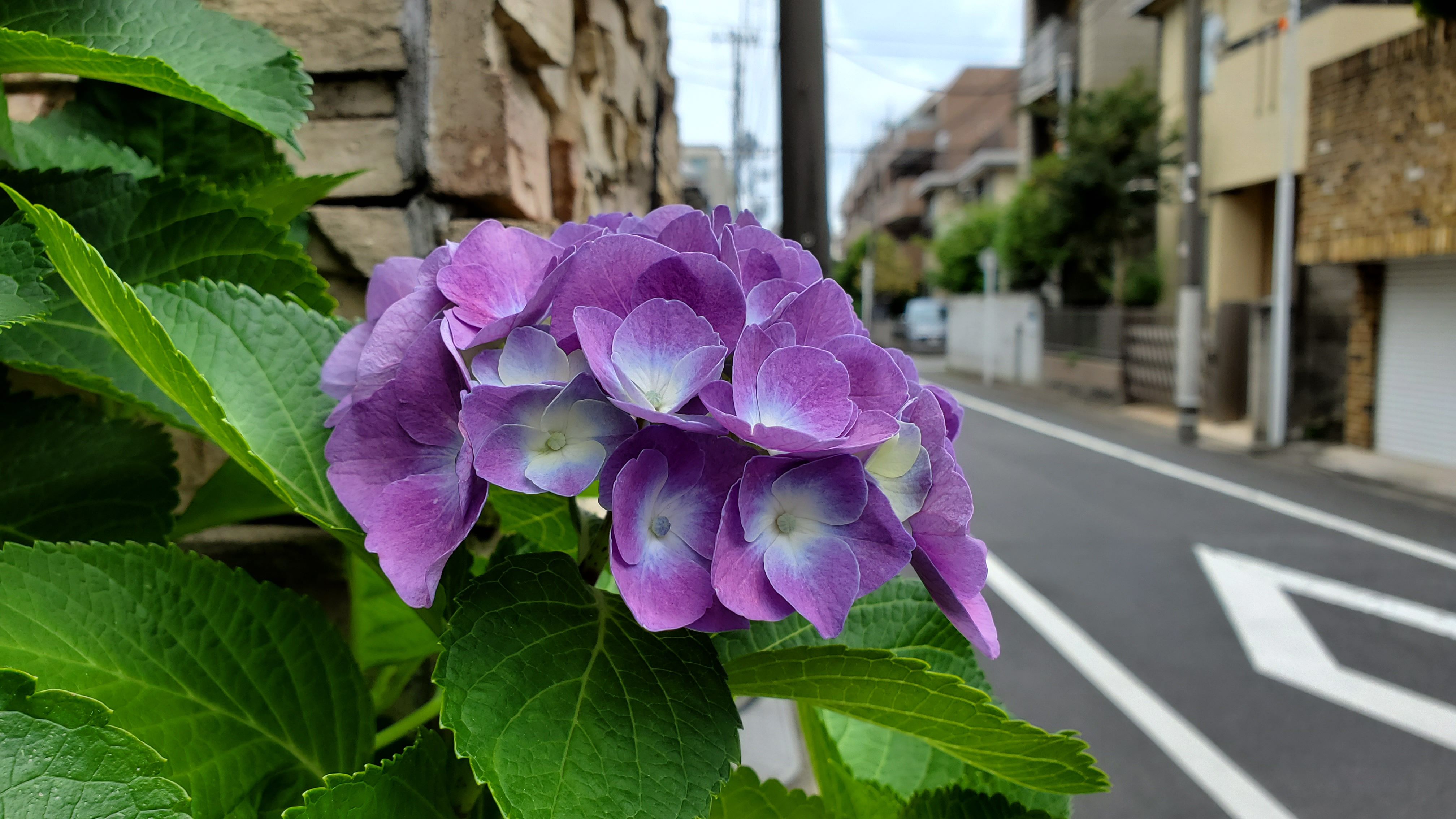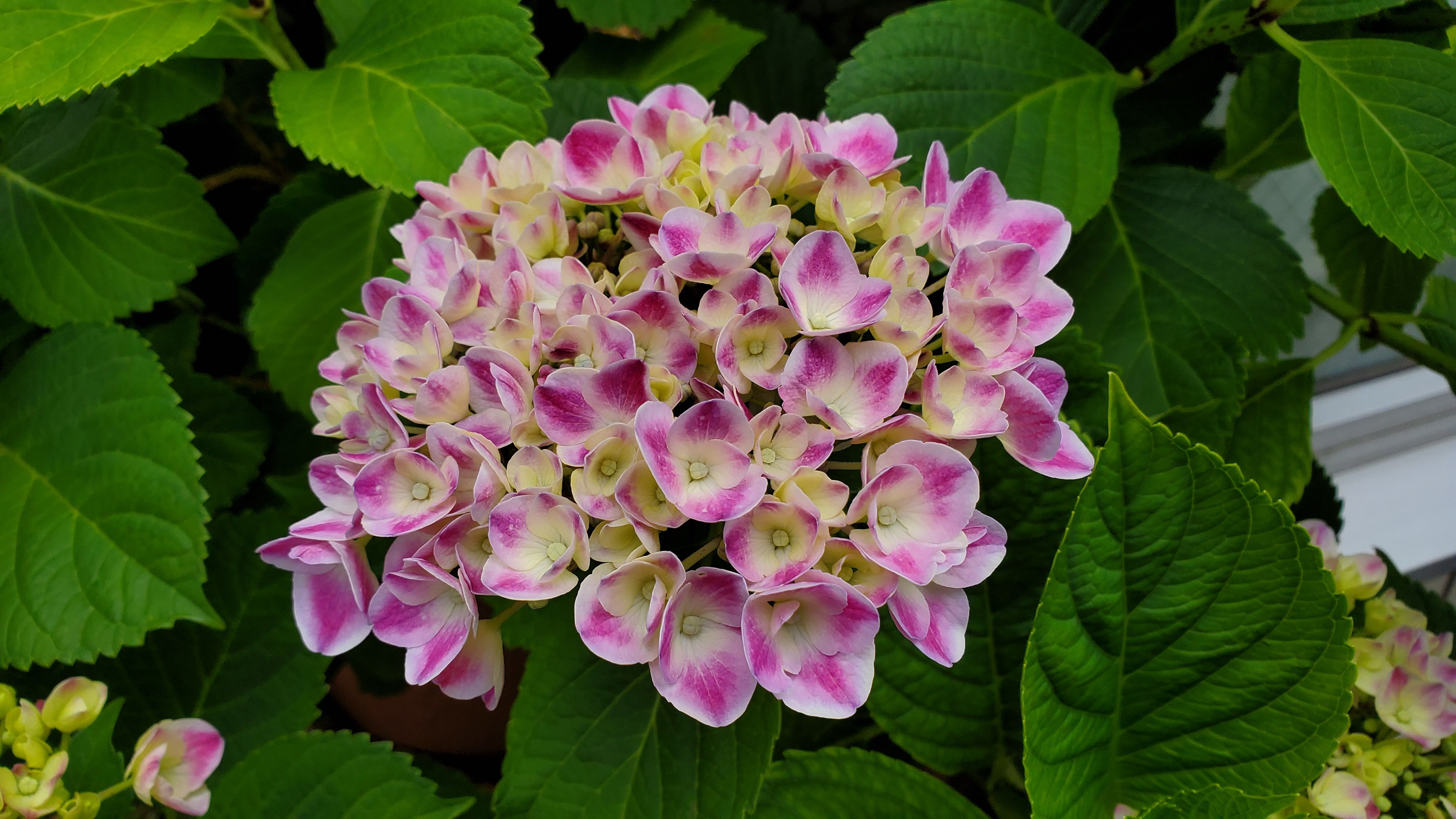 土のPH度合いによって花色を変えられる ​って去年勉強しましたが、元来それぞれの個体が持っている遺伝子によって発色が異なるのでしょう。ピンク系、ブルー系、紫系、どの花・萼片の色も微妙に違います。どの色も奇麗なので、ついつい立ち止まってしまう私でした。