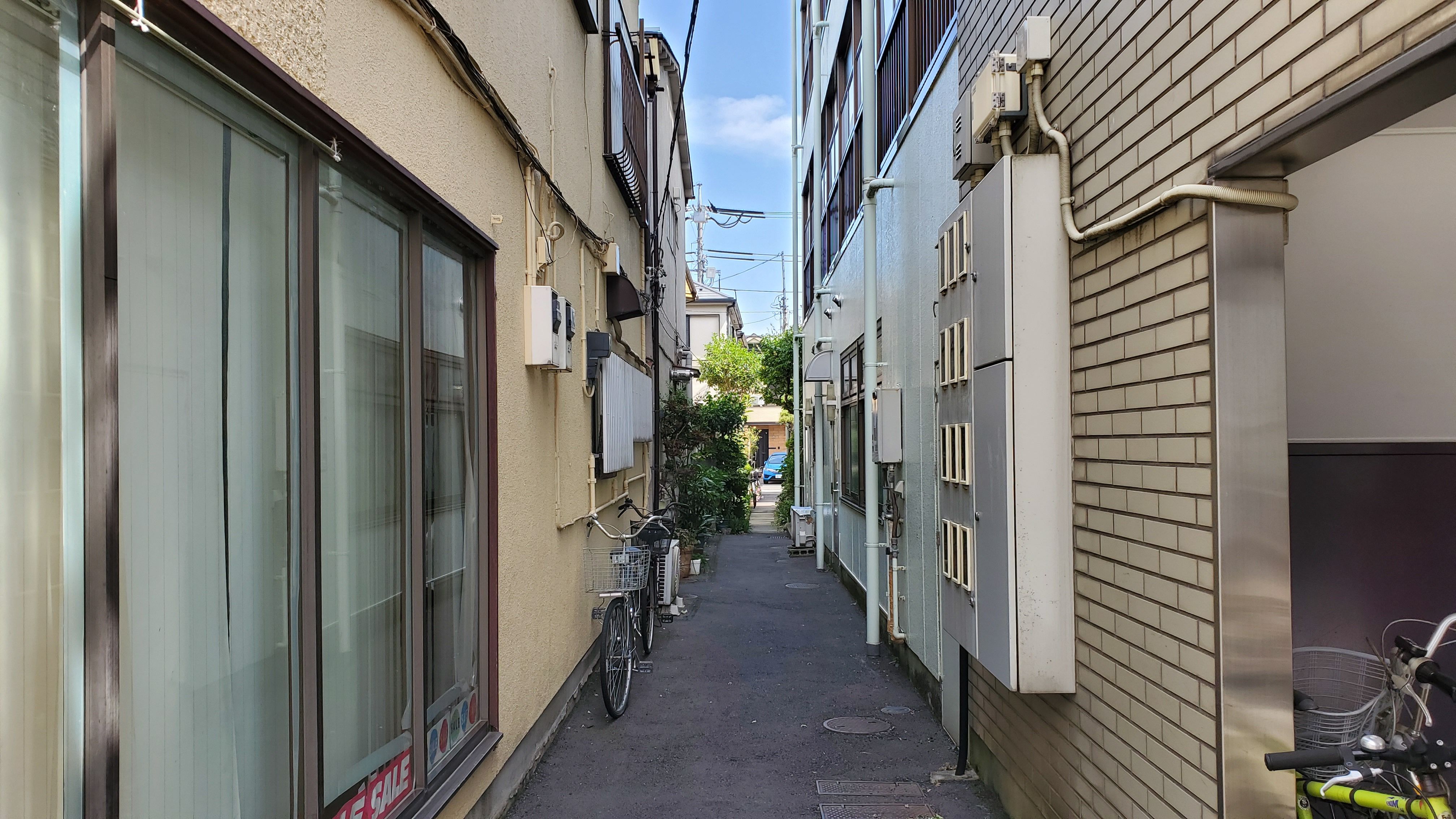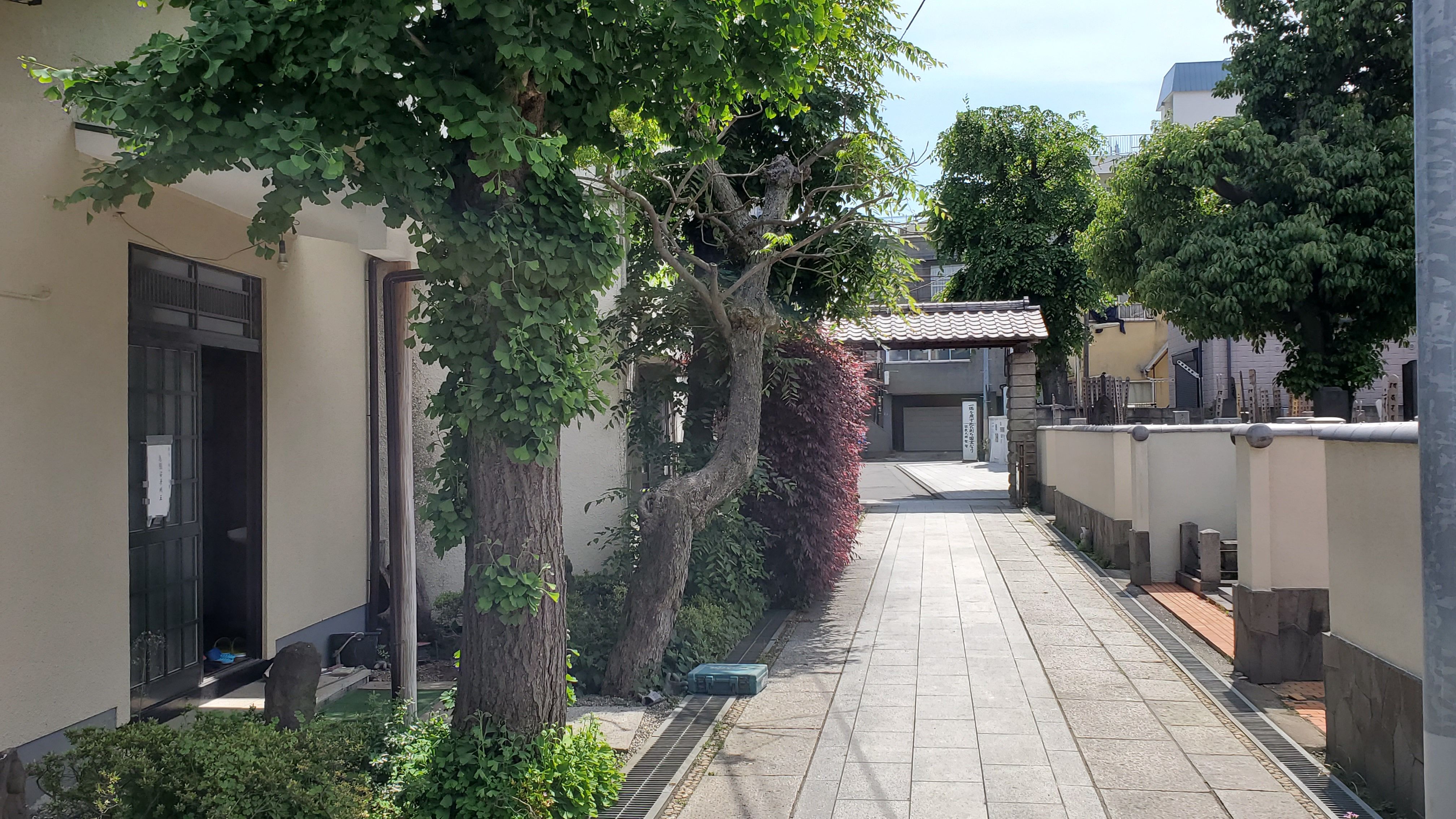 三間通り……東光寺は右の建物の後ろ。ちなみに、この道を反対方向に歩けば蛇窪神社脇の商店街・蛇窪共栄会に行かれます。道がつながって良かった~