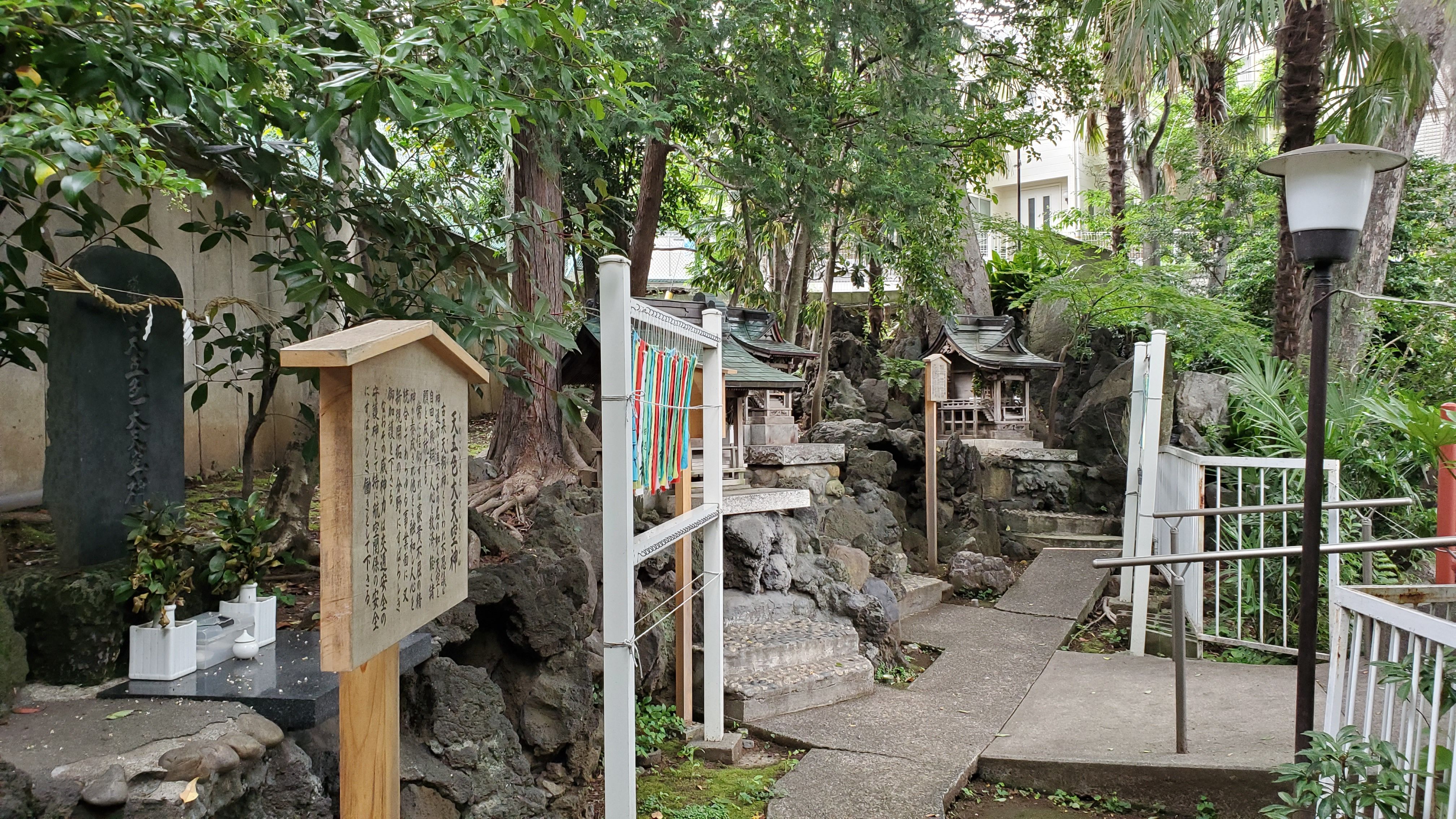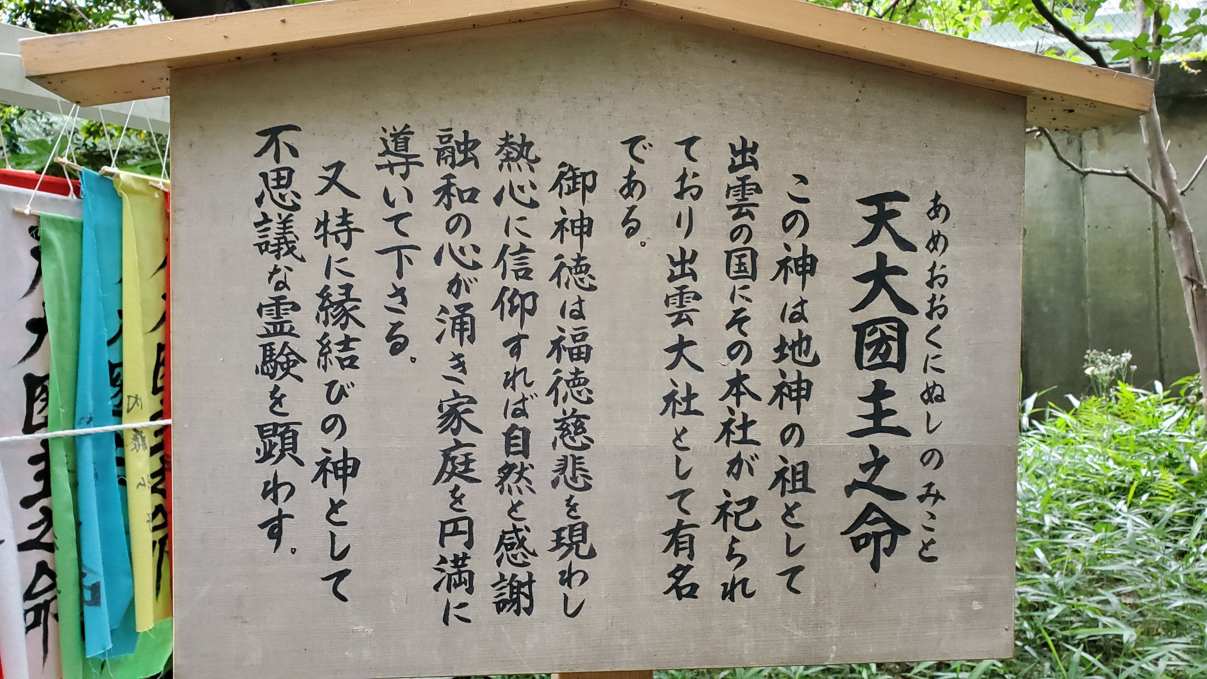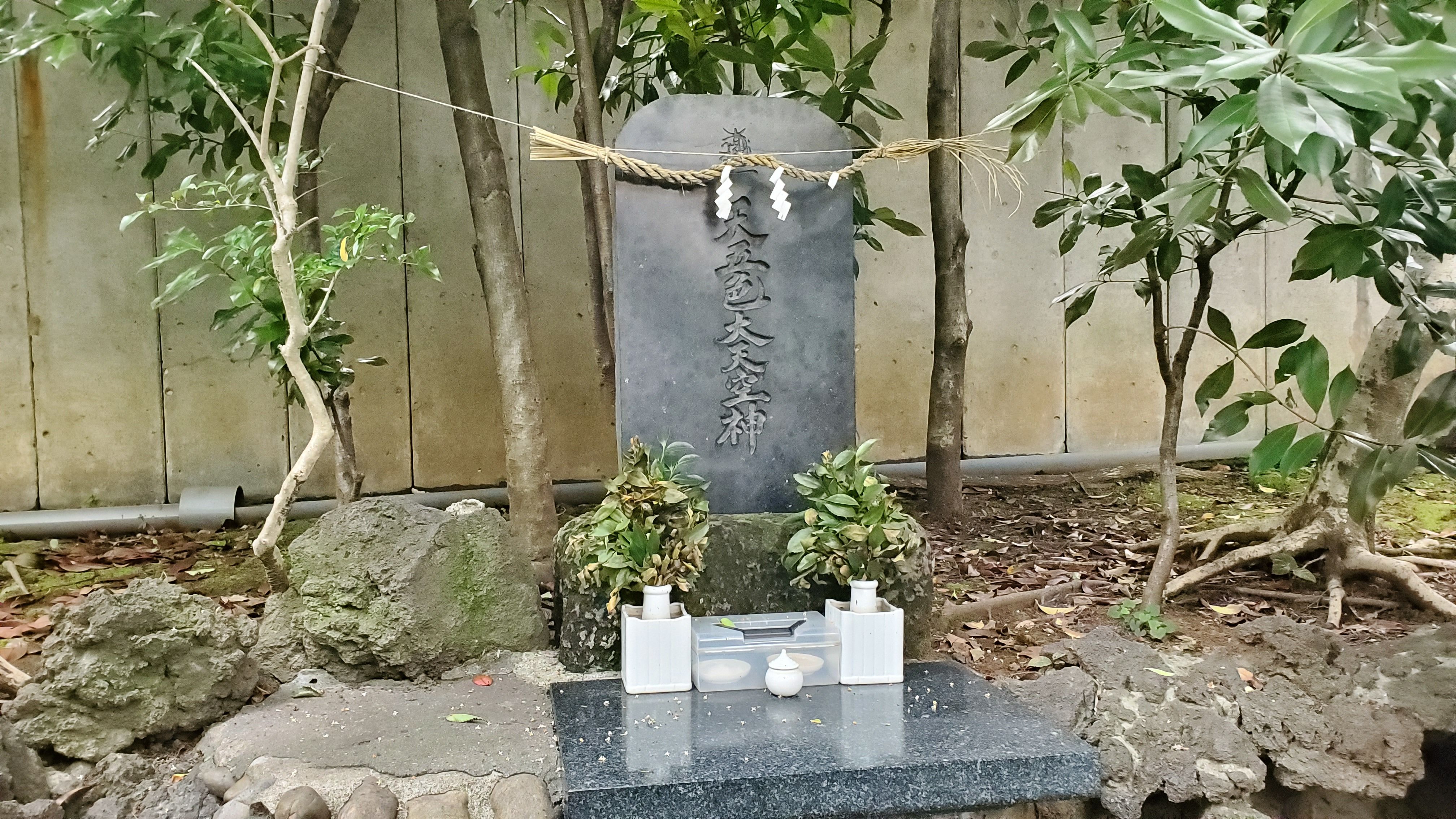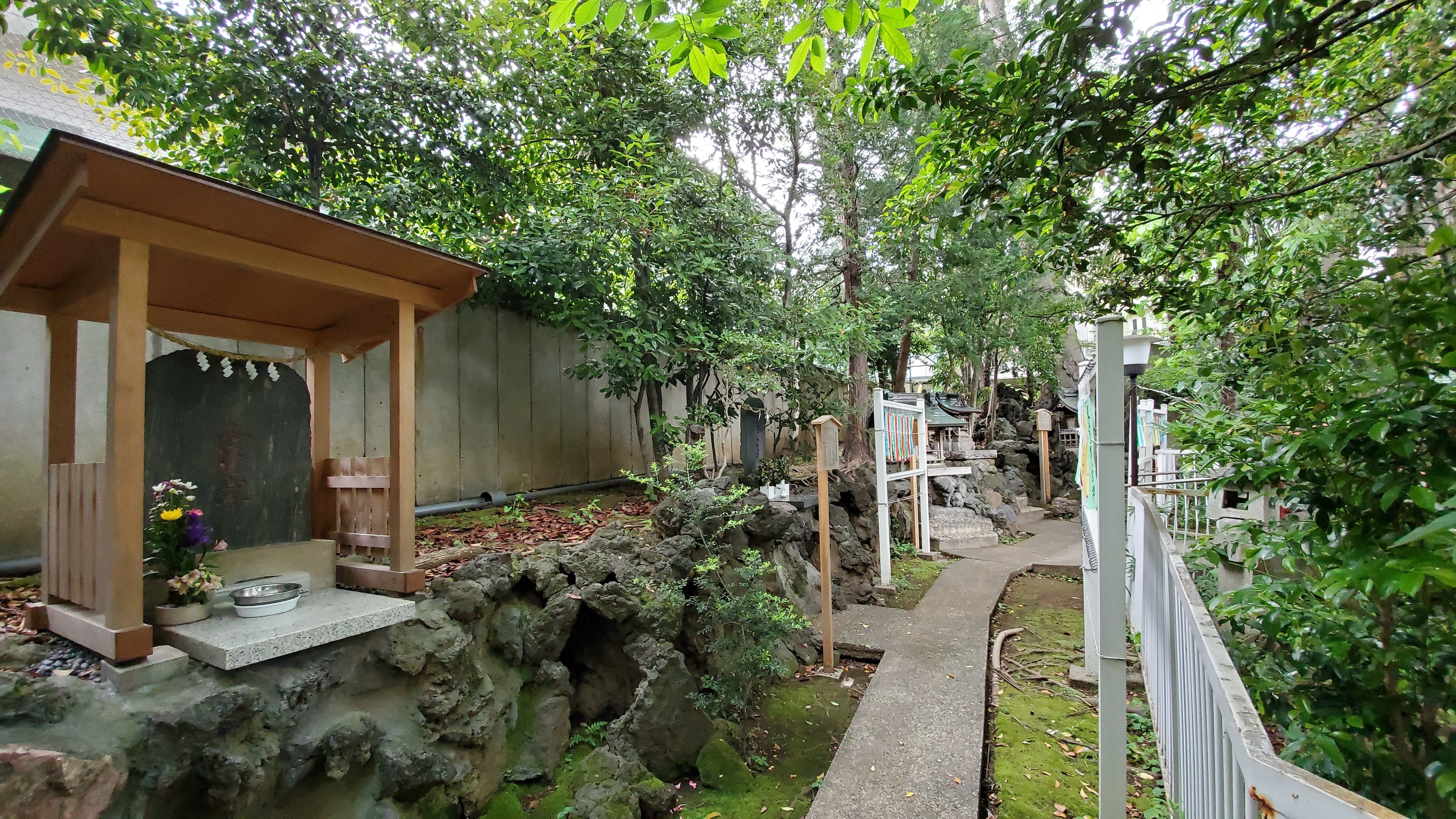 天大国主之命……境内西側に複数の祠や石碑が並んでいます。