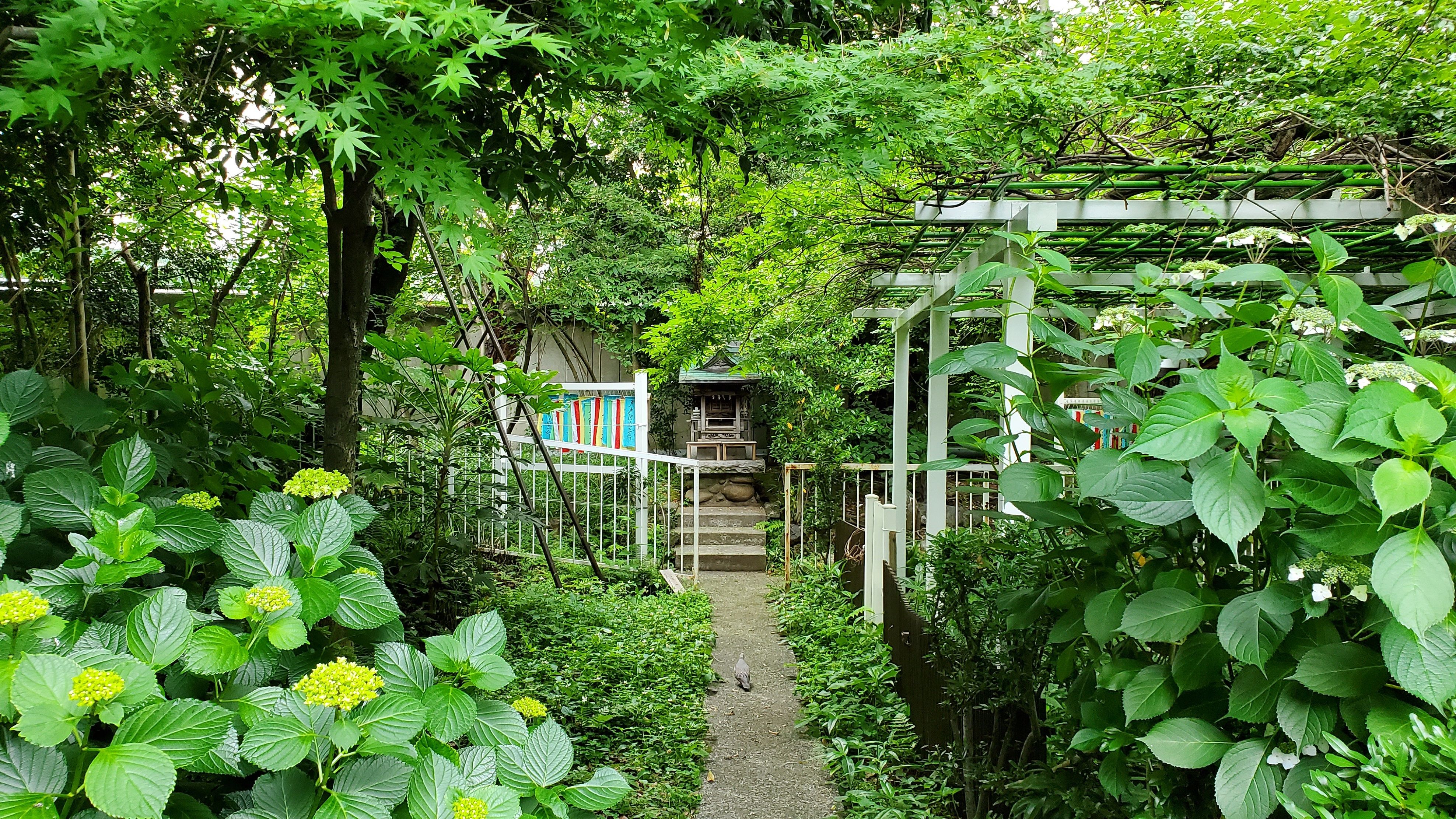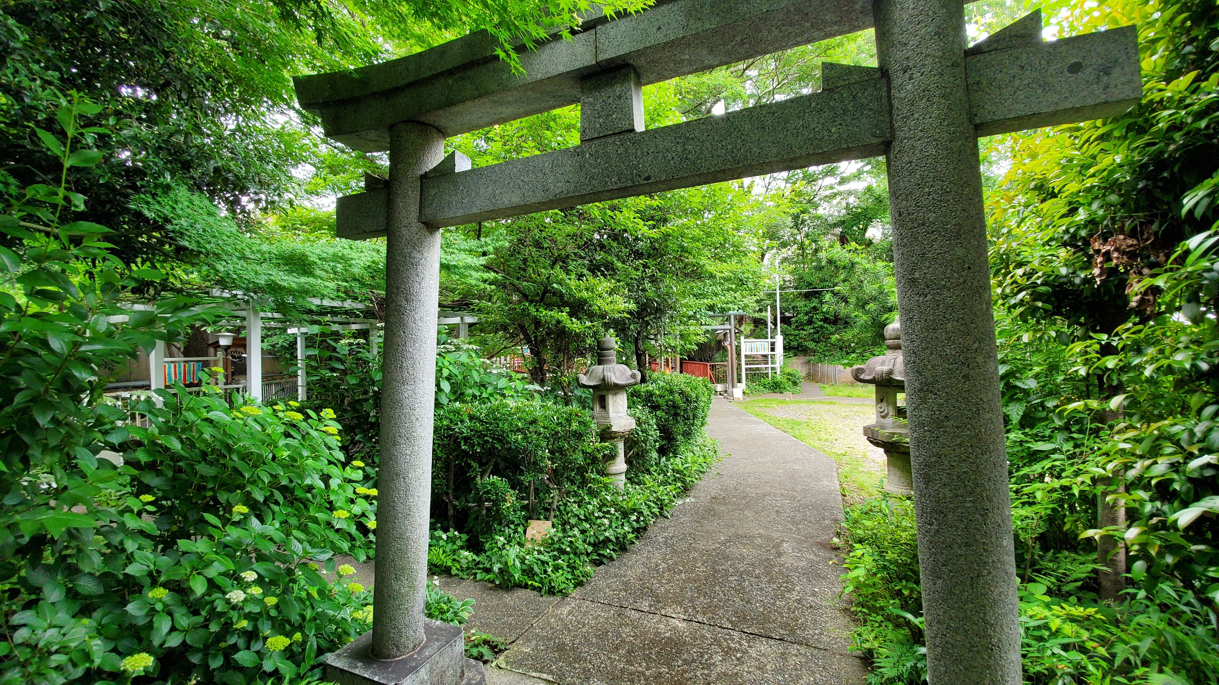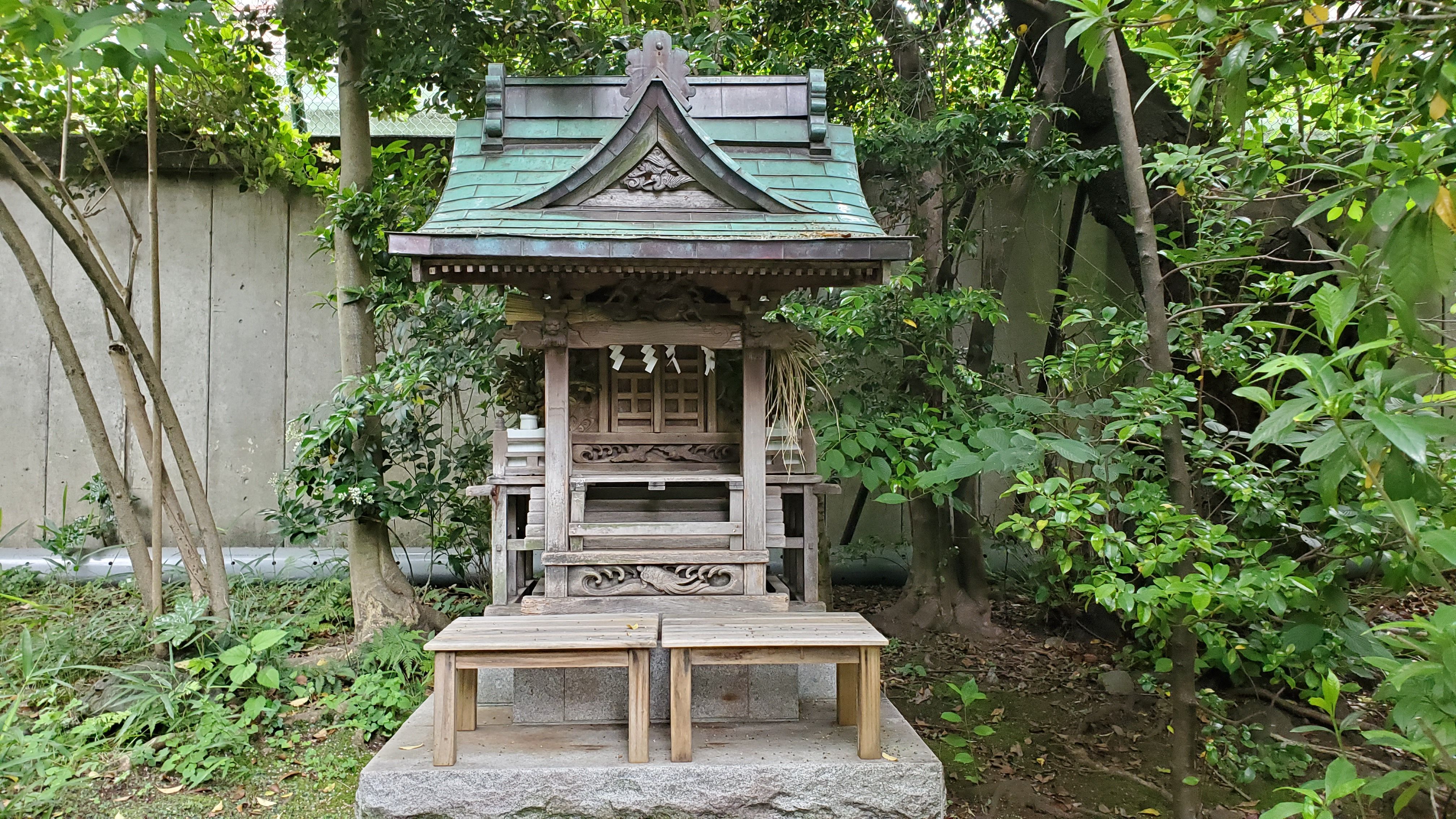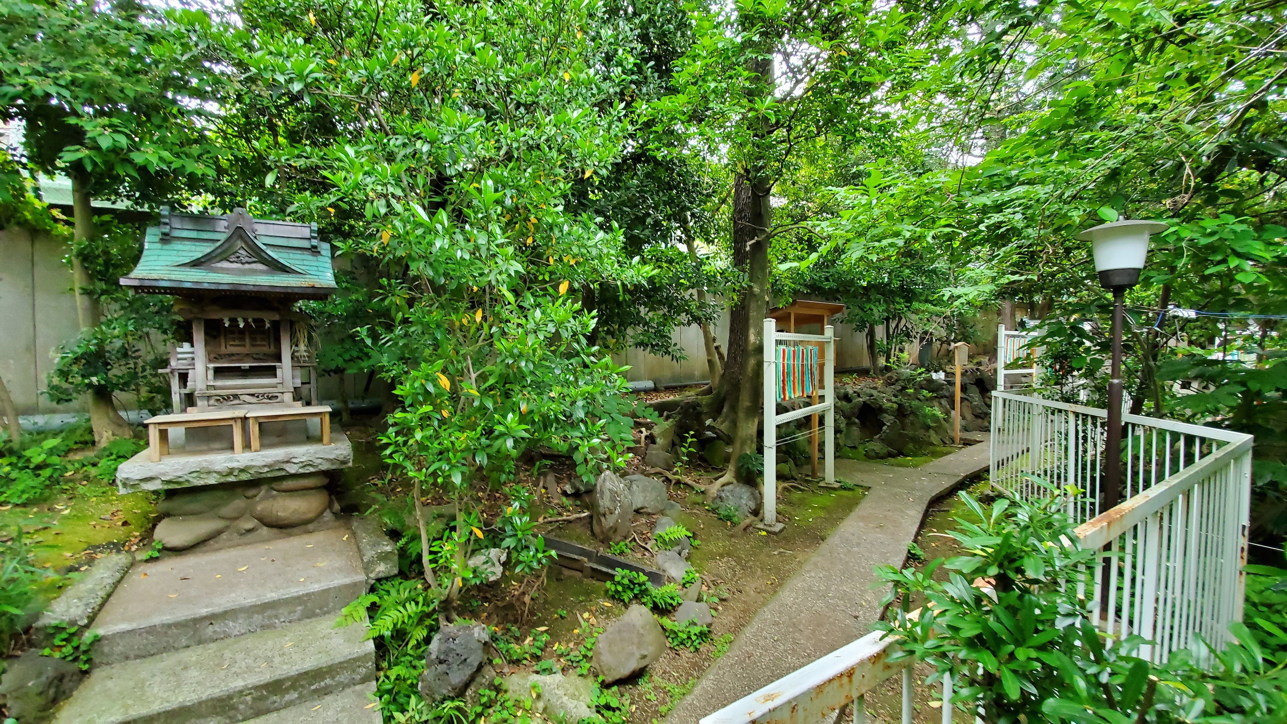 天大国主之命……境内西側に複数の祠や石碑が並んでいます。