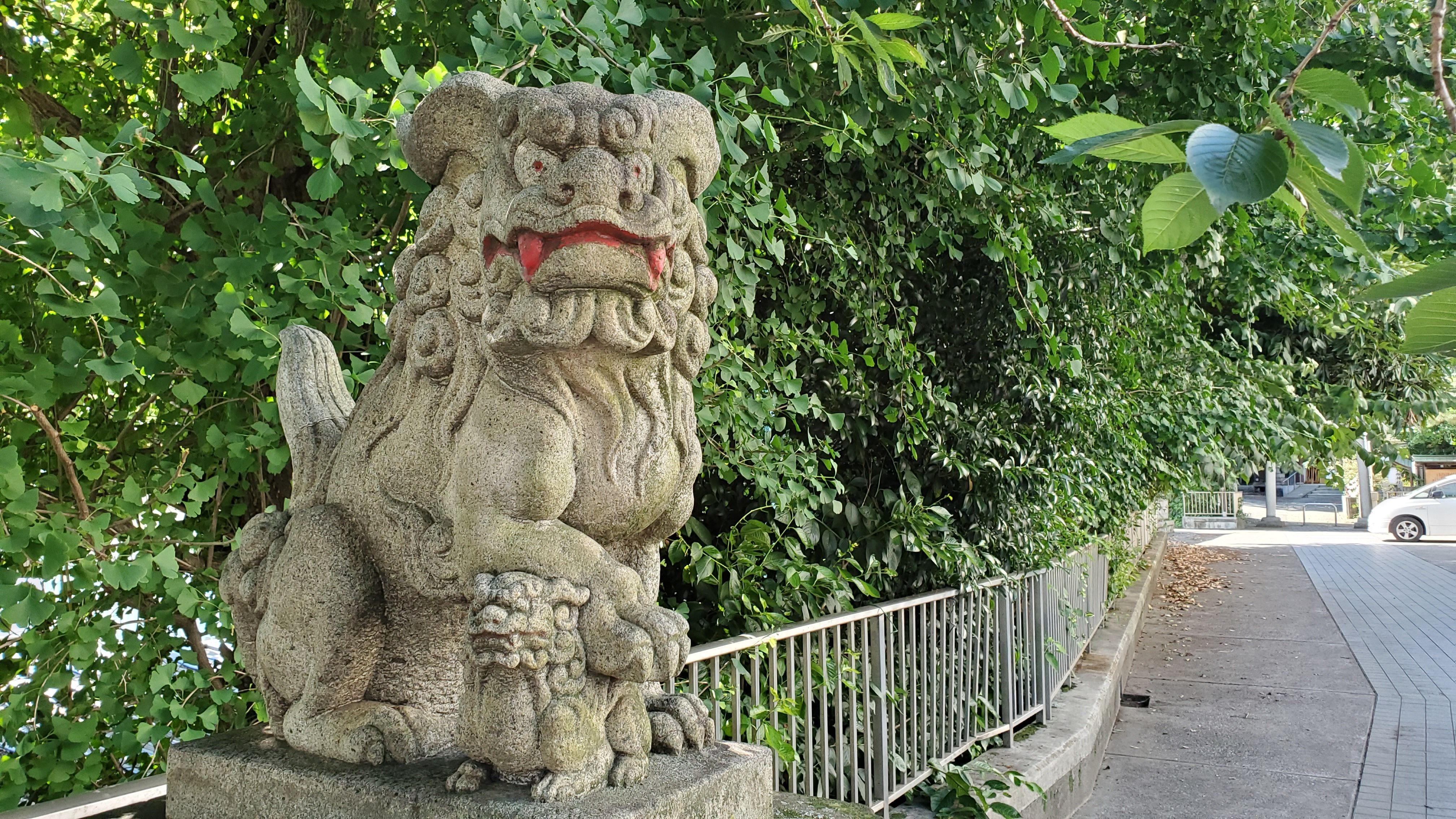 社殿前に居ないと思ったら、やっぱりおいででした。子連れは阿形で、右に多く見られますが当社は反対みたい。