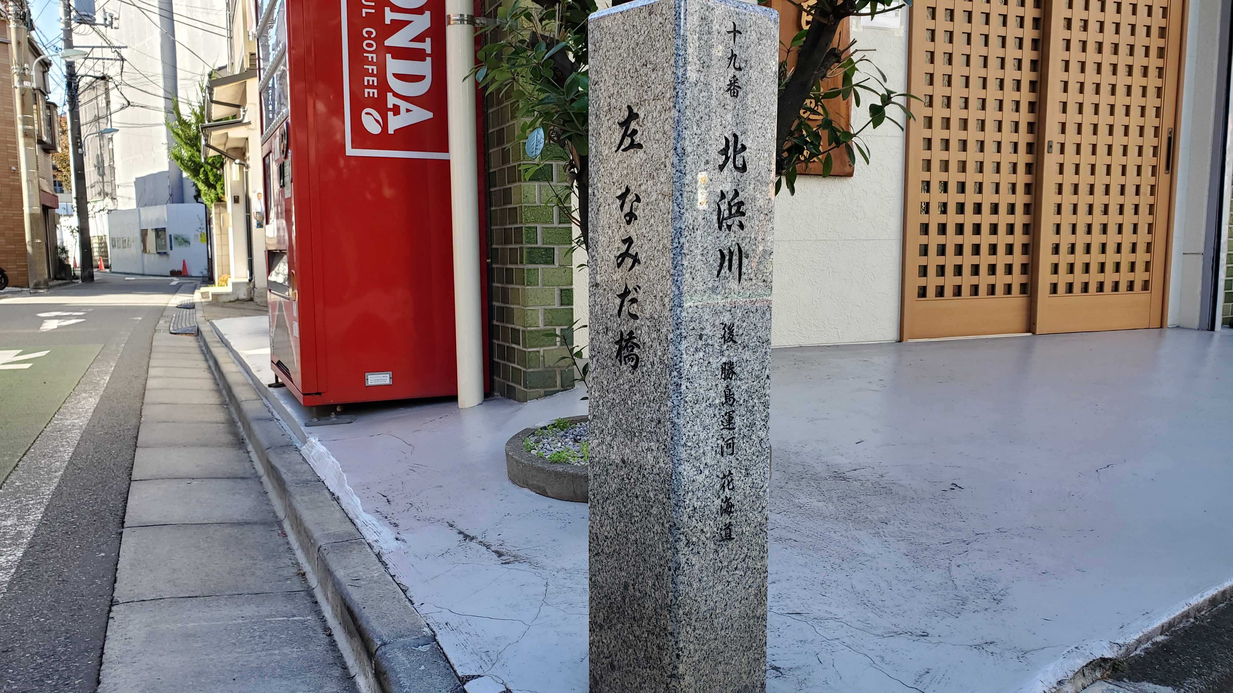 道標……「19番」だって。「北濱川」ってのは昔の地名。「なみだ橋」はこの後渡りましたが、今は逆に「浜川橋」の名前を残しています。