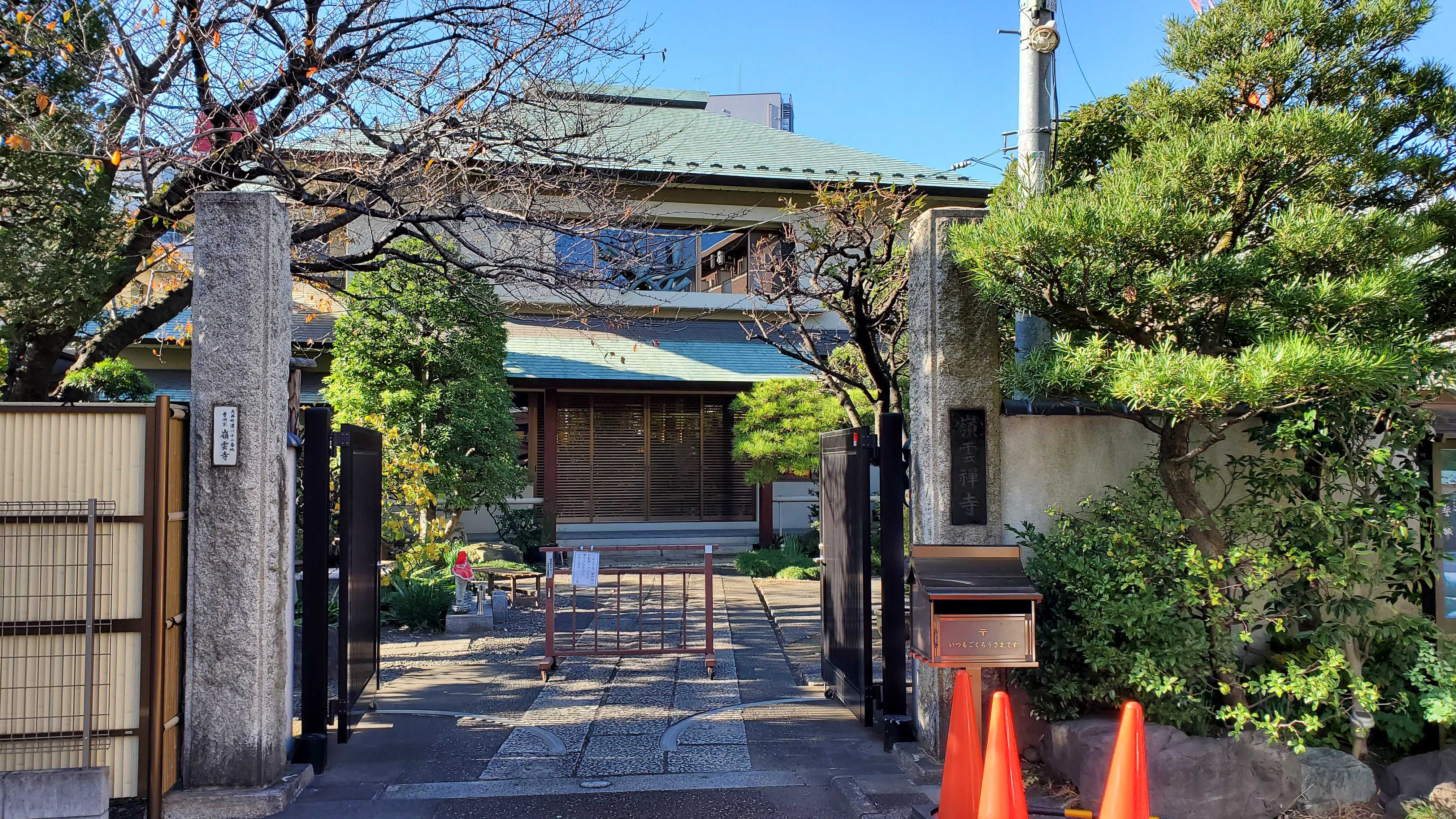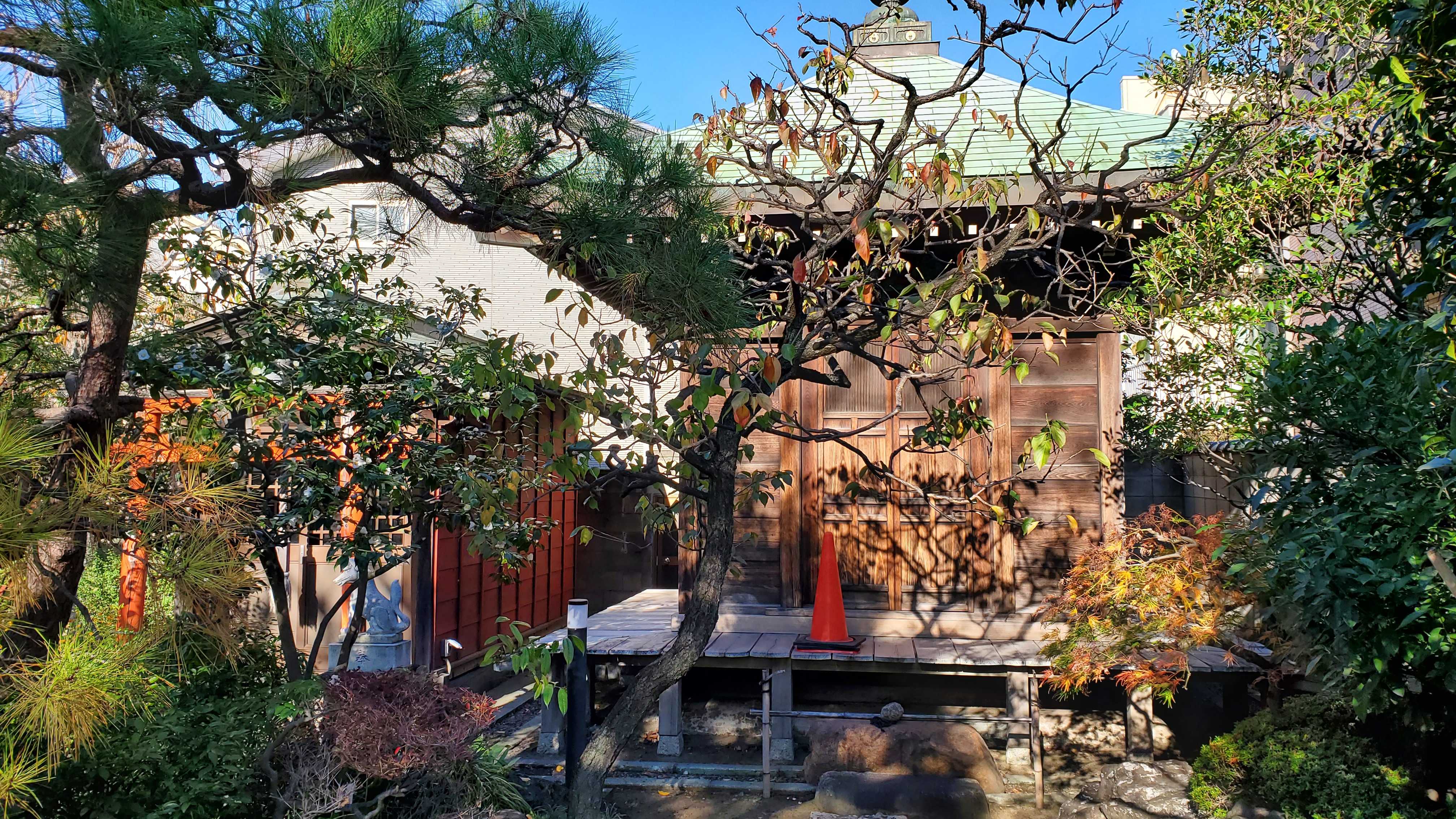 参道左側……奥が墓地。中興開基の吉田半左衛門重房の墓があるらしいけど、私は立ち入りません。
