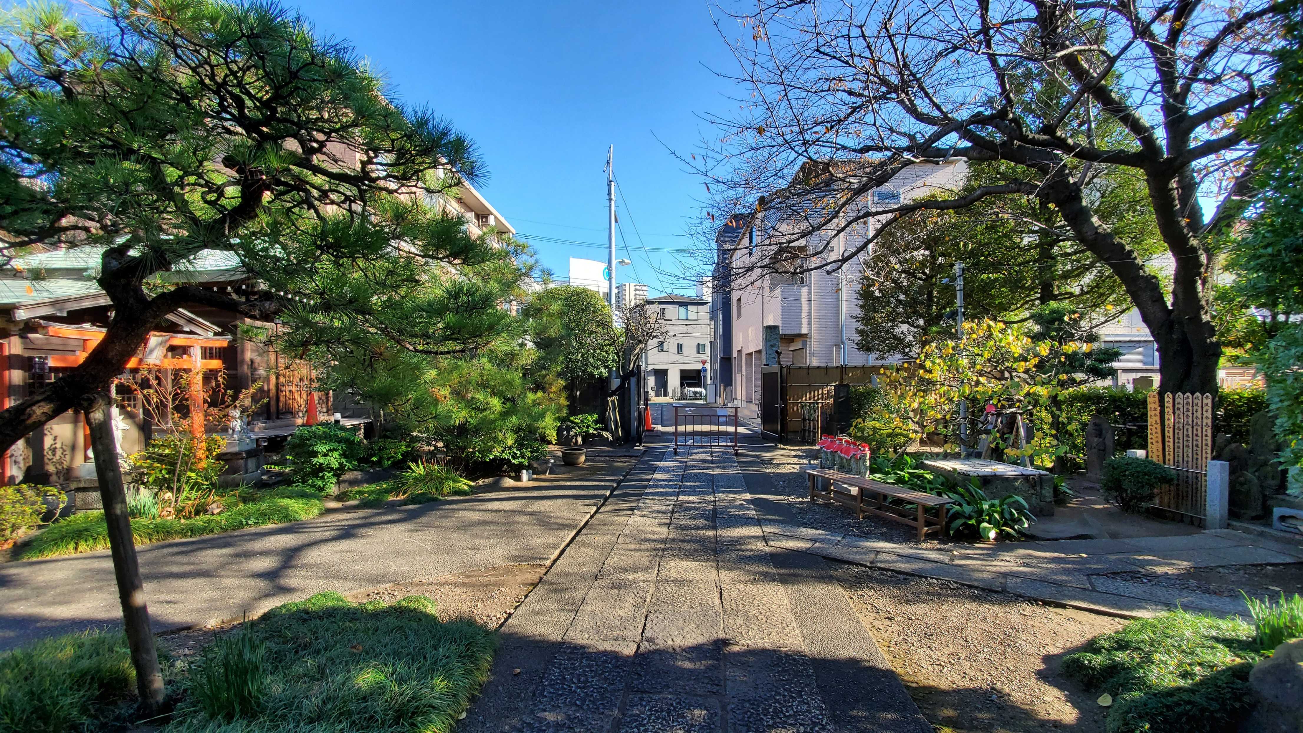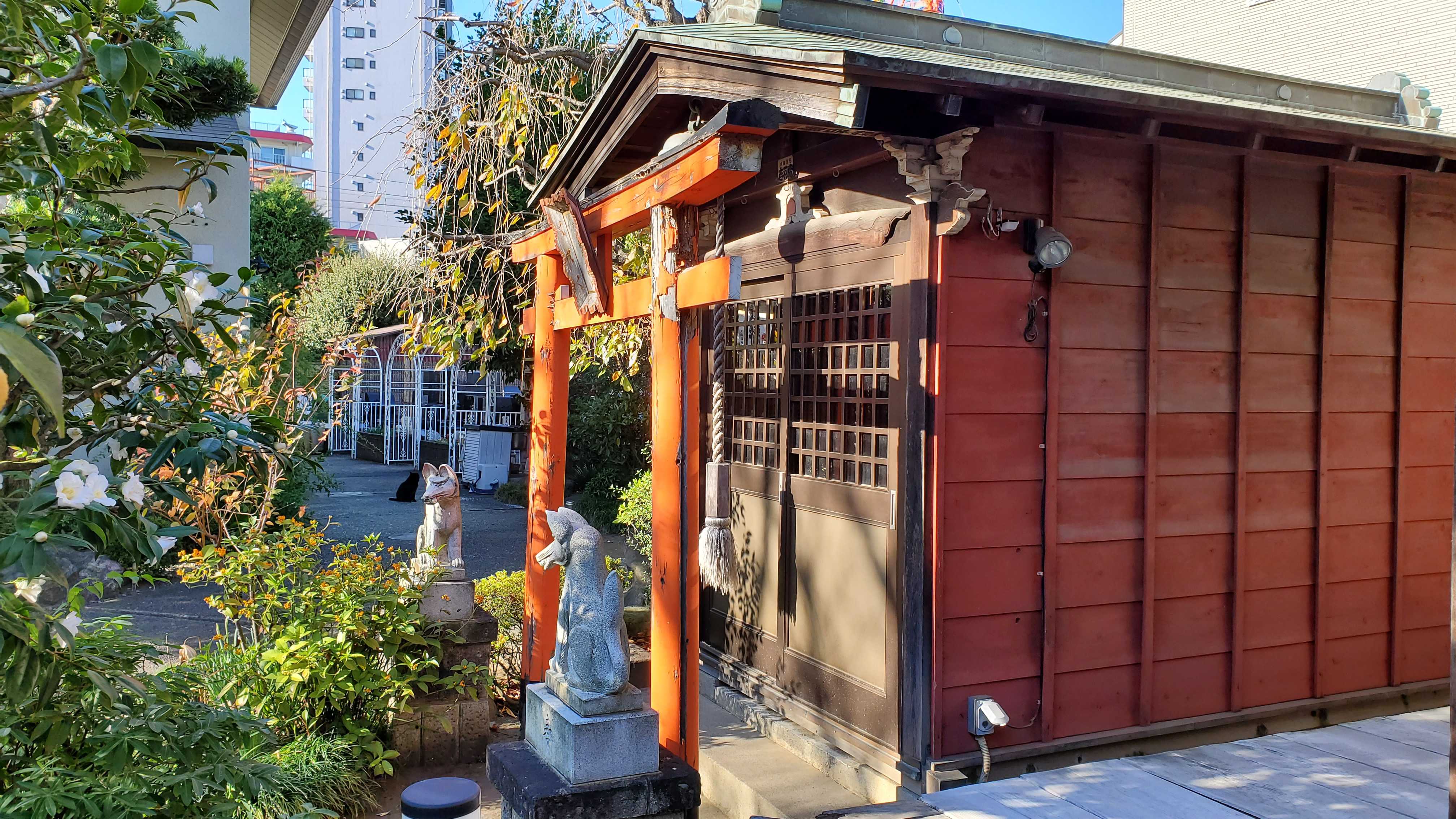 白玉稲荷神社から路地を抜けて、表通りに出る左隅に…