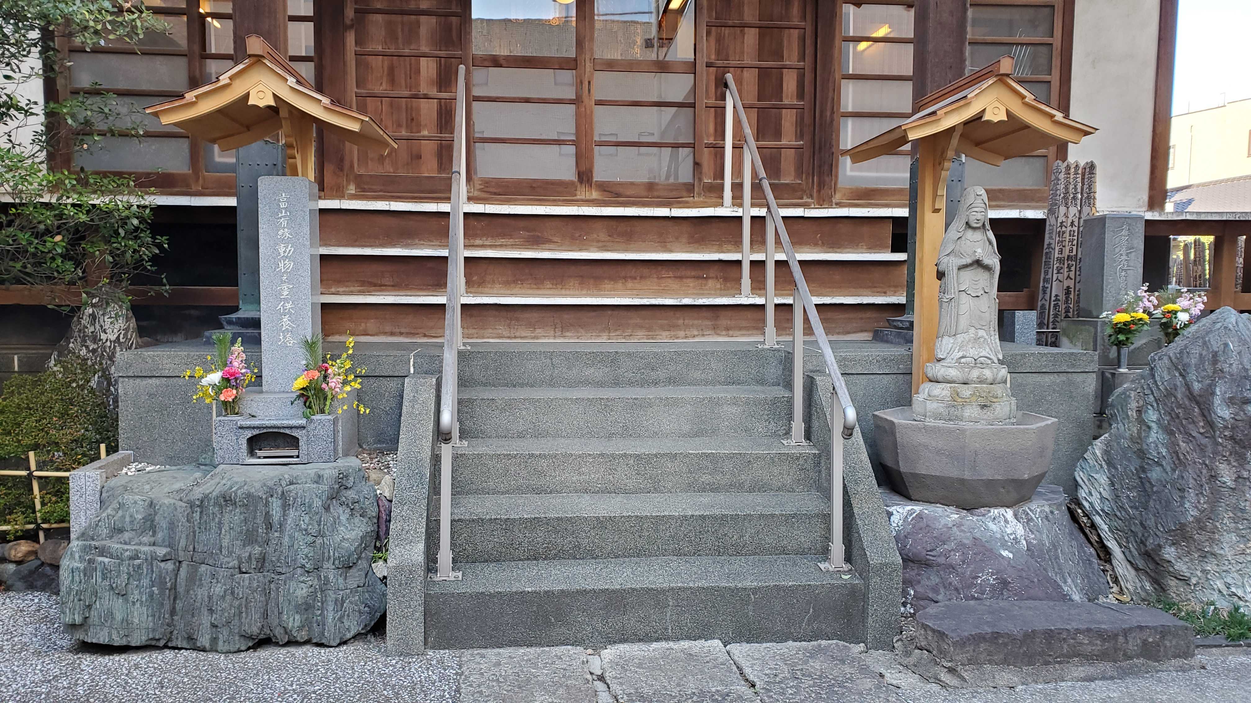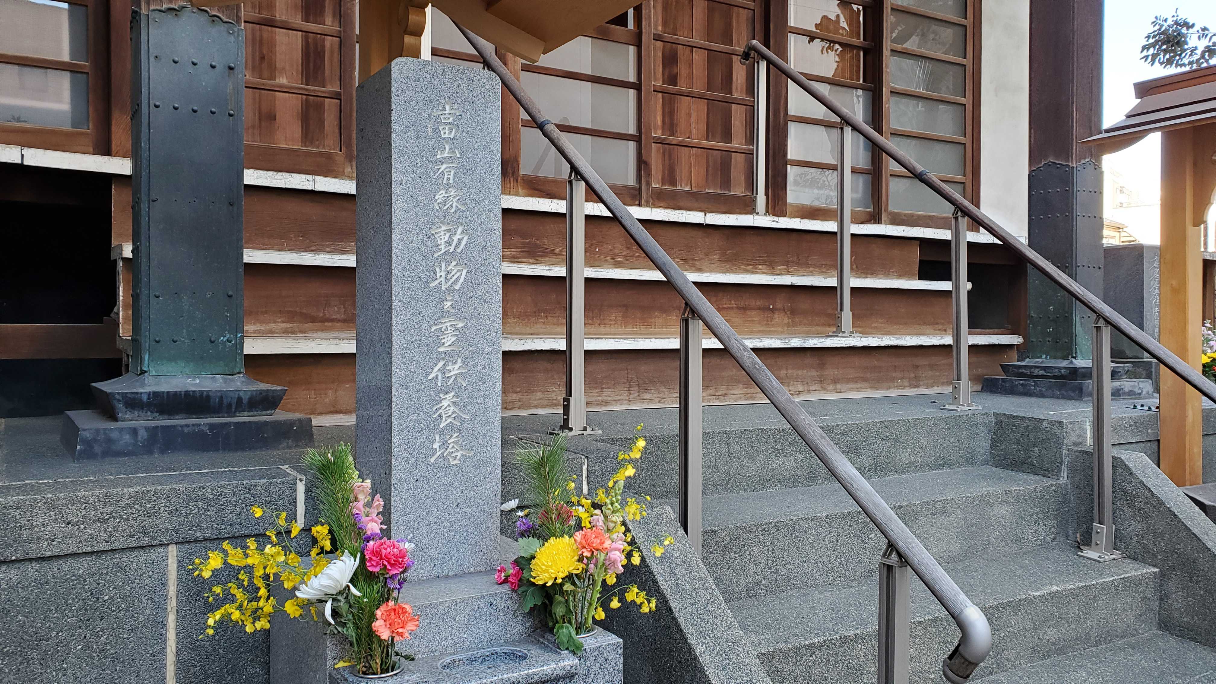 動物之霊供養塔……墓地にではなく、本堂前は珍しい。