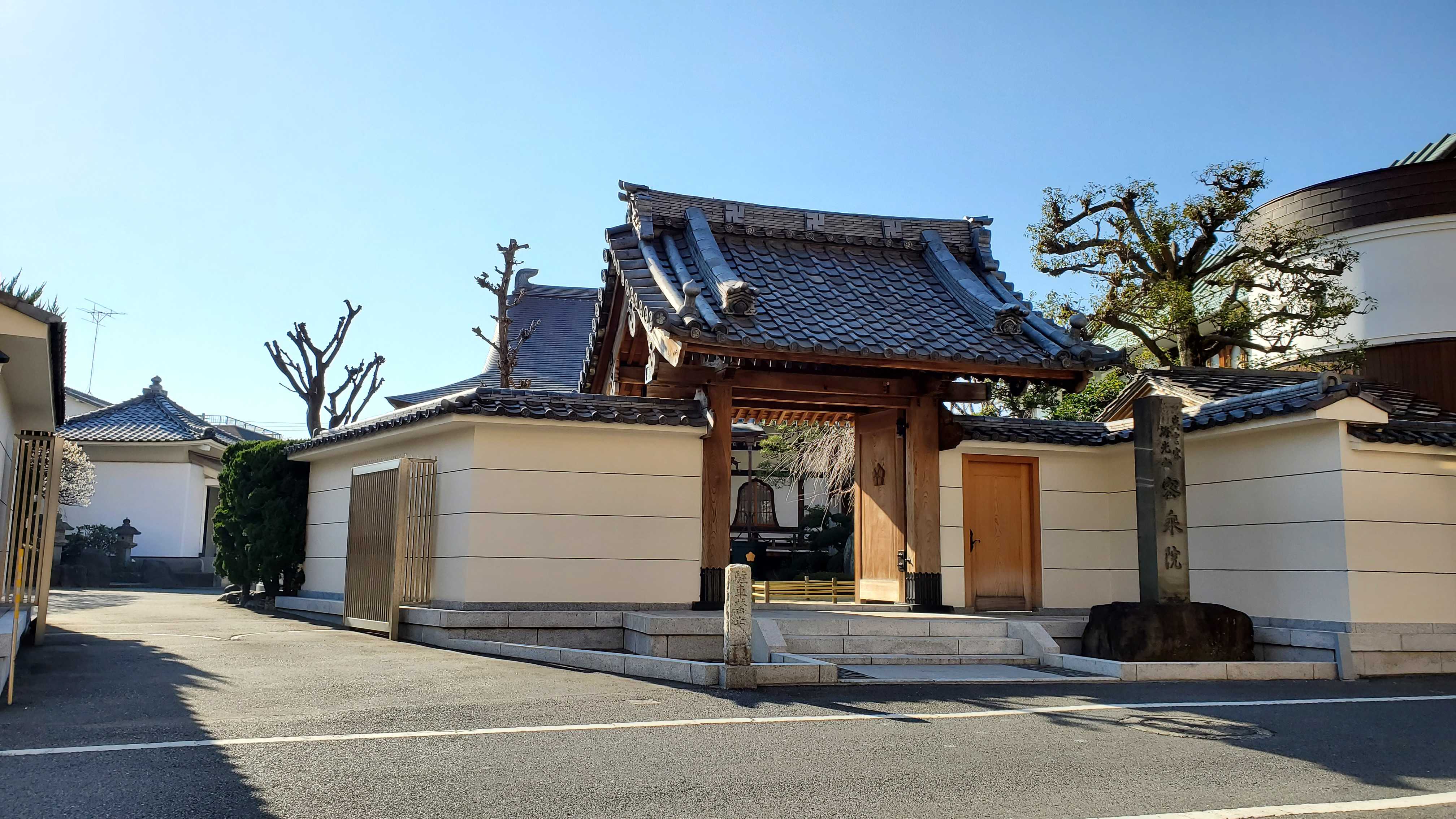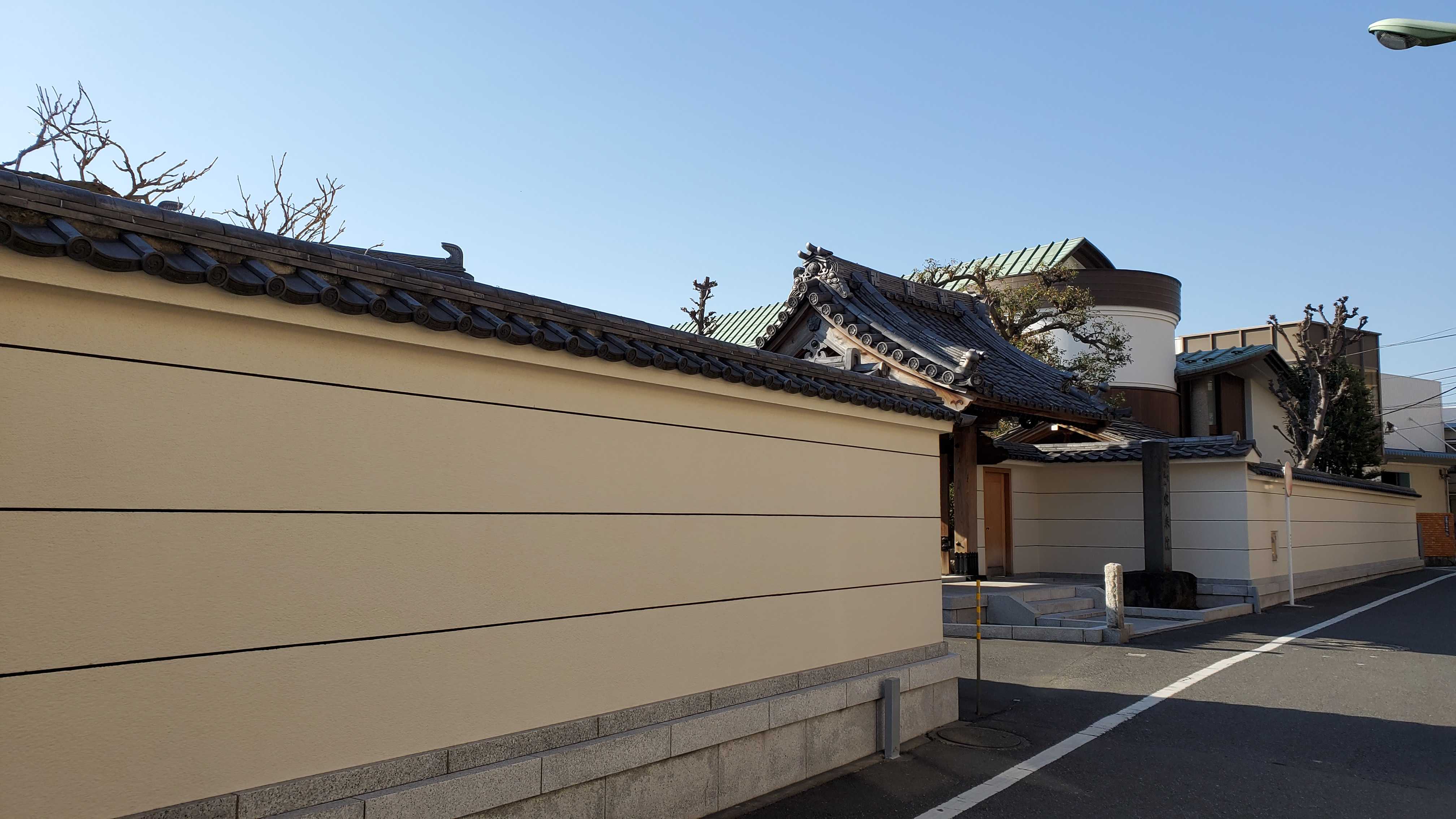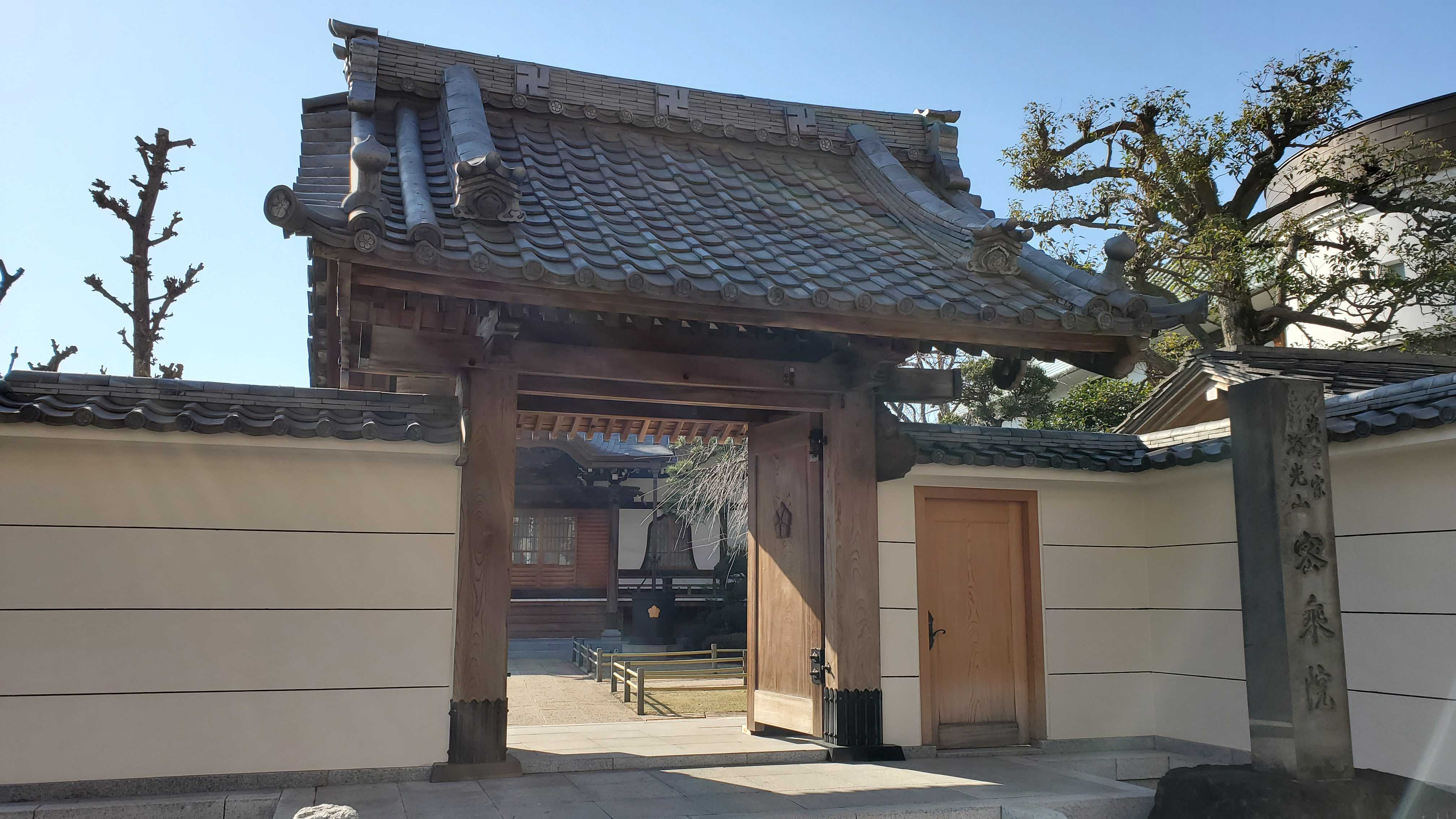 寺務所兼庫裏でしょうか……モダンな建物でした。山門脇は枝垂れ桜みたい。咲いたらきれいだったでしょう。