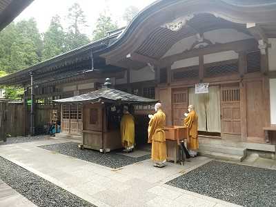 本日は「世界遺産を巡る町石道登山イベント」に気合を入れて参加する予定でしたが、残念ながら荒天中止とのこと。仕方がなく、南海電車で高野山へ。かつて高野山は女人禁制のため、空海さんは麓の慈尊院に滞在していた母に会うため、月に9回もこの道を歩いたと伝えられています。「九度山」という地名の由来ともされているようです。慈尊院~大門まで、登りは7~8時間を要するので、週2で通うとなれば、かなりの健脚でなければ無理ですね。四国お遍路の距離を考えると、空海さんの体力は計り知れない。主催の世界遺産高野参詣道(町石道)登山実行委員会より、下記理由で 中止 との連絡がありました。天気予報で前日からの雨天が見込まれるため、参加者の皆さまの安全確保を最優先に考慮し、当日の降水確率や予想降水量を総合的に判断した結果。ご参加を楽しみにされていた皆さまには大変ご迷惑をお掛けしますが、ご理解・ご協力のほどよろしくお願いいたします。(和歌山県九度山町HPより)たまたま、空海さんにお食事を届ける生身供(しょうじんぐ)の時間に遭遇し、ラッキーな日でした。