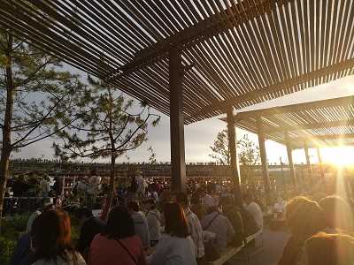 来場者は、過去最多の約16万2000人だったようです。打ち上げ花火前のため、大屋根リングまで人がいっぱい。