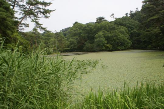 森林植物園の紫陽花園をぬけて、さらに奥に入っていきました。新緑の中の長谷池です。緑の葉のもみじと長谷池。池の水面には水草が一面に・・・長谷池からさらに奥にいくと、カモシカがいました!!木に体を擦り付けていました。かゆいのでしょうか?体を木でかいた後、落ち着いています・・・森林植物園には、別の場所には「うさぎ」もいます・・・