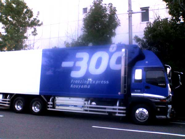 ◆ポートアイランドのカラフル・デザインのトラック◆マイナス30度!! 冷凍車でしょうか? 冷たそう!!こちらは、お馴染みの「フットワーク」の車。