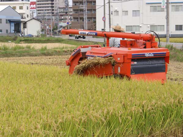 江井ヶ島でも稲刈りをやっていました。外側から、反時計回りに刈っていくのは、どこでも同じようですね。