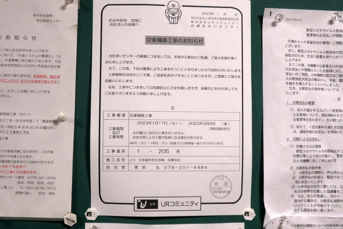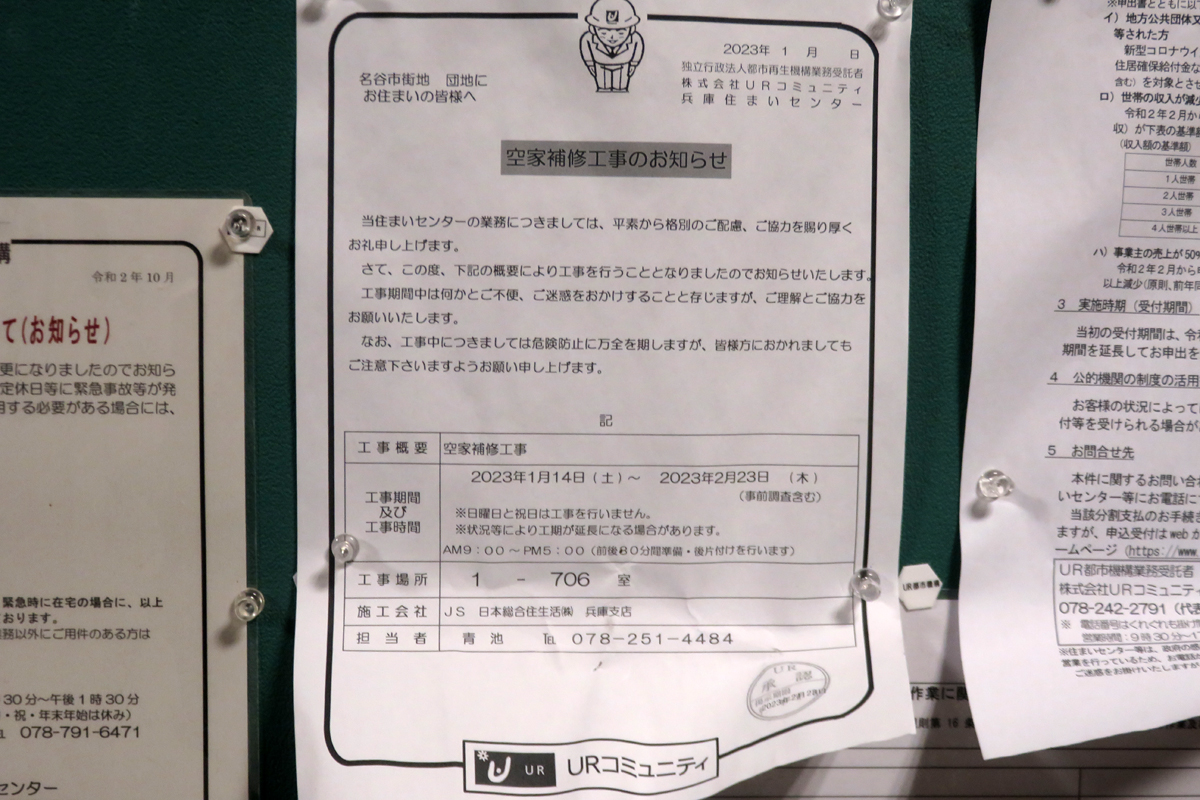 UR名谷団地 ネットでは募集していないけど空家補修工事はやっています