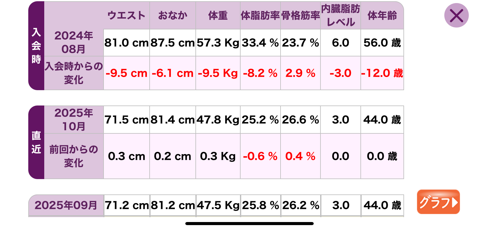 📸 カーブス公式アプリでの最新測定結果