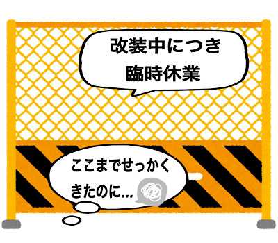 でも近づくと…なんと“改装中”の張り紙が‼️