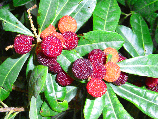 スモモや夏きのこが採れだしたとの風の噂。。。日々里物、山物に思いはつのるいっぽう・・・・。買い物に行くついでに、近場のヤマモモを見てきました。あ~そのぅ~・・・ヤマモモを見るついでに買い物に行ったという方が正しいです。すっかり色づいたヤマモモの木では、沢山の鳥達が食事中でした。特に好みの果実ではないのですが、そこに熟した木の実があれば欲しくなって・・・。人目に付きやすい場所なので、ササッと少し頂いてきました。塩水につけてから洗い(たまに小さな虫が入っています。)、一粒食べてみました。木の樹脂香を伴った甘さが口に広がっていきます。この木のは粒が小さいので、食べるのがちょっと面倒・・・。相方も食べないようですので、梅干用に買ってきたホワイトリカーを使って、果実酒を作ってみようと思います。飲む人はいないけど、赤い色に仕上がっていく過程を見て楽しむ事はできますので・・・。初めて作る果実酒・・・お砂糖を入れるのかしら???
