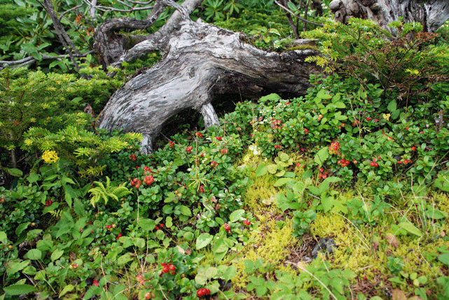 柳の下にドジョウは何匹もいて欲しい・・・。きのこ仲間達の松茸報告を見るにつれ、「私にも採れる」と山へ。現実はそんなに甘くありませんし、二匹目のドジョウにも会えませんでした。いつもの「何か食菌があったら、いただきー」のウロウロ歩きをやめて、松茸に的を絞って、歩いた歩いた。でも、見つかりませんでした。 「コケモモ」今日きのこを写せなかったら、植物にしようと・・・。コケモモが赤味を帯びてきて、山には秋色が増えてきたようです。 「コケモモ」夜に降った雨で、実も葉もツヤツヤ。 「ホウキタケ」今回のホウキタケは先が広がって、ほんとに花が咲いたようです。茹でて山葵醤油で食べると美味しい・・・と本に書いてあったので、今夜その様に食べてみましたが、ホウキタケ自体には強い香りも、味も無いので歯ざわりだけ・・ちょっと物足りない感じです。今までの調理法で美味しかったのは、すき焼きに入れた時と粕漬け(里山さんお手製)。「好みの味のきのこ」としては、後方になりますが、美しさでいくとトップ3に入るほど・・・。最近大きな株は採れなくなりました。 「クロカワ」歩きつかれた体も、こんなクロカワ見つけると嬉しくてハイテンションになります。今年初めてのクロさんです。前半の散策ではお目当てのきのこに会えなくてガックリきていましたが、終ってみると、このように綺麗なきのこ達が籠に納まっていました。マイナスイオンいっぱいの山から一週間分のパワーを貰ってきました。疲れと眠さで文章がぼろぼろ、今夜は早く寝ます。