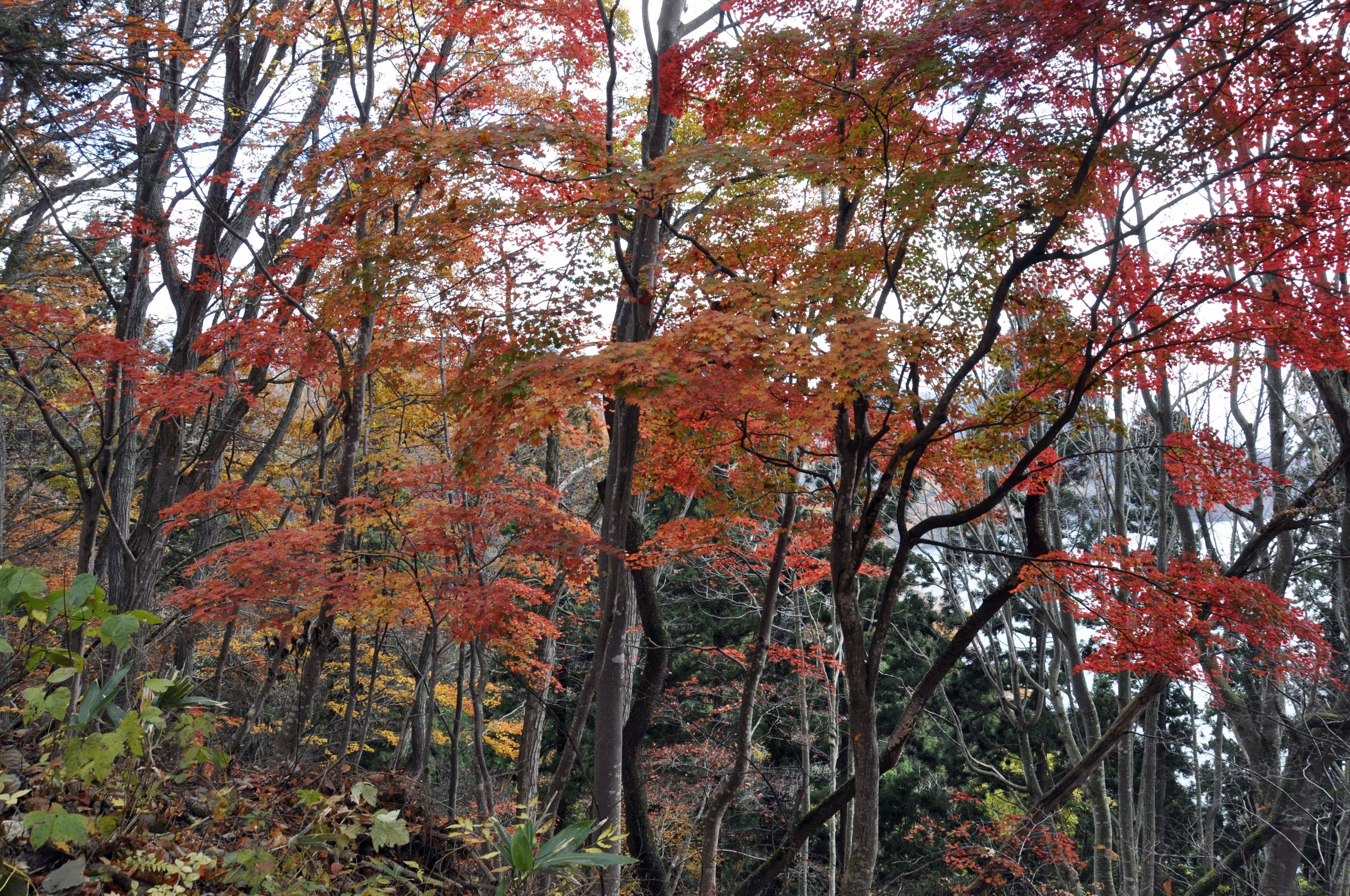 山の景色は色彩を欠き、寒さに耐える準備をしていました。今は見通しがいい森も、緑濃い頃は鬱蒼として人を受けつけなさそうです。こんな所を両手で小枝を払いながら歩いてきました。前回残した粒ナメコを求めて。約一週間、「あのナメコはどれくらい成長したかしら、幹にびっしりと揃ったナメコは採りきれないかもしれないので、予備の袋がいるかもしれない」と毎日妄想してはワクワクして過ごしました。が、見事に摘み採られていました。覚悟していたとはいえ、期待が大きかっただけに残念でしたが、私達は新参者、地元の人のおこぼれを頂戴していますので、じっくりと見て回って目残しナメコをいただいてきました。立木の上に残っているものは、仲間が持参した武器で収穫。落ちたナメコは落ち葉と同化したような色合いなので探すのに骨が折れます。そこでビニール傘をさかさまに広げてキャッチ。何カ所かで実践したら、カサの骨が折れてしまいました。で、ヒラタケはといいますと、うんと高~い場所で出ていて、思いつく限りの方法を試しましたが、収穫に至らず。何人のきのこ狩りの人々が、熱視線を送ったでしょうか。それでも、倒木に発生したものをいくらか見つけることができました。11月も半ばとなり、今季から挑戦したナメコ狩り、後一回ほどは出かけたい思いがあるものの今回でお仕舞いとなりそう。そろそろ近場の公園散歩で、エノキタケを探すのみとなりました。運よくヒラタケが見つかるといいのですが、昨年見つけた丸太は片づけられたので、これからは運任せの散歩を楽しみます。