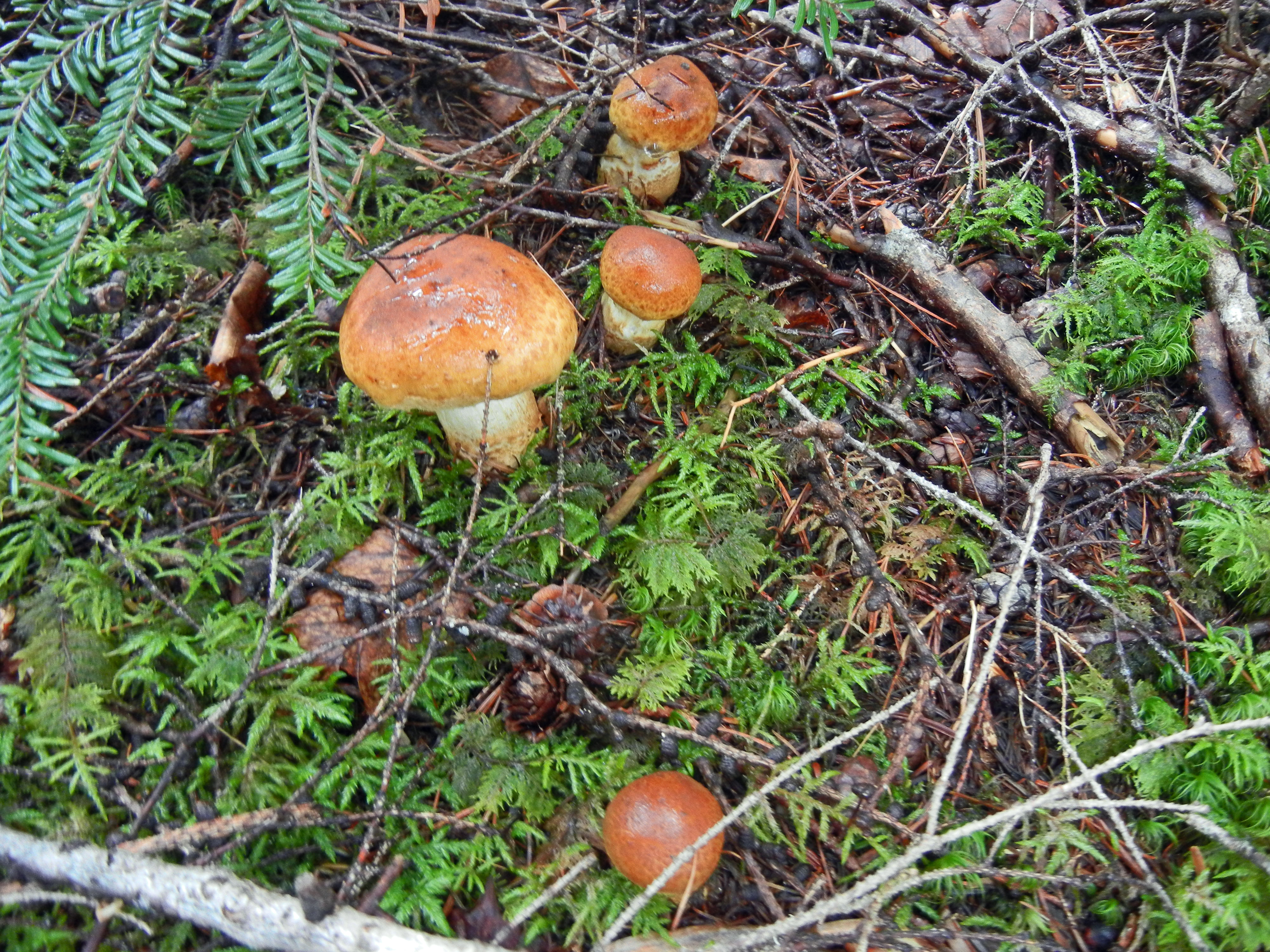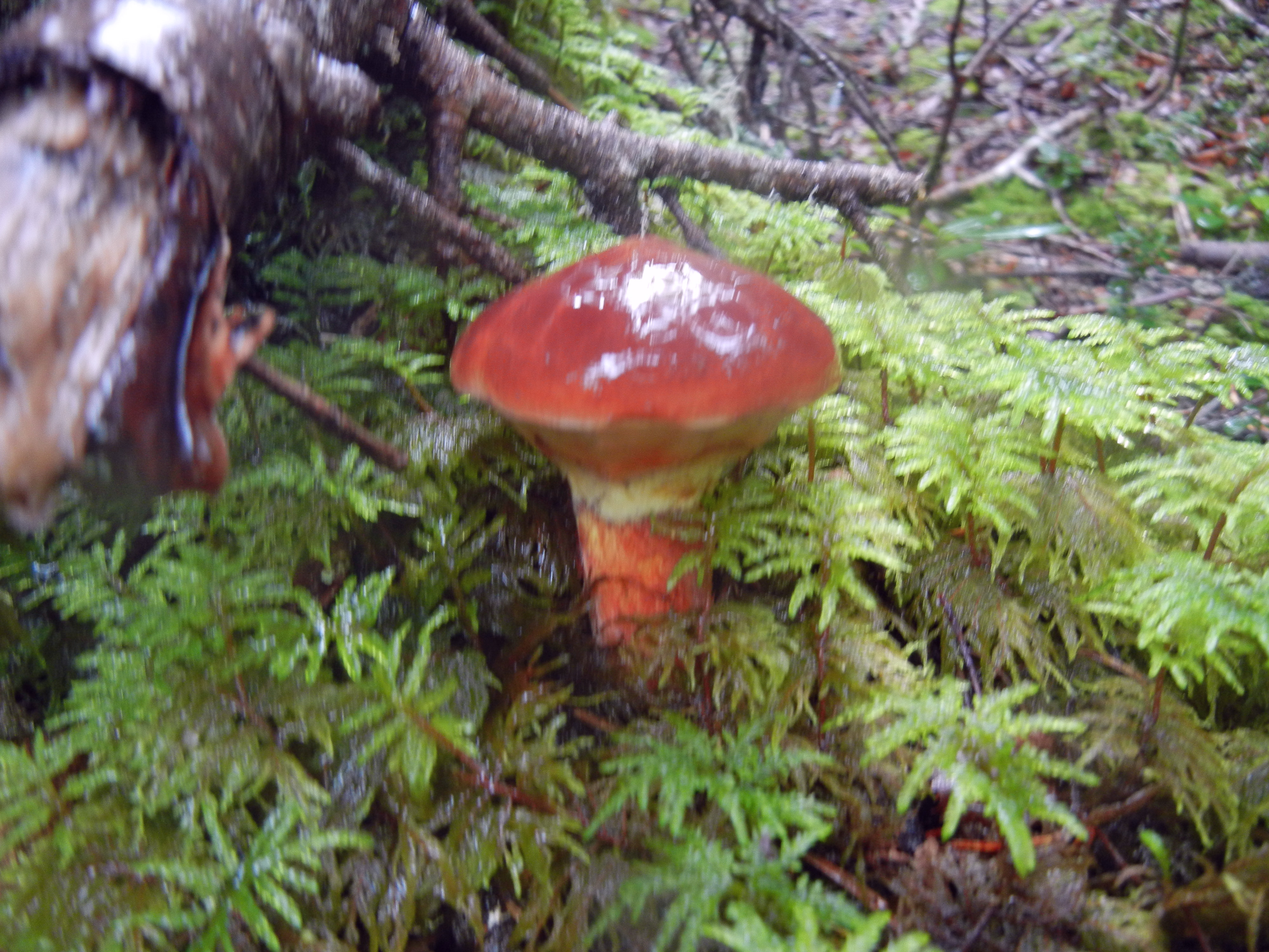 早朝までの雨で、ぬらりてらりと光るツガタケ。